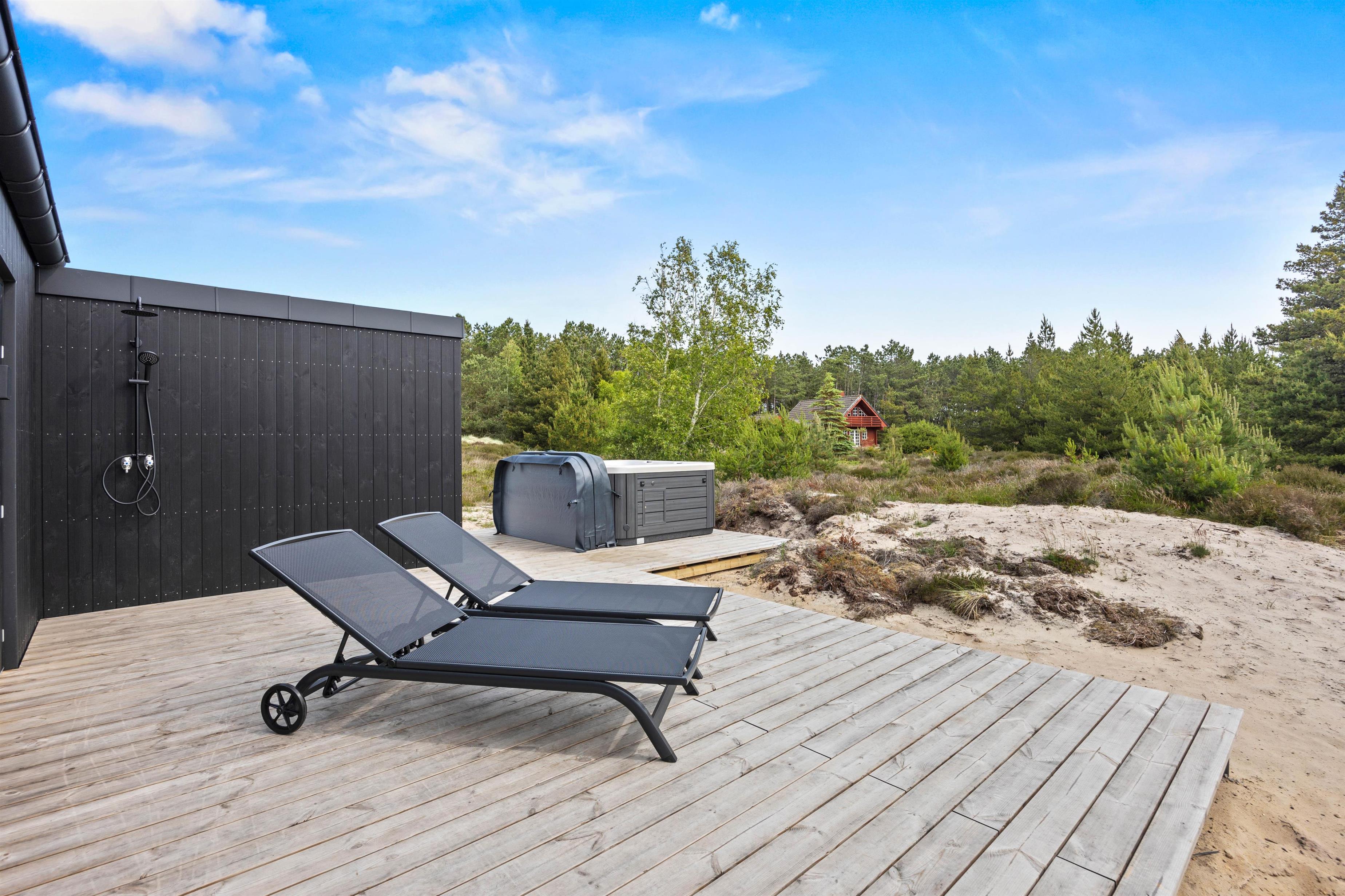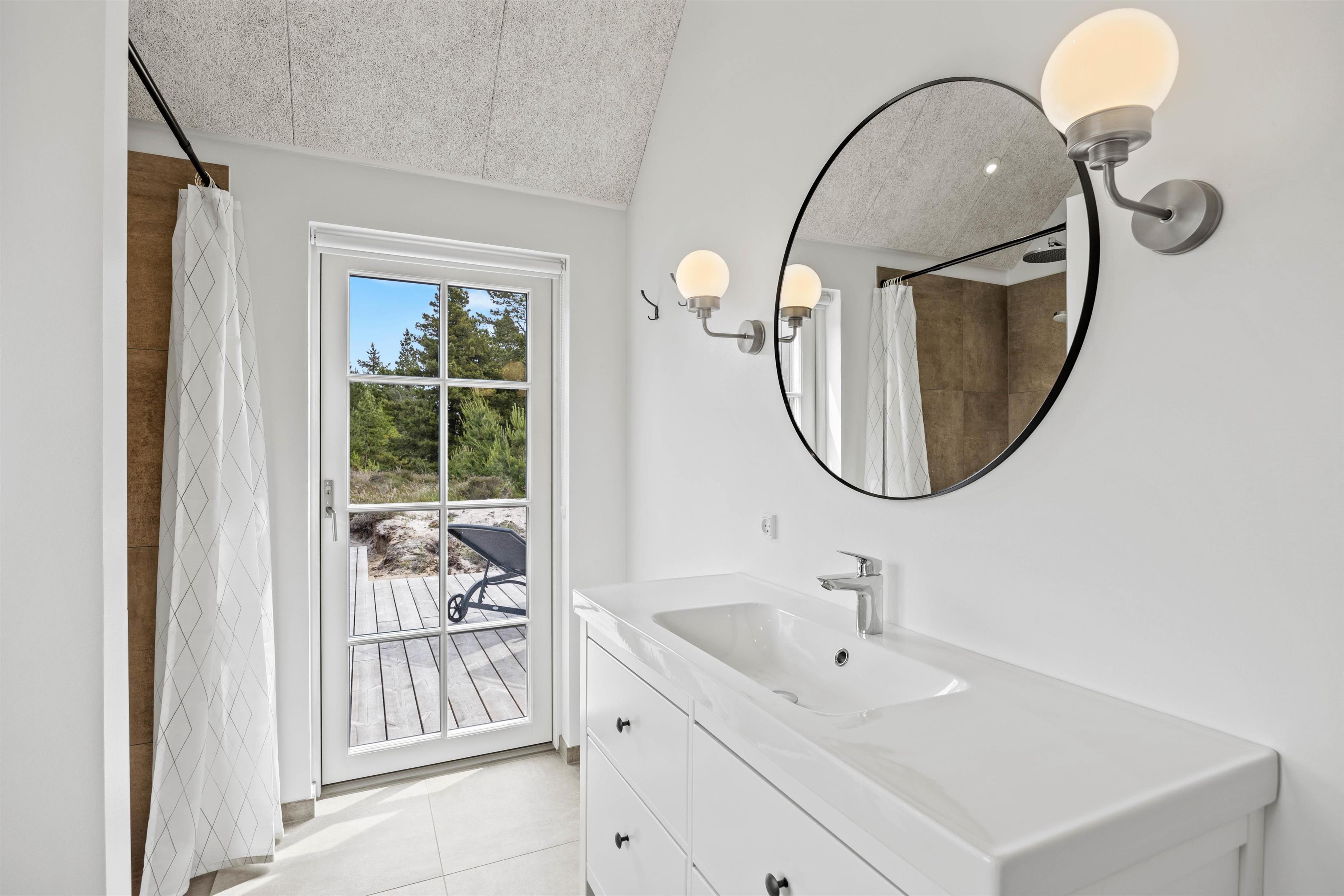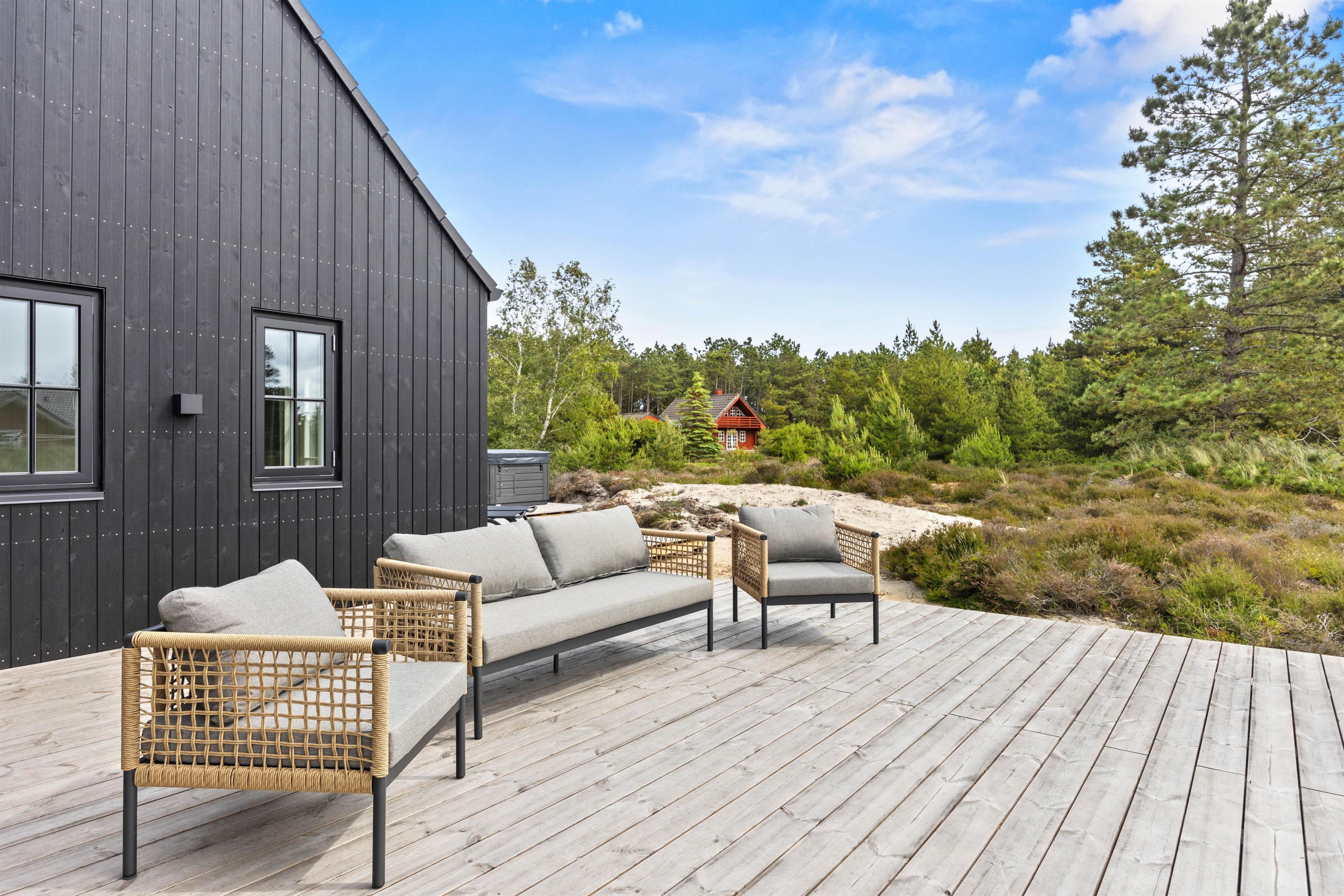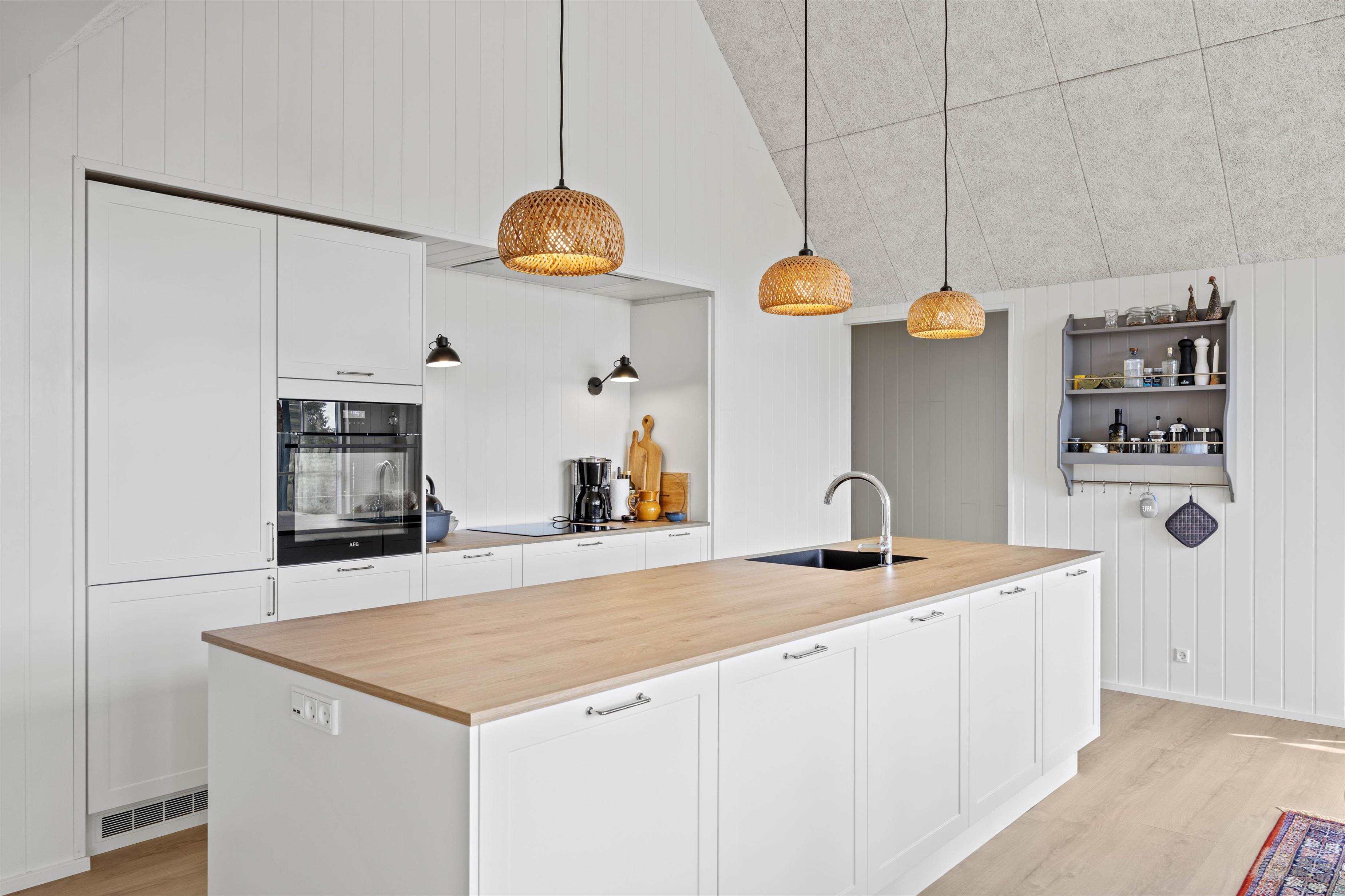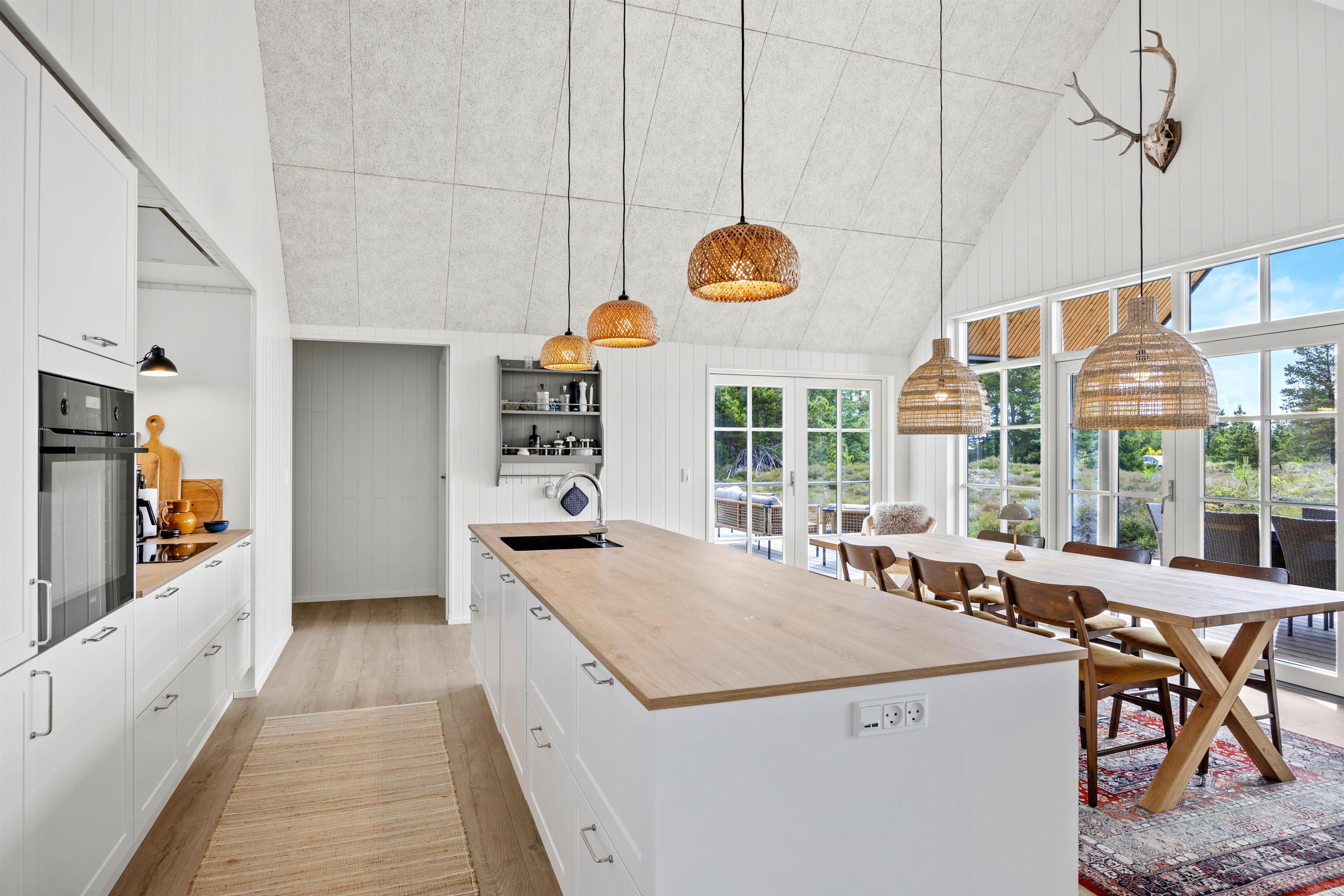 Glæd jer til mange moderne faciliteter, der gør jeres ophold uforglemmeligt. Et fuldt udstyret køkken med opvaskemaskine gør det nemt at tilberede lækre måltider i feriehuset. Efterfølgende kan I nyde tiden sammen på den åbne eller overdækkede terrasse. Grill og havemøbler indbyder til hyggelige aftener med dem, I holder af. Højdepunkterne ved huset er de rolige omgivelser – omgivet af skov og beliggende på en dejlig naturgrund med klitter. Børnene kan lege trygt, mens I nyder den friske havluft.