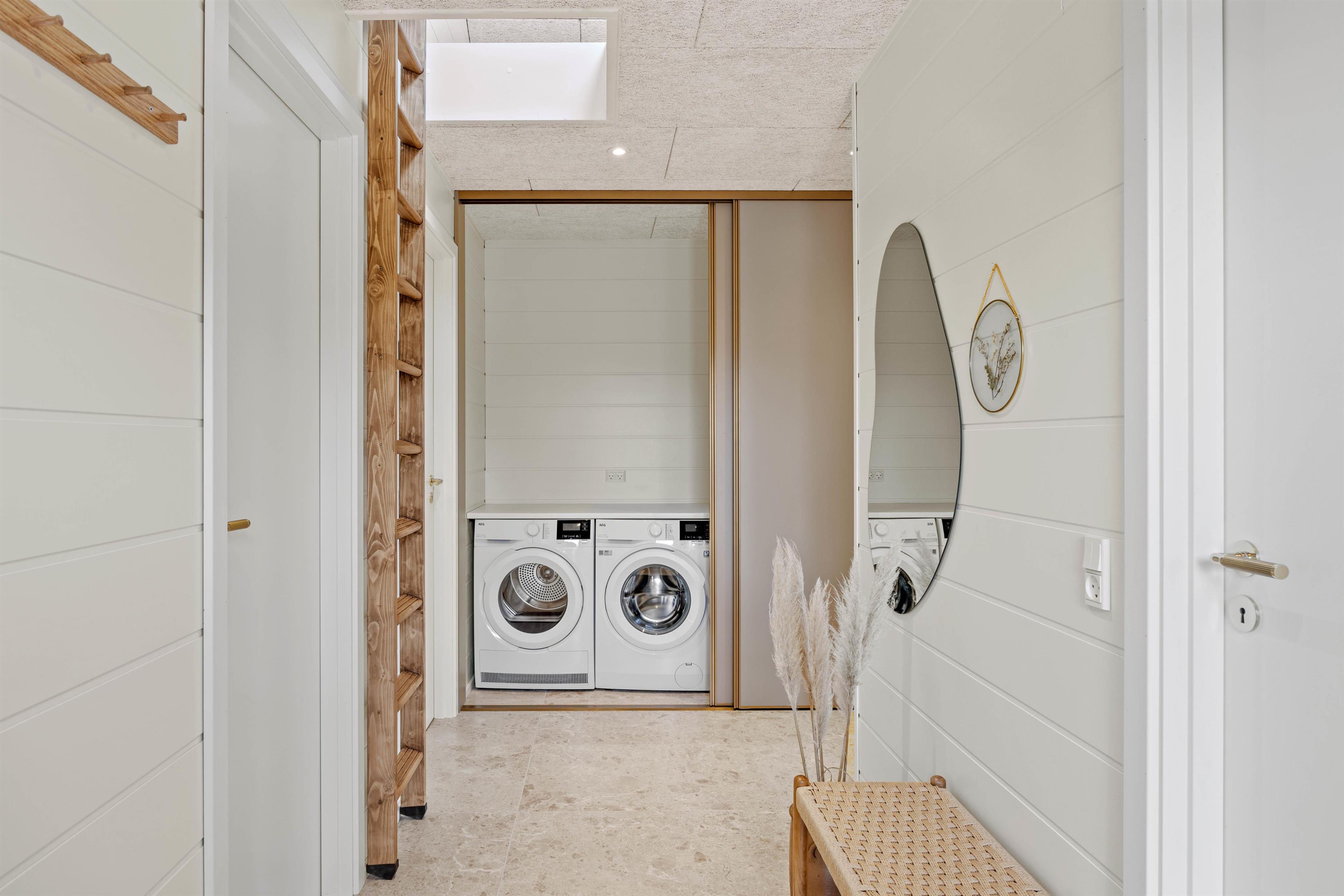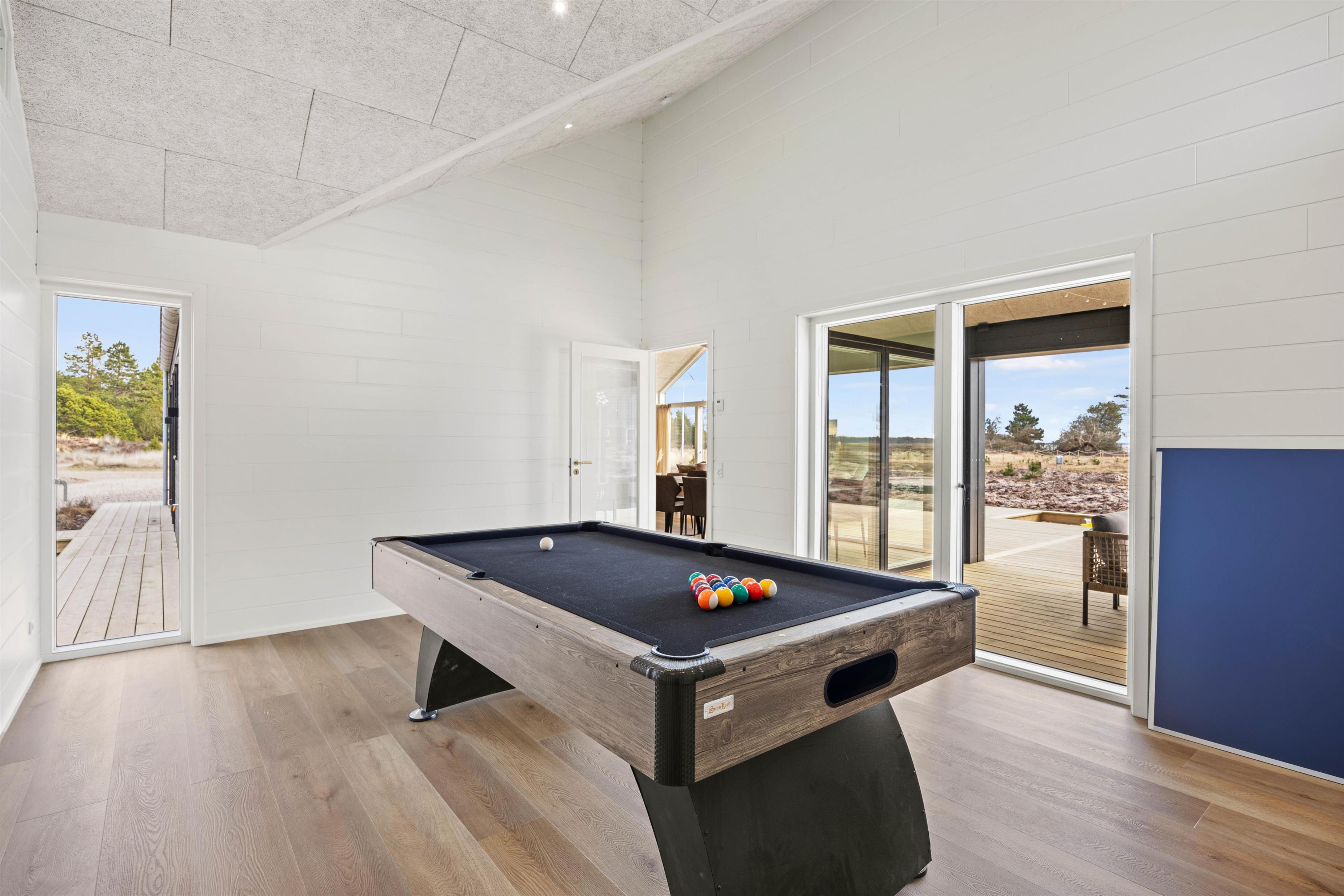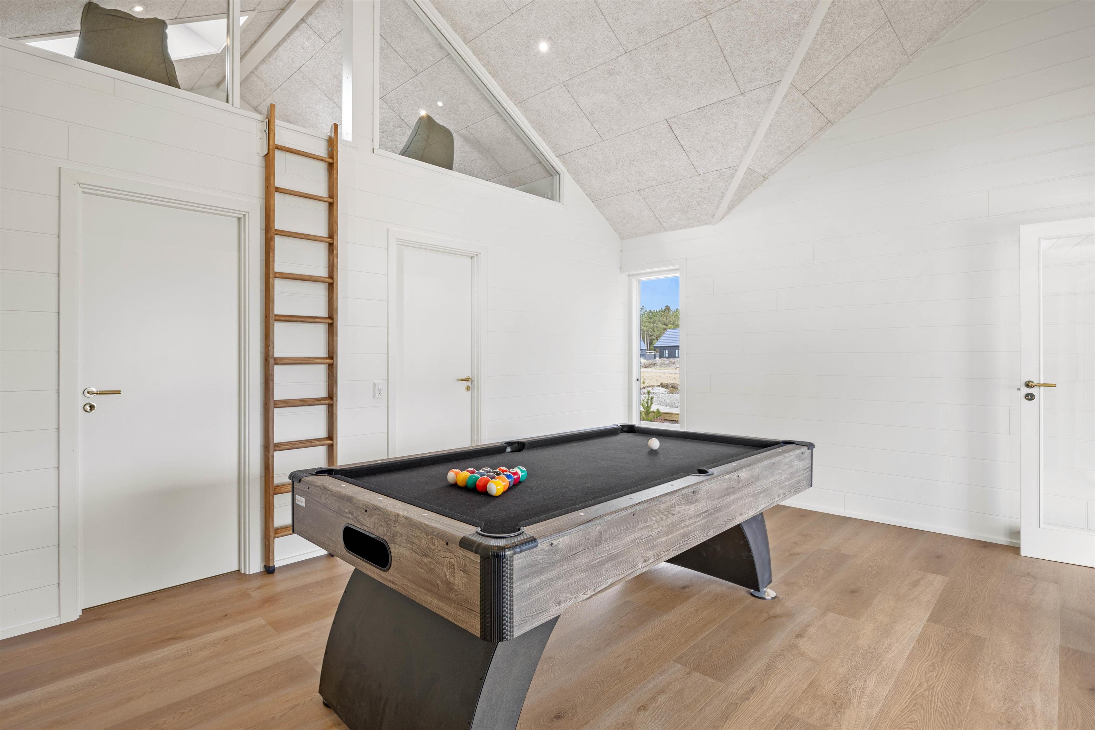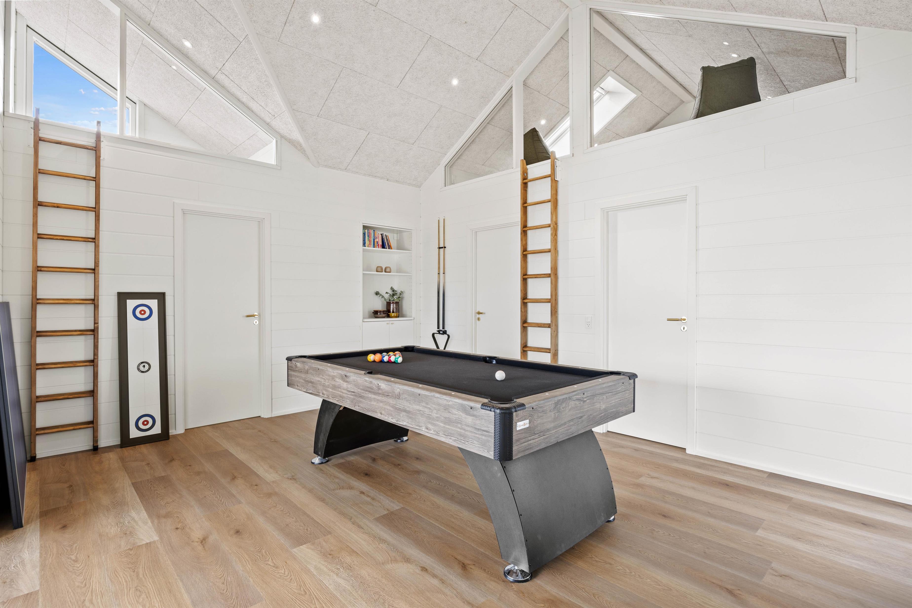 Hjerterummene er aktivitetsrummet med billardbord og bordtennis samt det åbne alrum. Her er plads til hele familien, uanset om I skal slappe af på sofaen, samles til brætspilsaften eller lave dejlig mad. Det funktionelle køkken er godt udstyret, og med både opvaskemaskine, vaskemaskine og tørretumbler bliver hverdagsrengøringen til en leg! Praktisk er her 2 badeværelser, begge med gulvvarme.