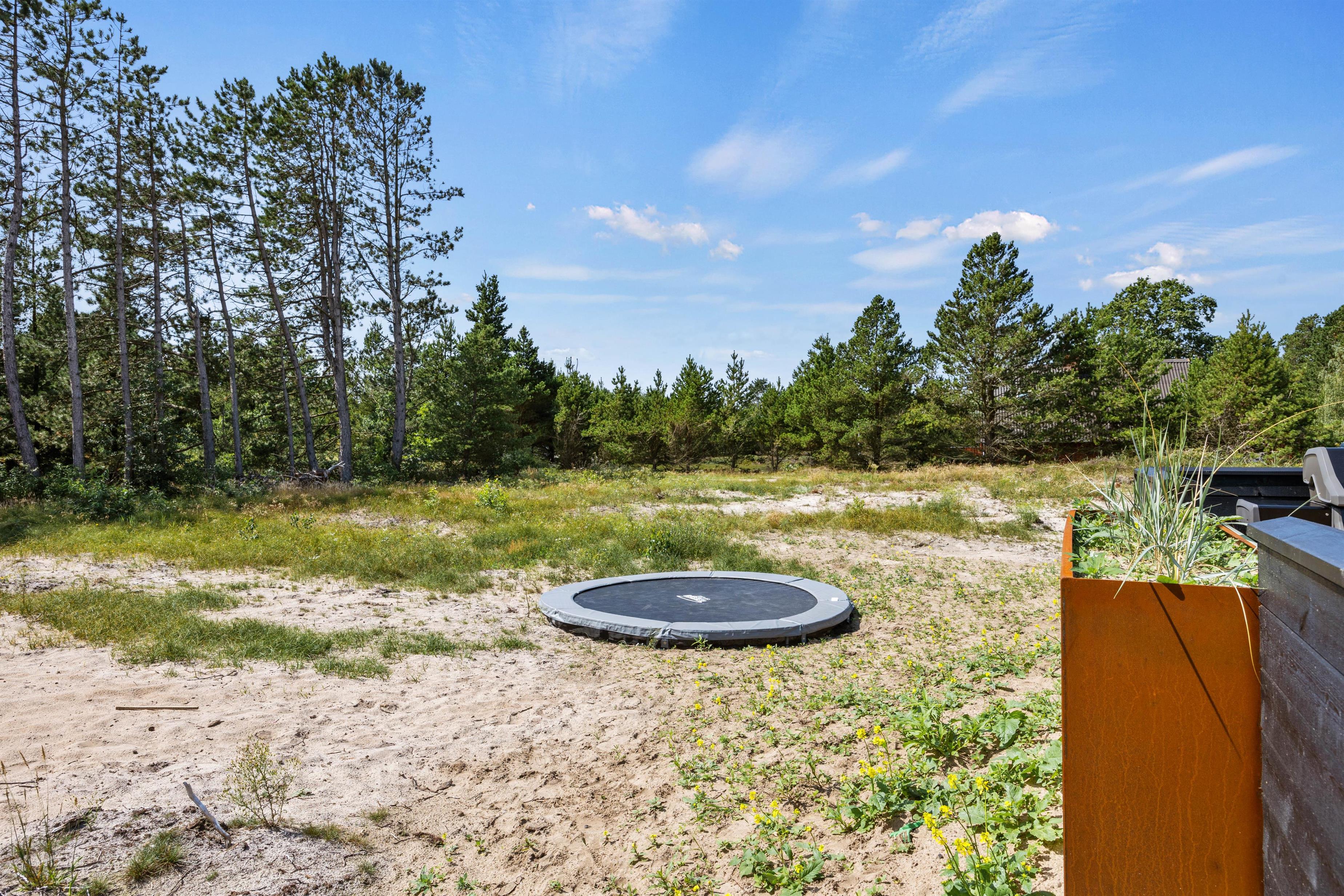 Et naturligt samlingspunkt på varme sommerdage er den afskærmede terrasse, hvor I kan nyde solen, mens børnene leger på den 2500 m2 store naturgrund, som også har trampolin.