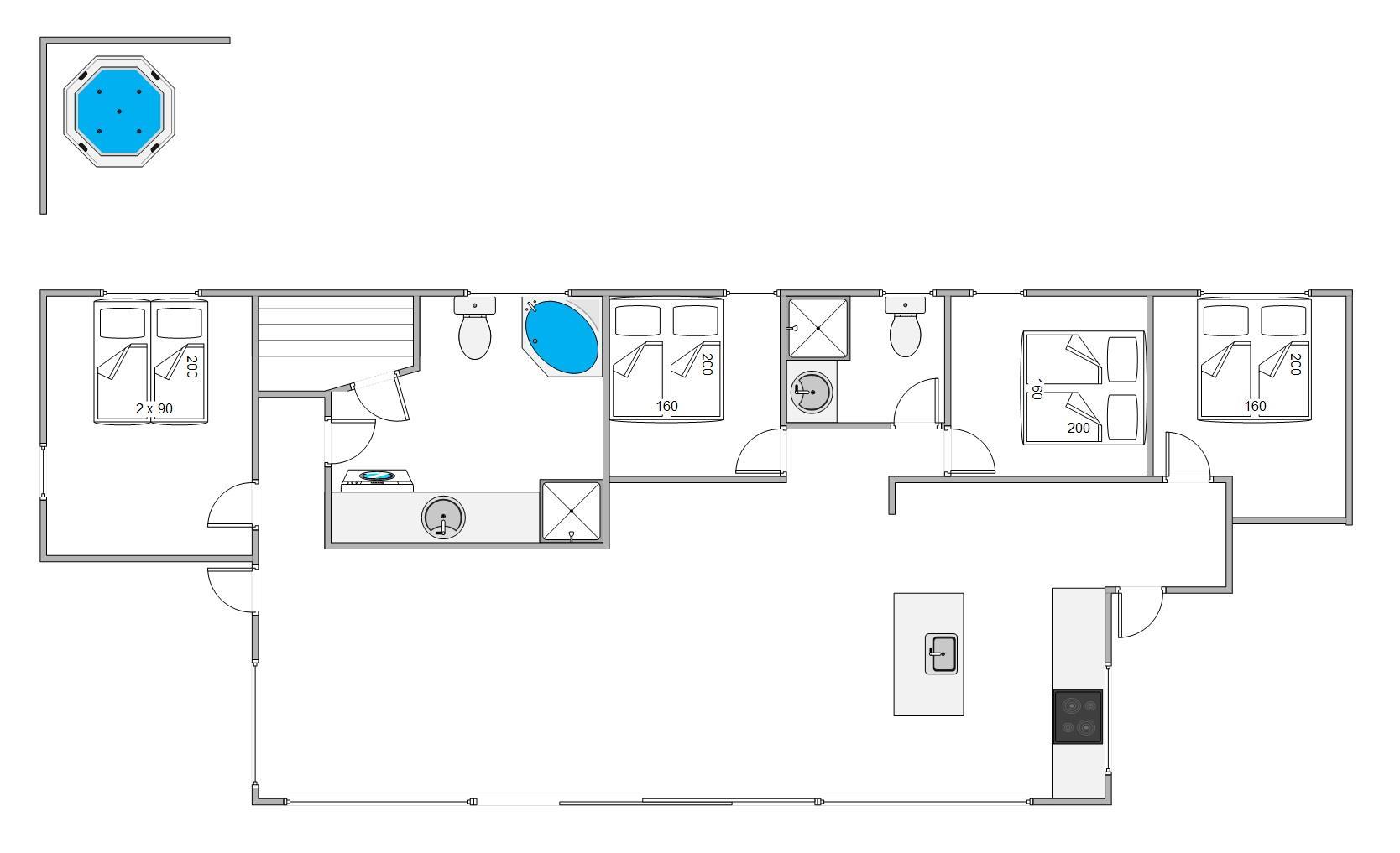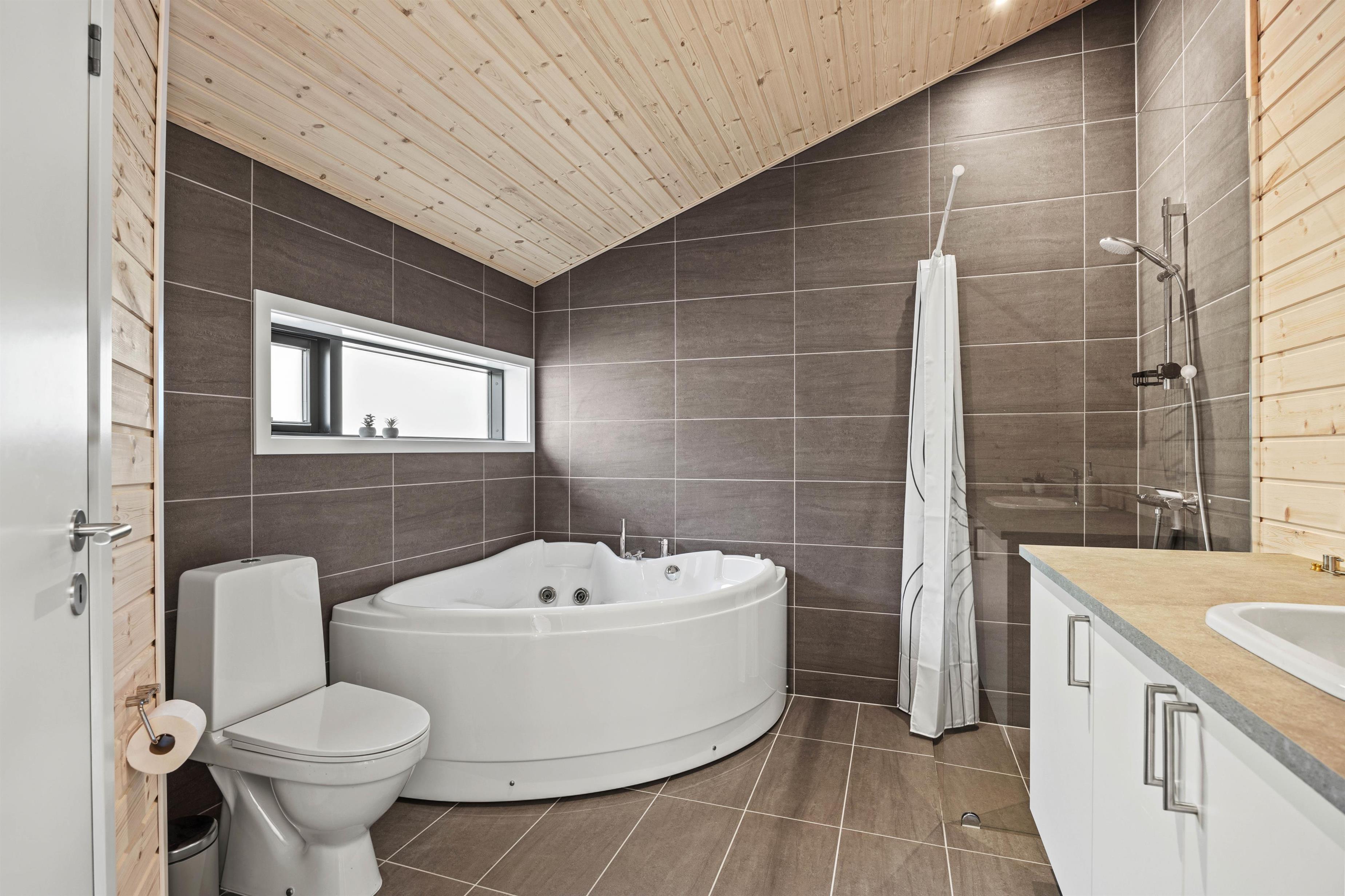 I husets udeareale er der en praktisk udebruser, mens faciliteter som sandkasse og gynge gør stedet ideelt for de mindste. For yderligere velvære byder sommerhuset på en sauna, som sammen med de øvrige moderne faciliteter skaber de perfekte rammer for at slappe af efter en dag fyldt med aktiviteter og hyggelige stunder. Derudover kan I glæde jer over en dejlig ude-spa, hvor I kan nyde det varme vand under åben himmel – en perfekt afslutning på en aktiv feriedag.