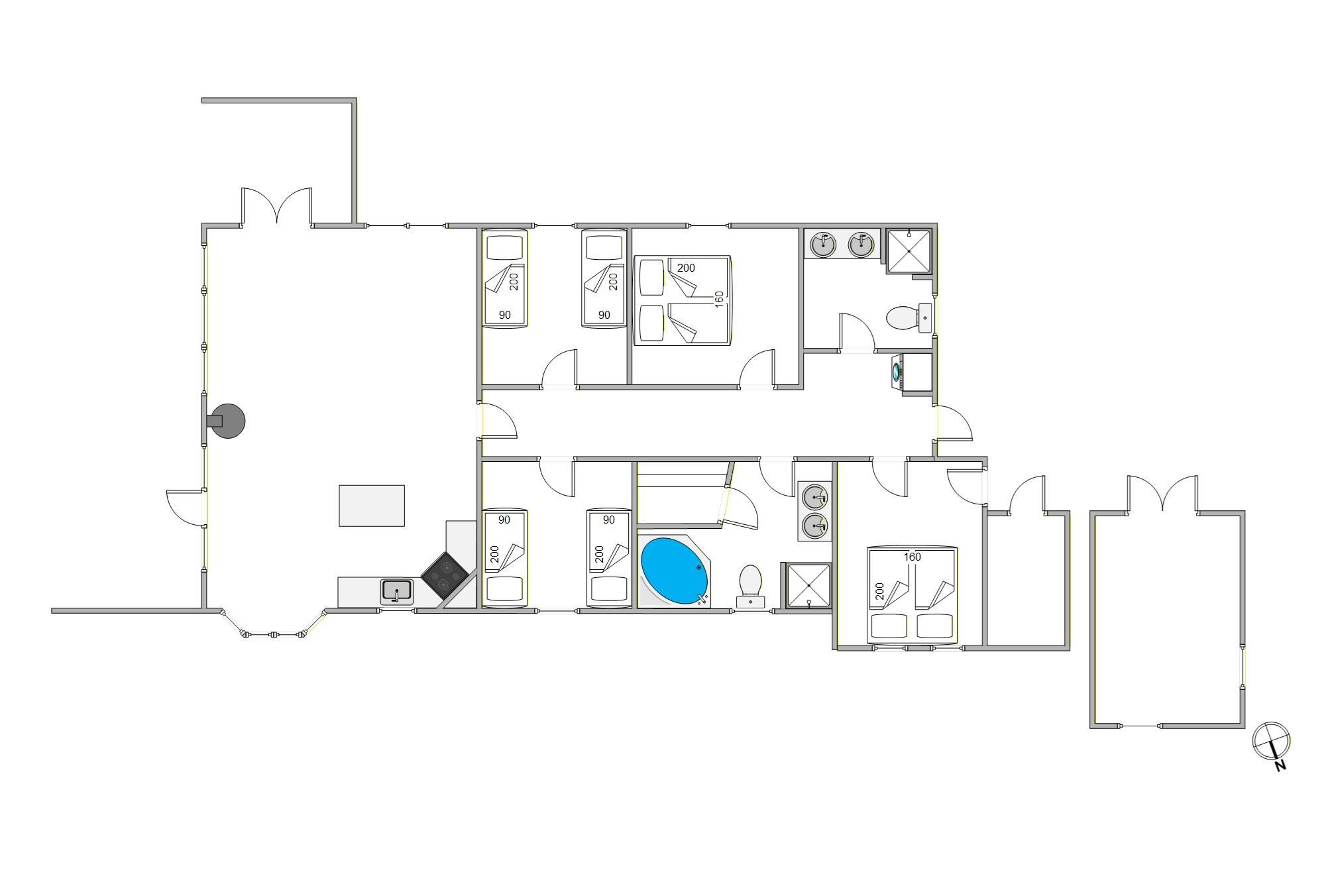 Sommerhuset ved Kromose, Rømø, har med sine 110 m2 god plads til 8 feriegæster. Her er 4 fine soverum. Praktisk er her 2 badeværelser, begge med gulvvarme, og det største med spa og sauna. Her kan I koble af, blive masseret af boblerne og blive varmet godt igennem efter en skøn gåtur langs vandet.