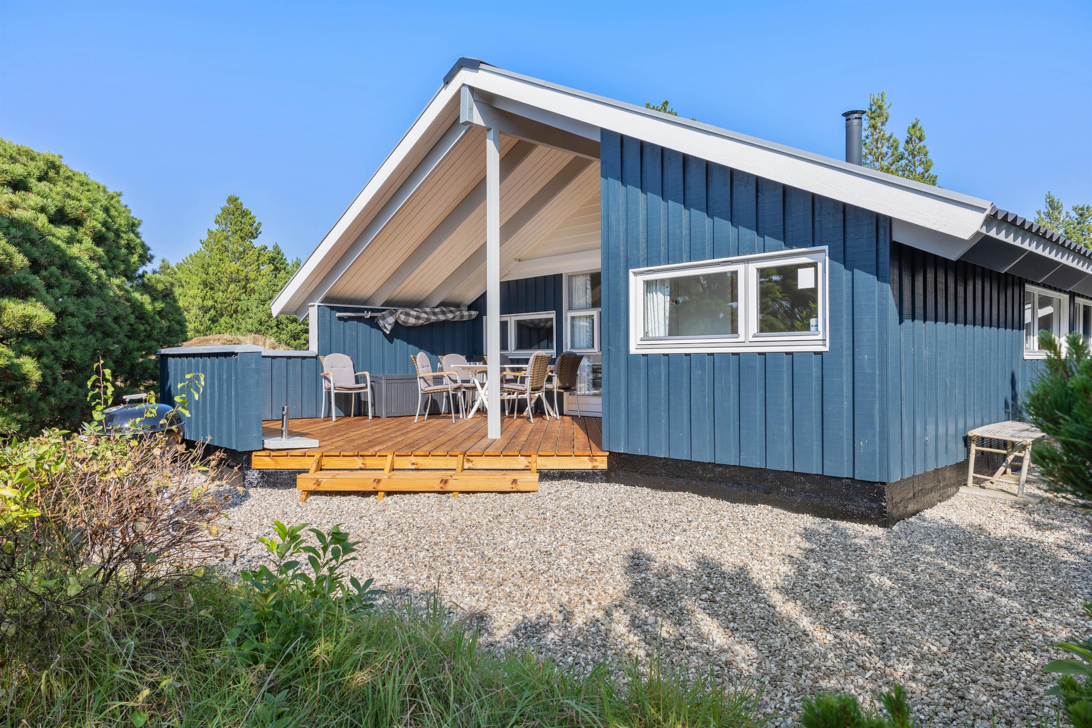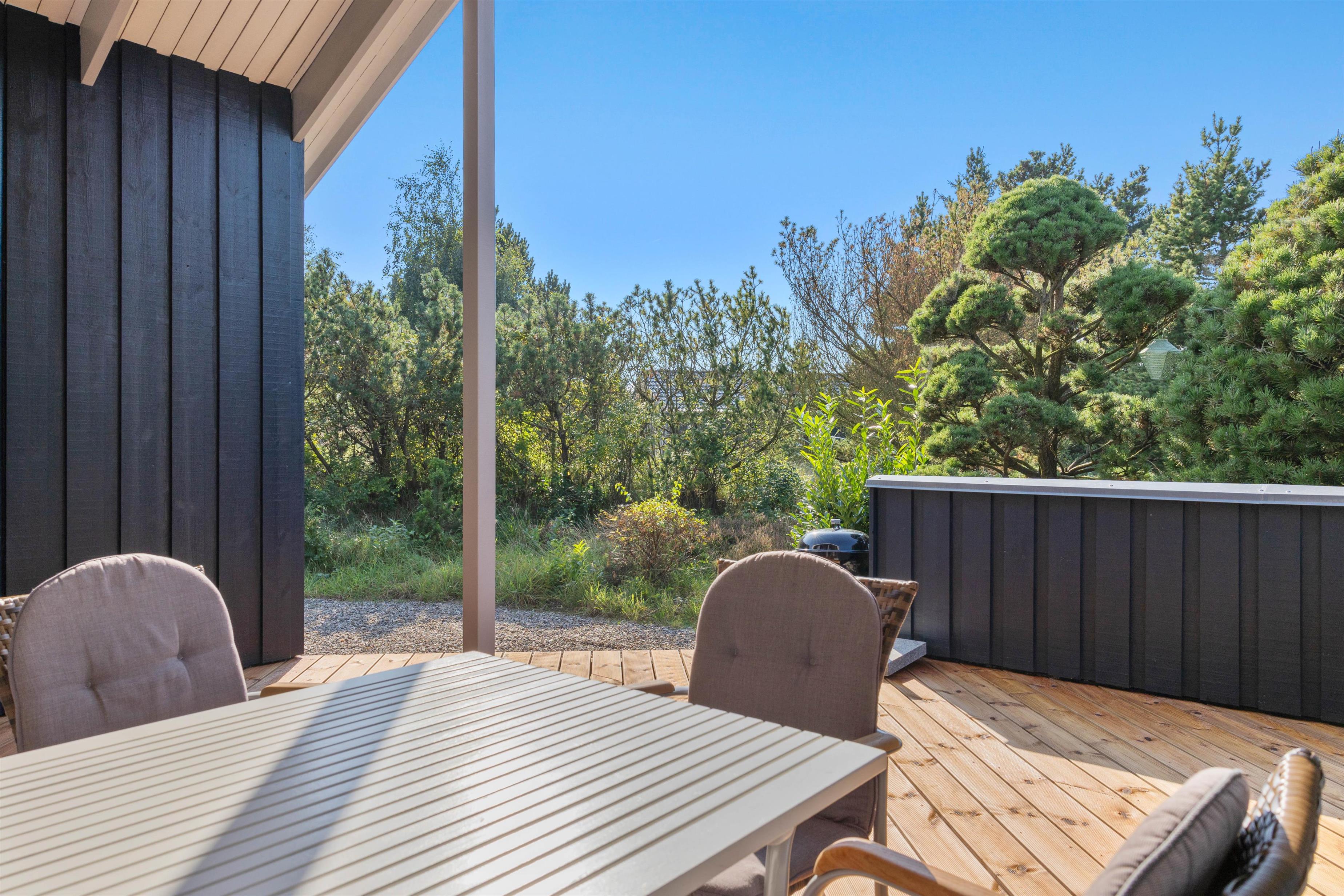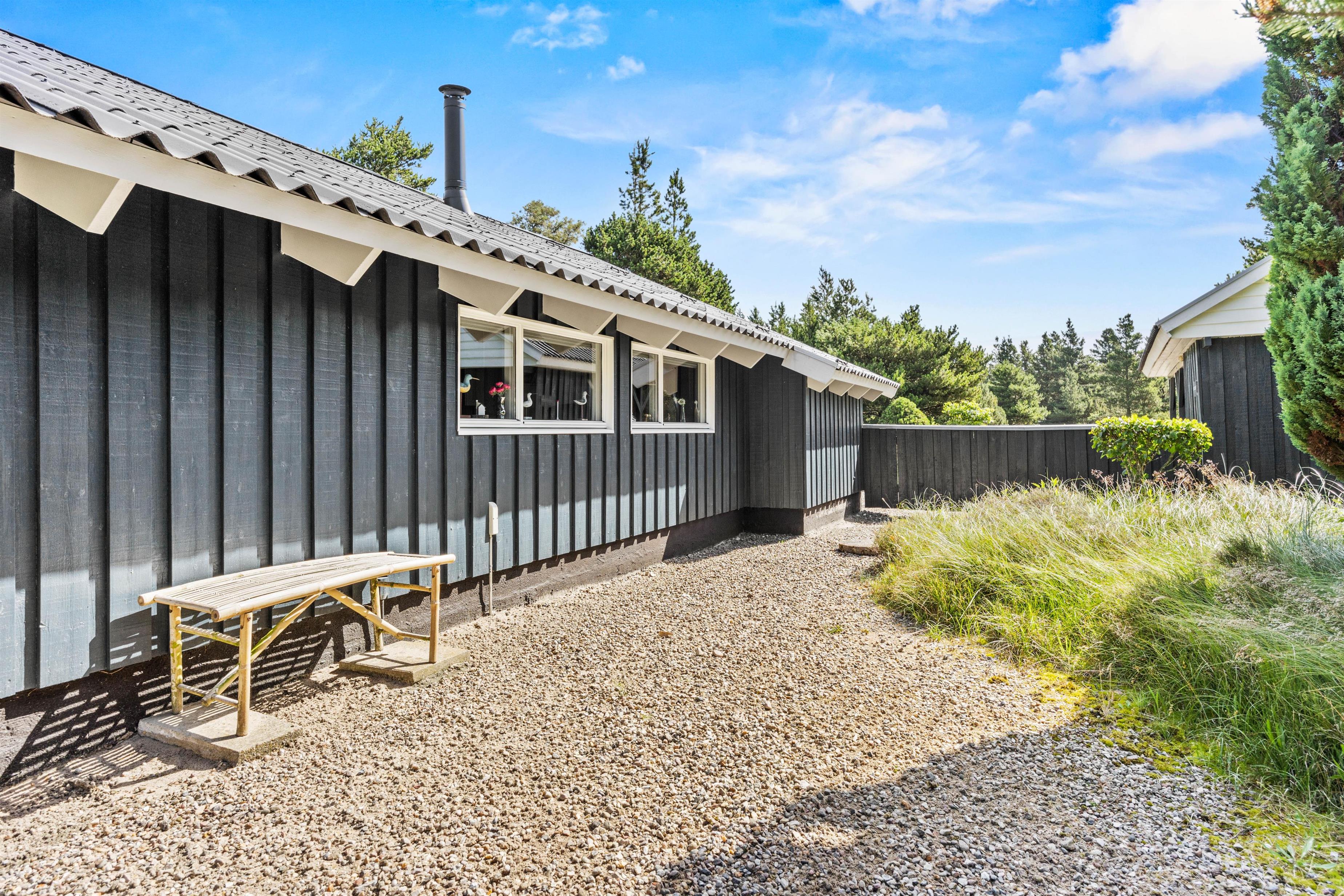 Til aften kan I lave et lækkert måltid med saftige bøffer på sommerhusets tilhørende grill, mens børnene leger på naturgrunden. Her er både sandkasse og gyngestativ til familiens yngste.