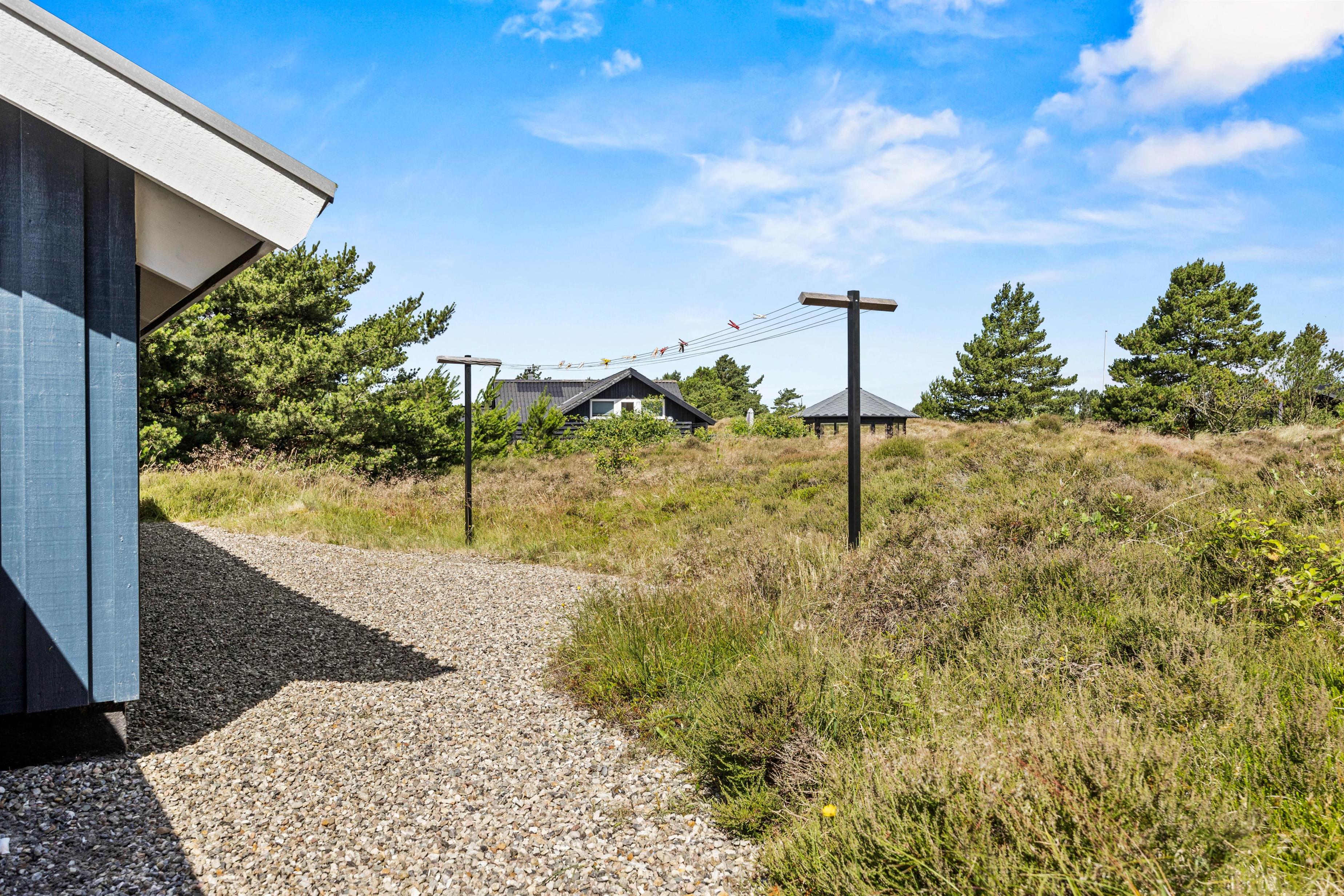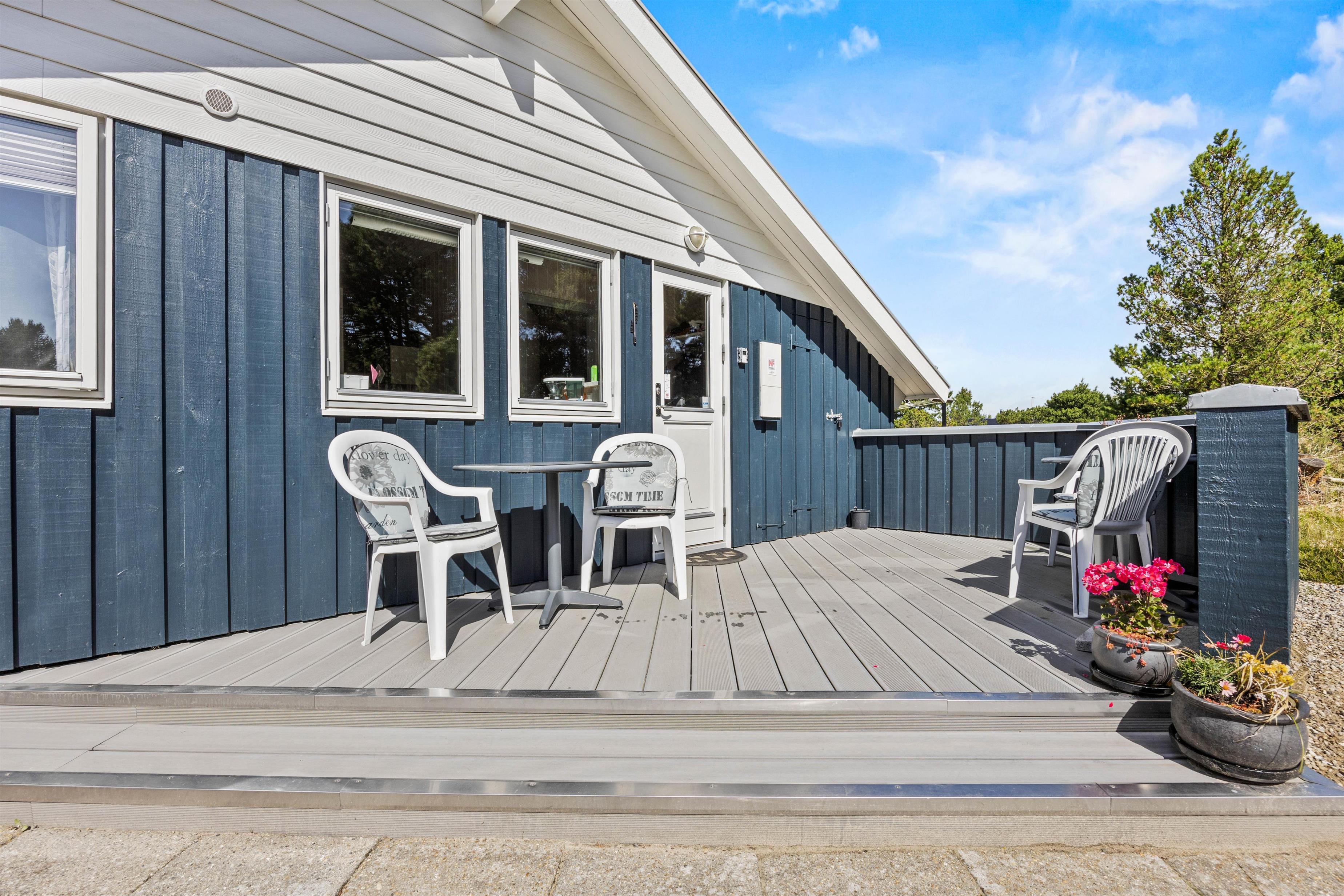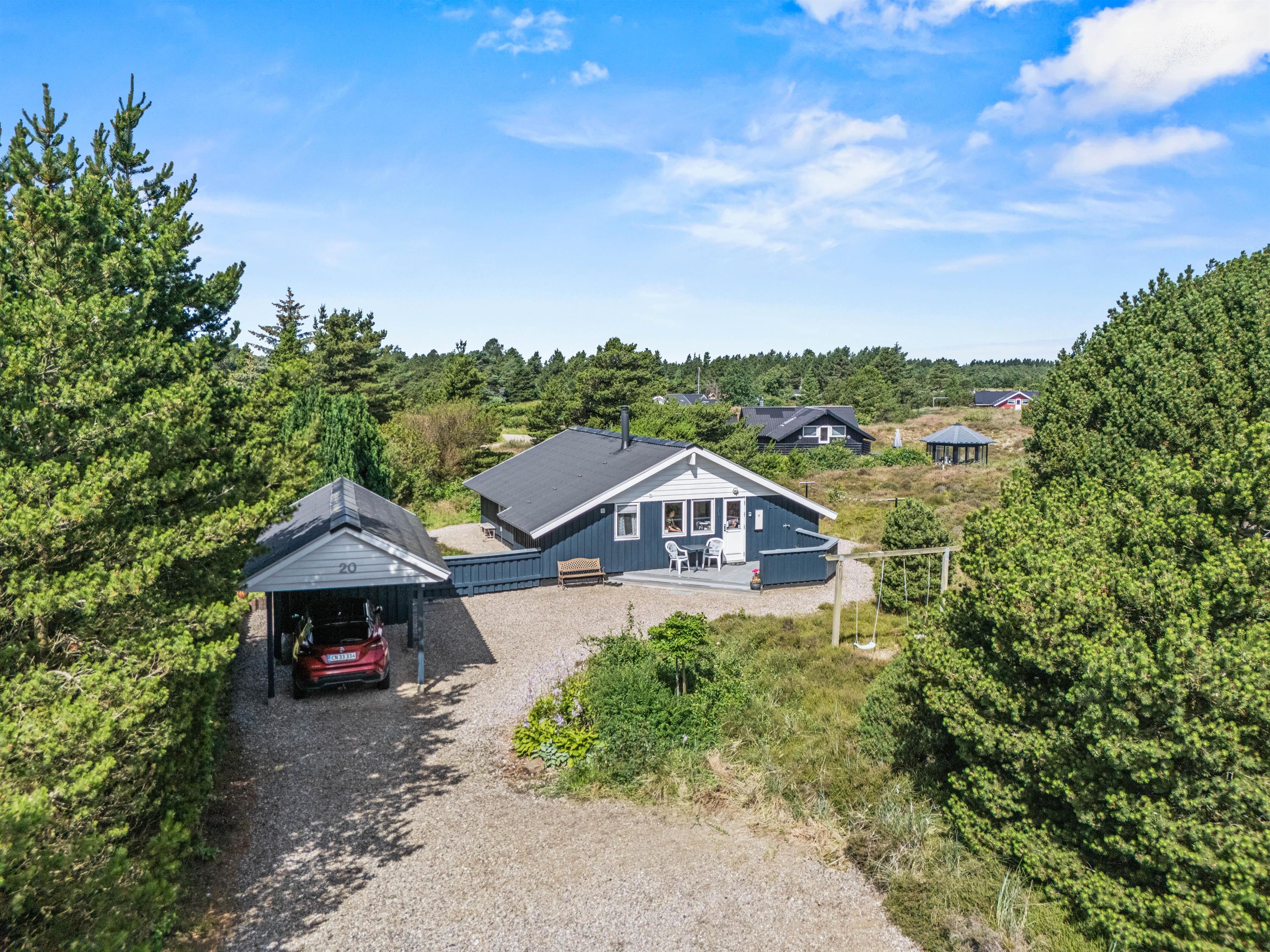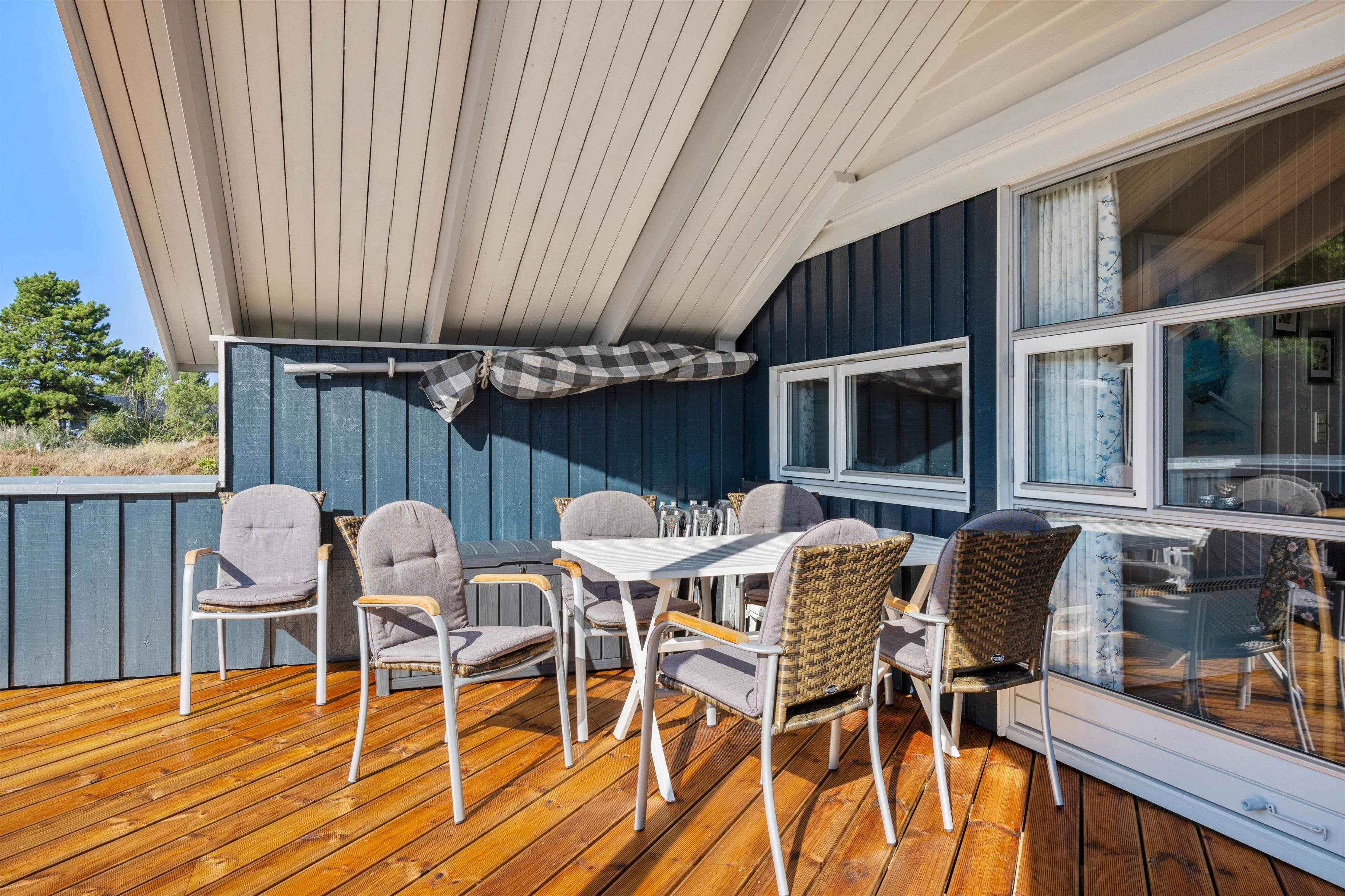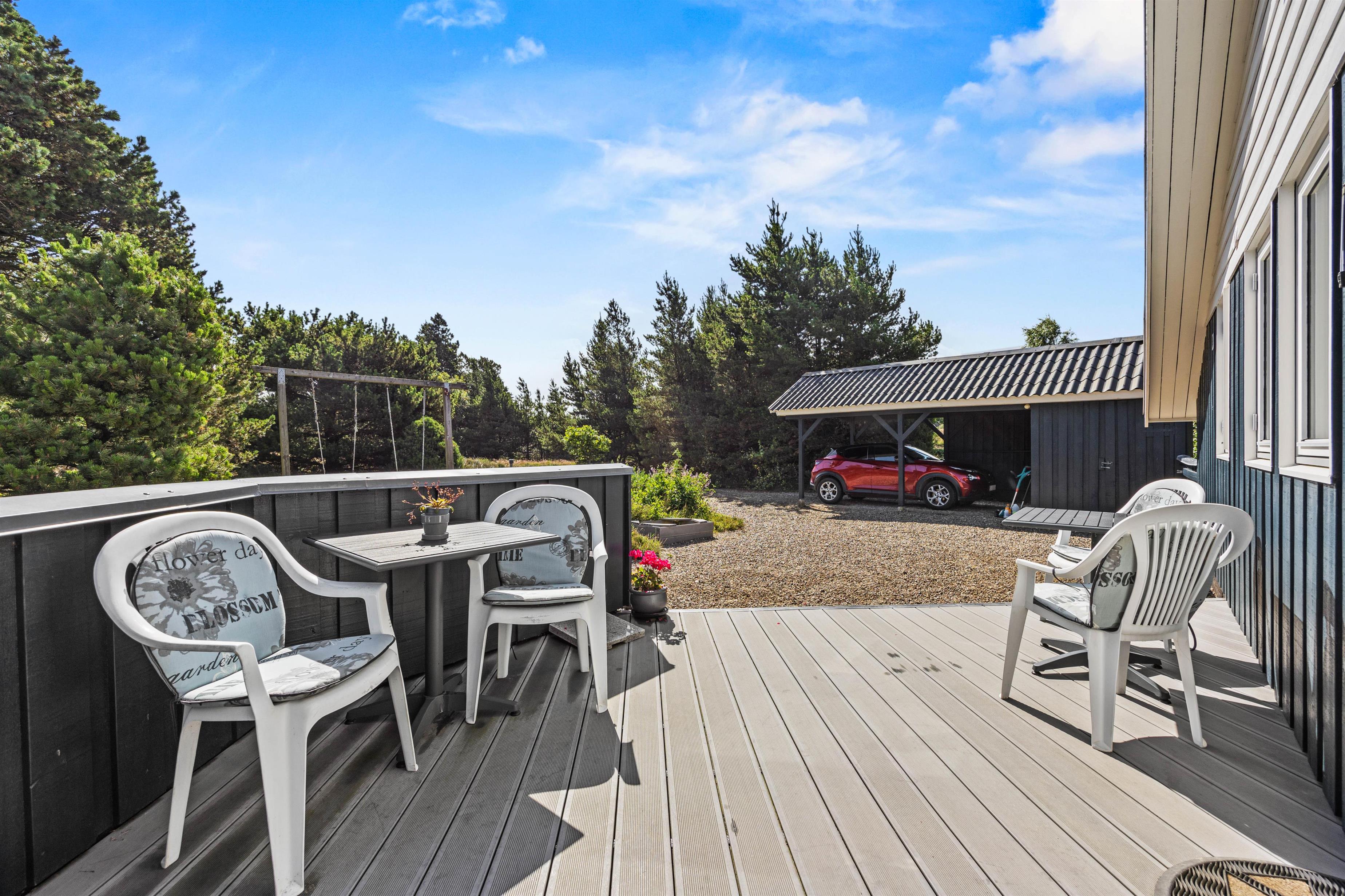 Sommerhuset ligger på en skøn naturgrund med carport, og her er 2 gode terrasser, hvorfra I kan nyde de lune sommerdage. Den ene terrasse er vestvendt, mens den anden er østvendt. Begge er delvist afskærmet, så I kan sidde i læ for et par vindpust.