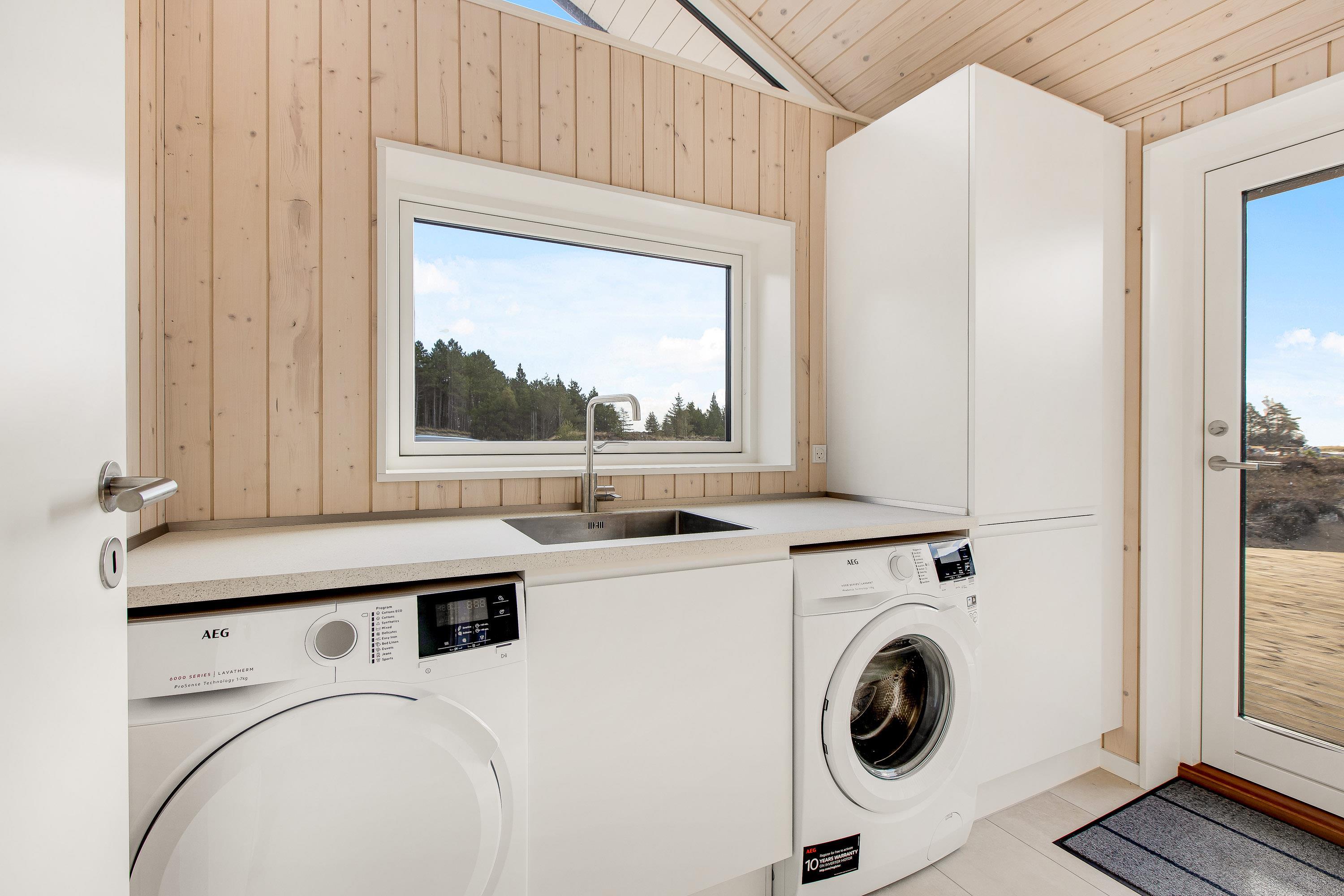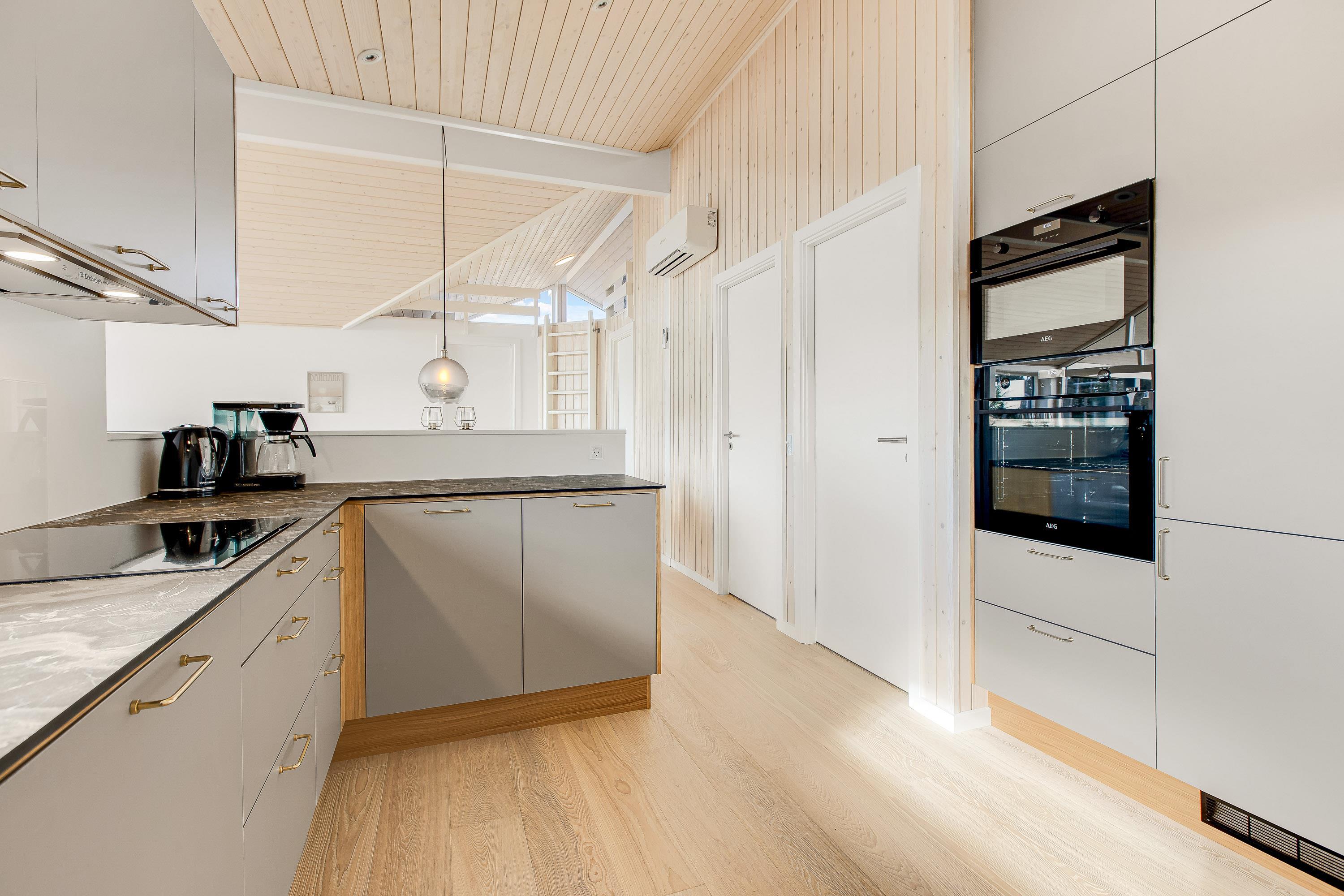 I dette sommerhus kan du tilbringe mange glade timer med hele familien, lave mad sammen, arrangere brætspilsaftener eller en hyggelig filmaften med børnene. I køkkenet vil lystfiskeren - udover de almindelige faciliteter som induktionskogeplader, opvaskemaskine, ovn og mikroovn - især blive glad for den separate 60 liters fryser. Der er en energibesparende varmepumpe, samt trægulve i opholds- og soverum.