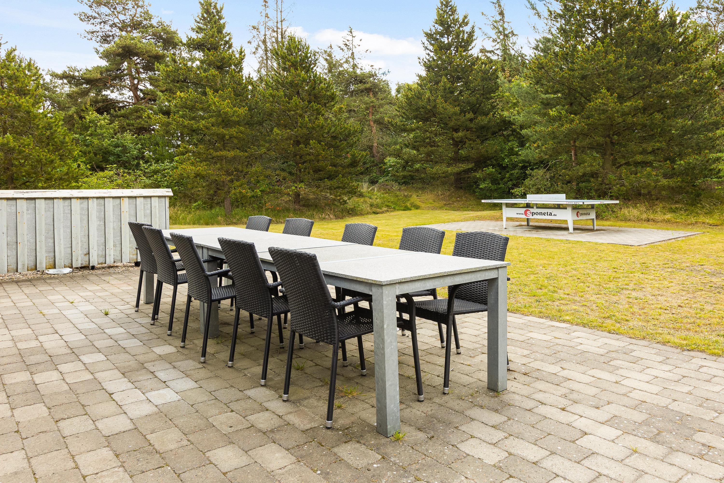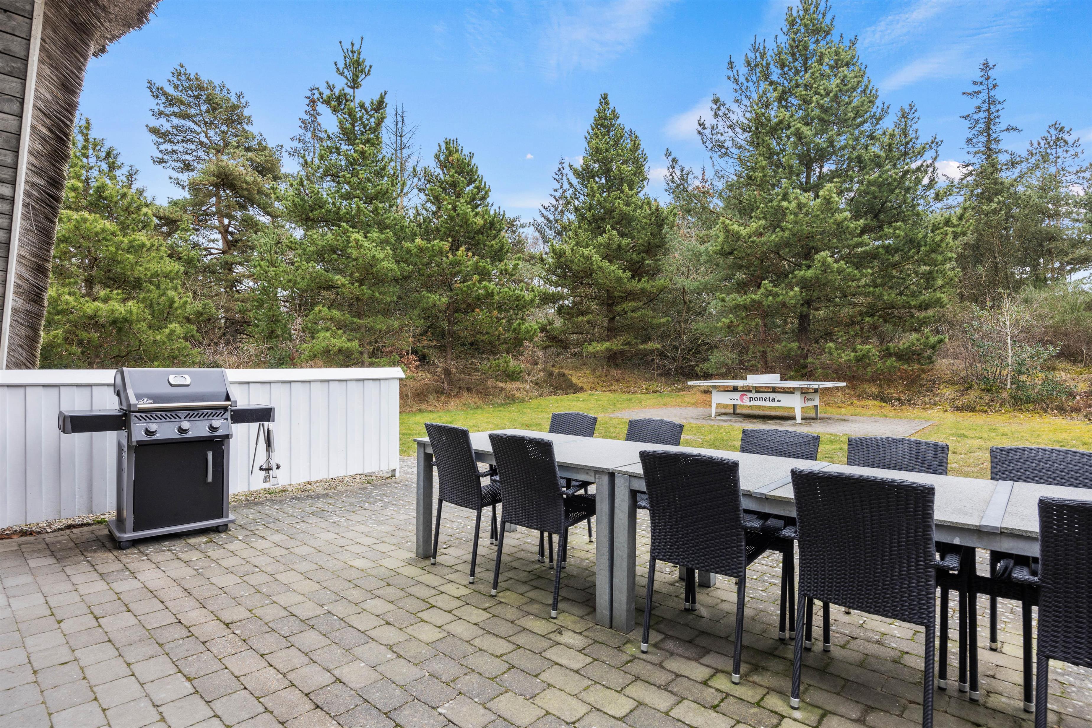 Huset ligger på en skøn lukket grund omgivet af fyrretræer. Den store terrasse sørger for at i kan nyde solen hele dagen. Til de legesyge er der et udendørs bordtennisbord.