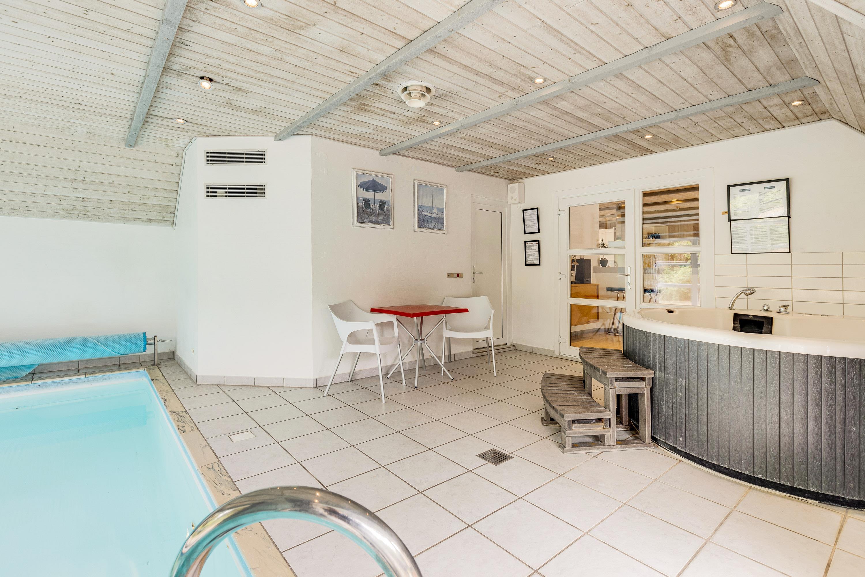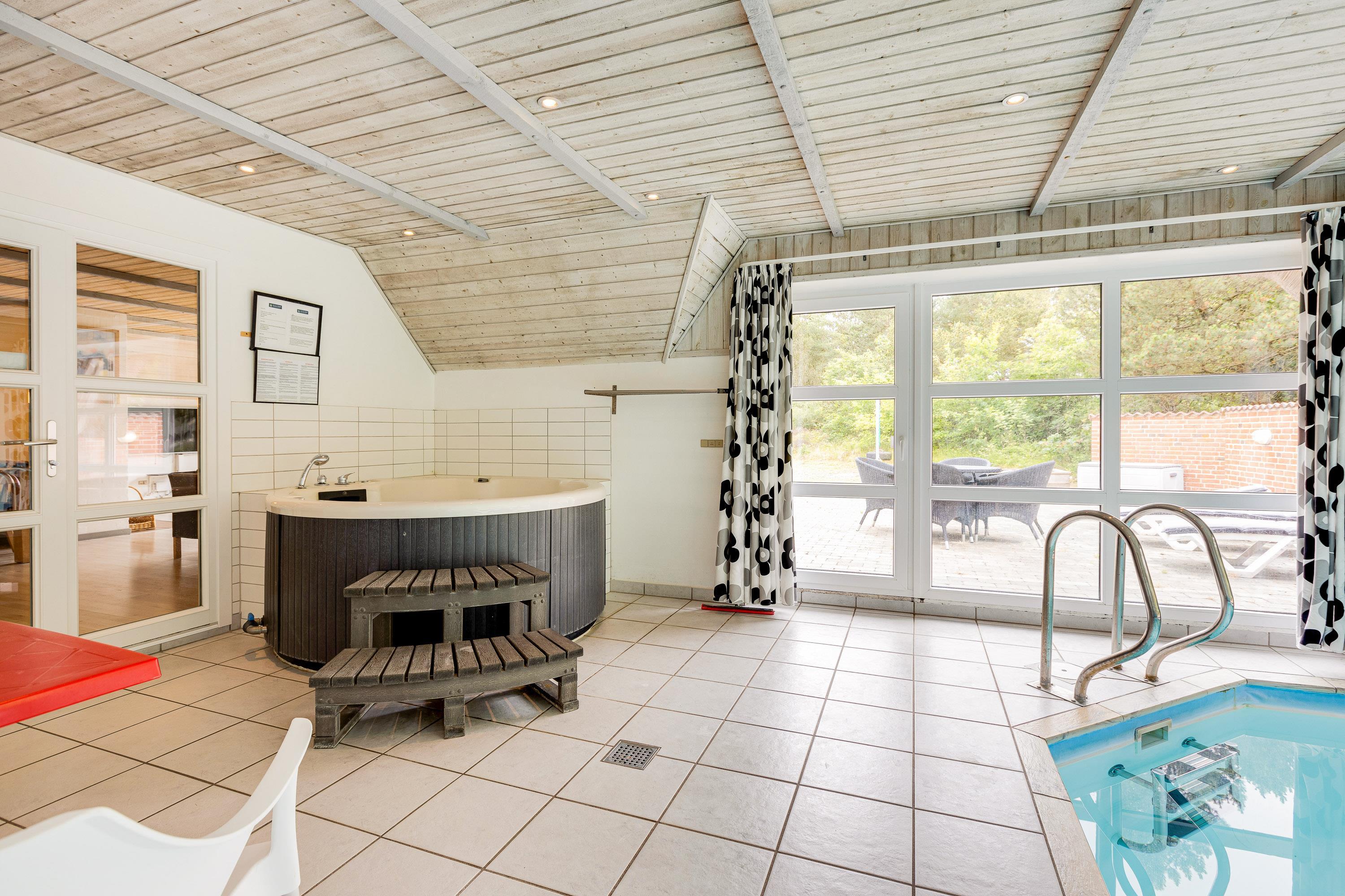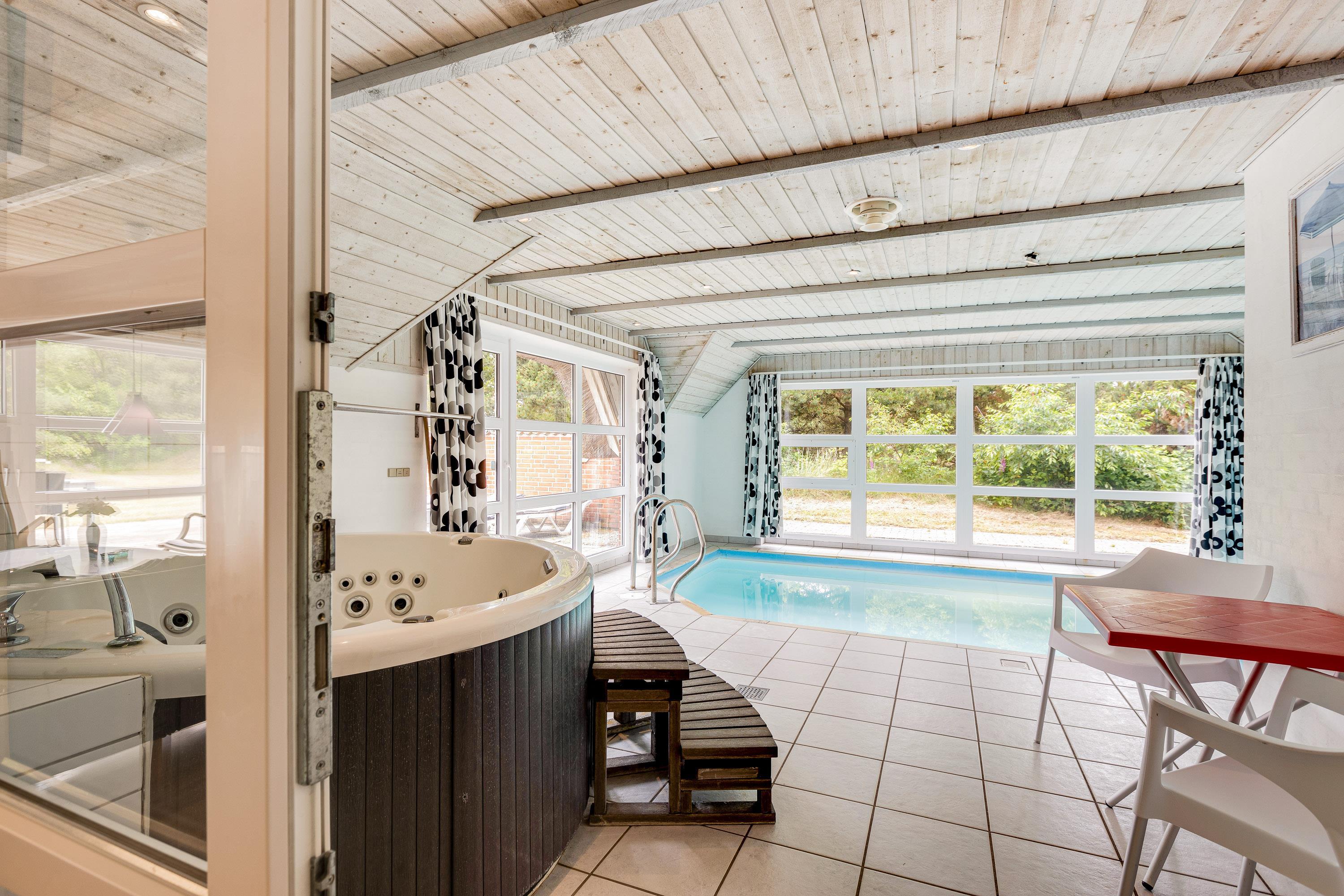 Sommerhusets highlight er poolområdet, som inviterer jer til sjov og afslapning. Børnene kan tage en tur i feriehusets egen pool, mens du kan læse en bog i samme lokale, og når I efter en tur langs stranden kommer tilbage fra en begivenrig dag, kan I varme kroppen op i sommerhusets egen sauna eller i spaen og nyde det rene velvære.