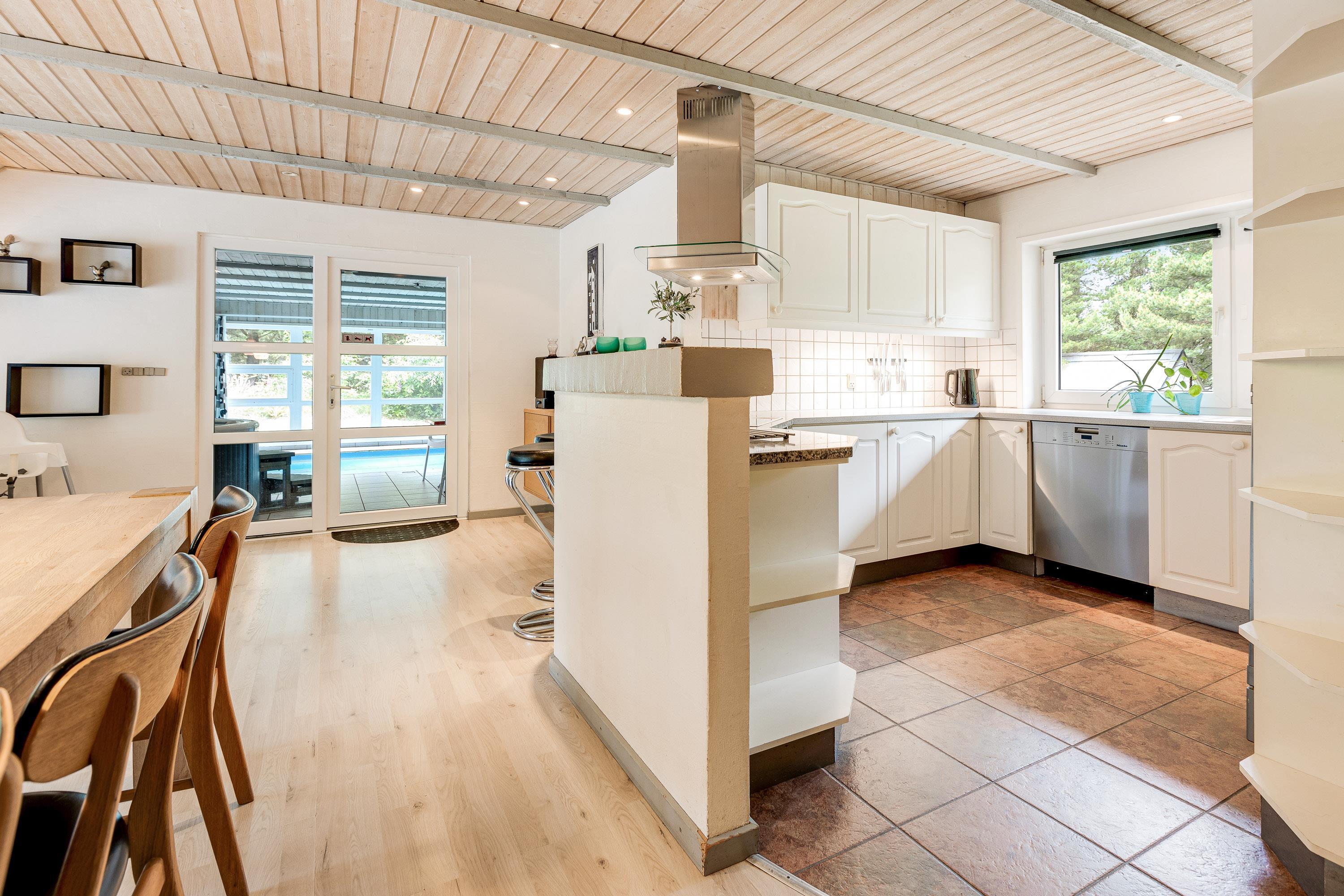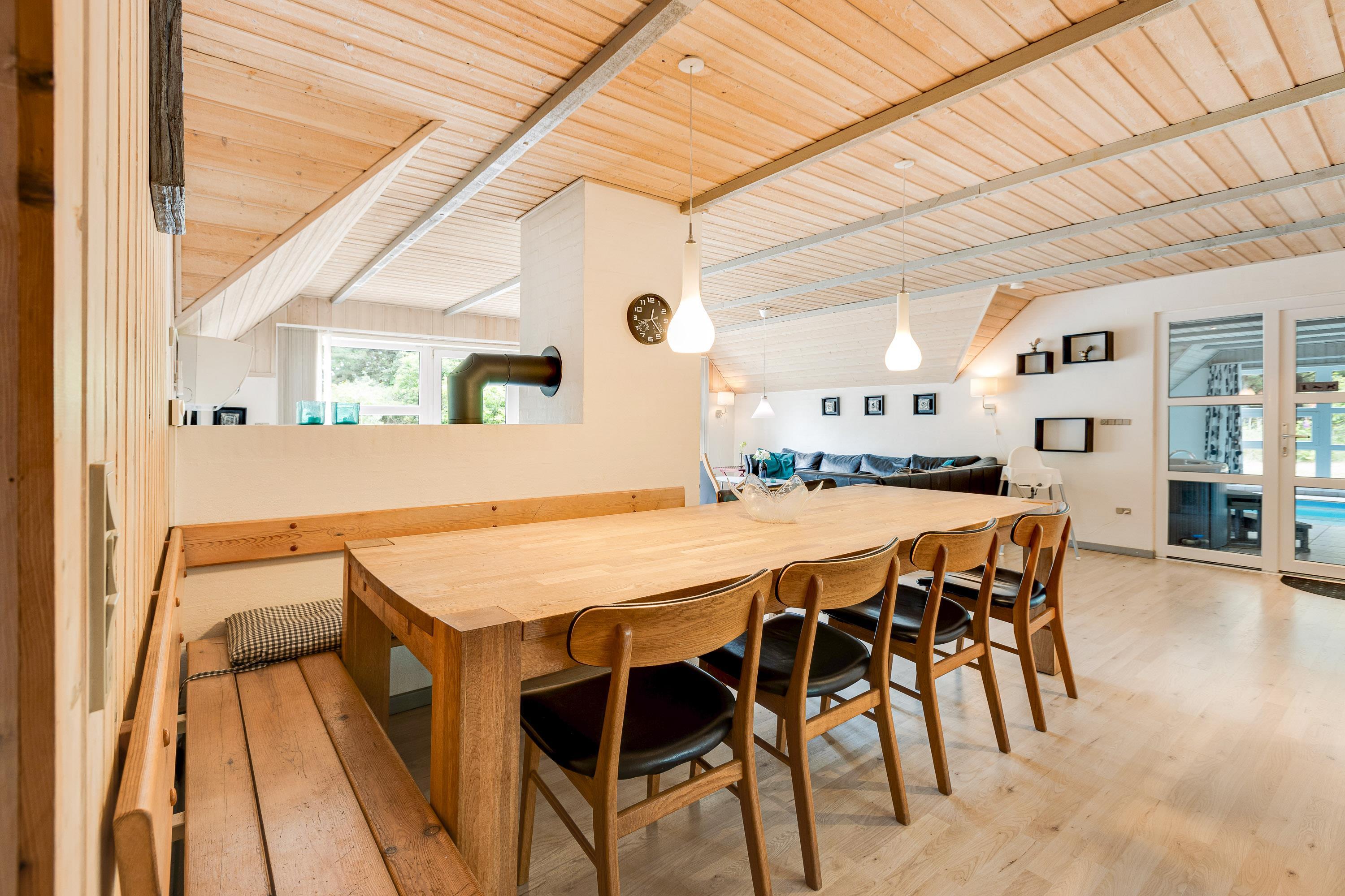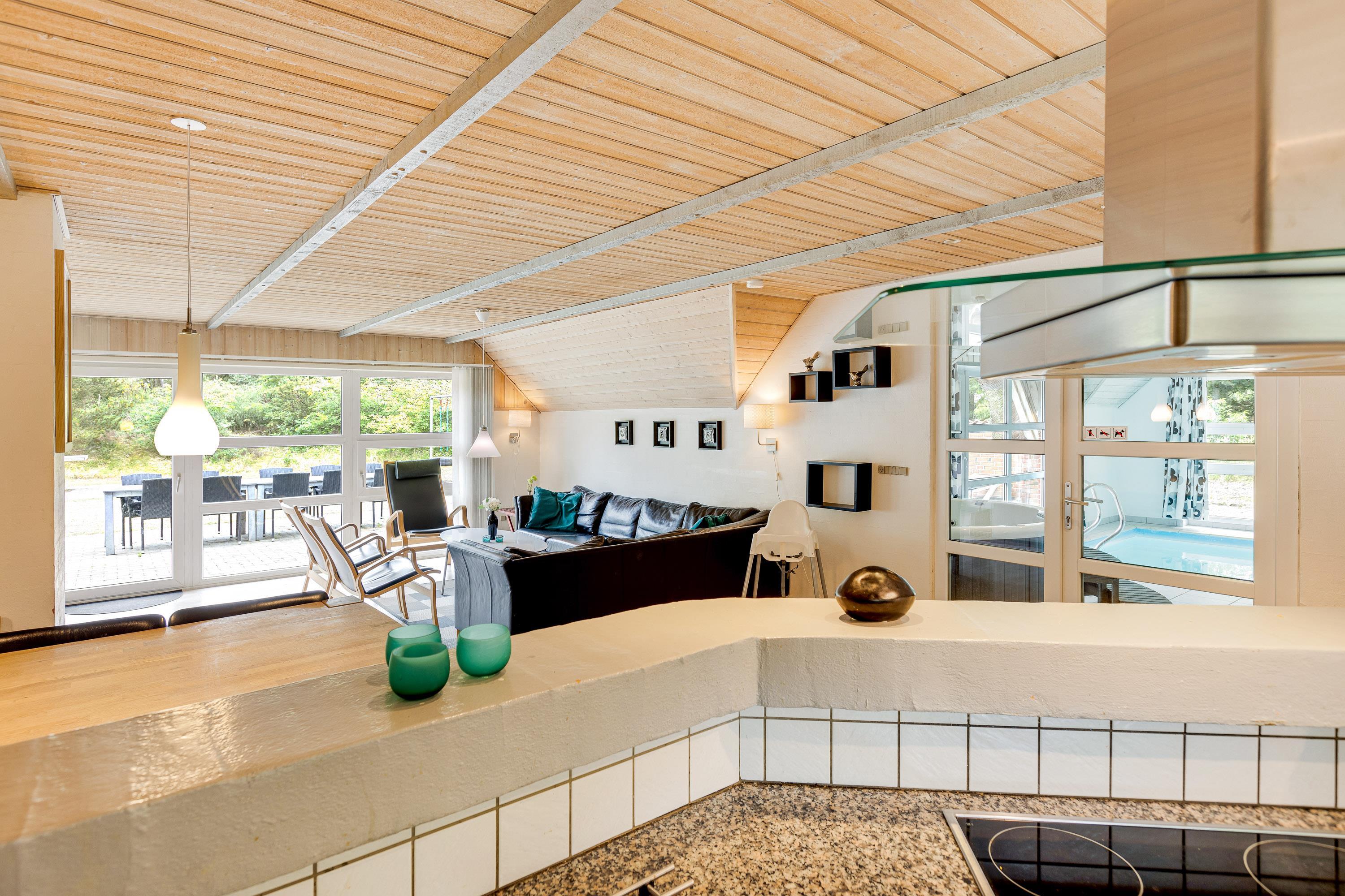 Sommerhusets highlight er poolområdet, som inviterer jer til sjov og afslapning. Børnene kan tage en tur i feriehusets egen pool, mens du kan læse en bog i samme lokale, og når I efter en tur langs stranden kommer tilbage fra en begivenrig dag, kan I varme kroppen op i sommerhusets egen sauna eller i spaen og nyde det rene velvære.