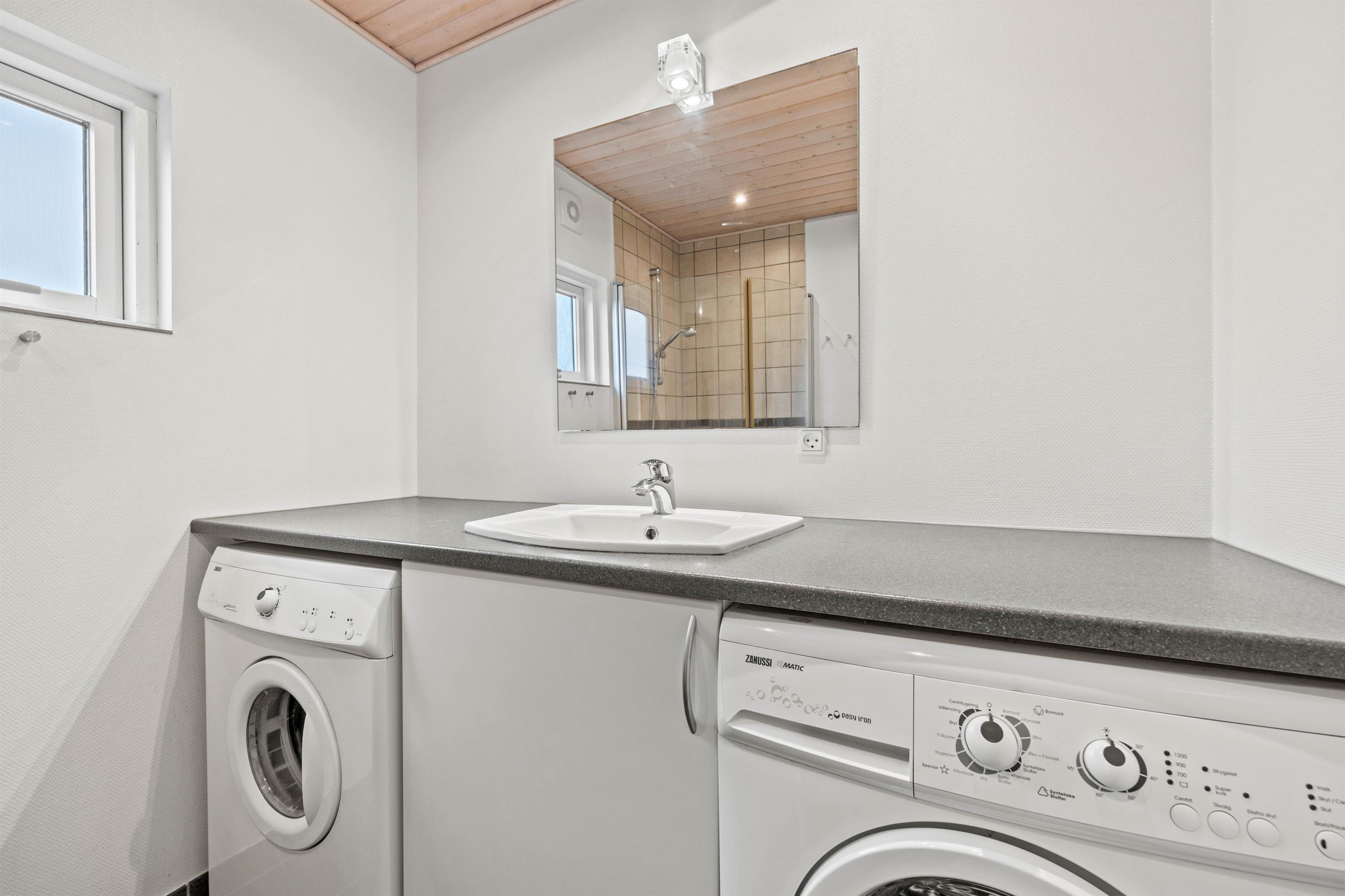 For at kunne nyde en bekymringsfri ferie er sommerhuset udstyret med alle hverdagens praktiske hjælpere. Vaskemaskine, tørretumbler og opvaskemaskine sikrer, at dagligdagen går nemt, mens en energibesparende luft-til-luft varmepumpe holder temperaturen behageligt året rundt - huset er allergivenlig indrettet.