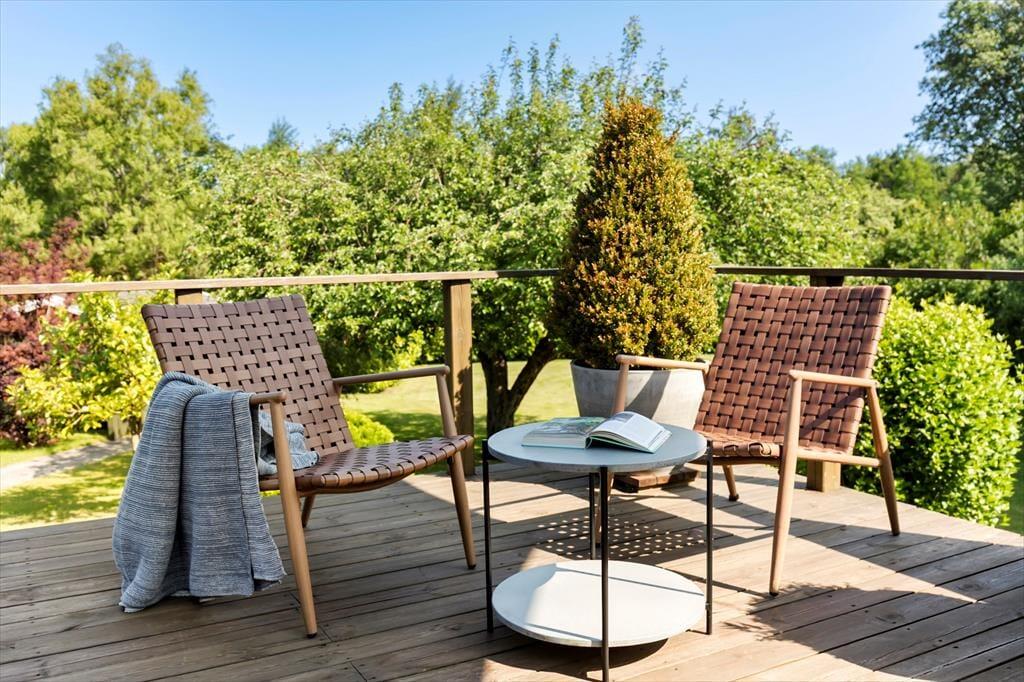 Den store, smukke have har flere steder, hvor du kan nyde udendørslivet, hvad enten det er for at spille badminton eller kroket. På den store, dejlige terrasse kan I samles til en aftenstund med ”røver historier” fra de gode gamle dage eller et godt glas rødvin efter børnene er gået i seng. I haven finder du også husets tilhørende anneks, hvor man kan trække sig tilbage når tid er.