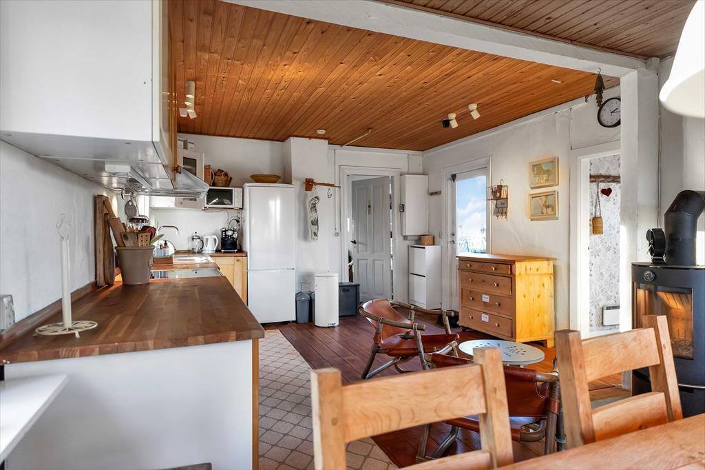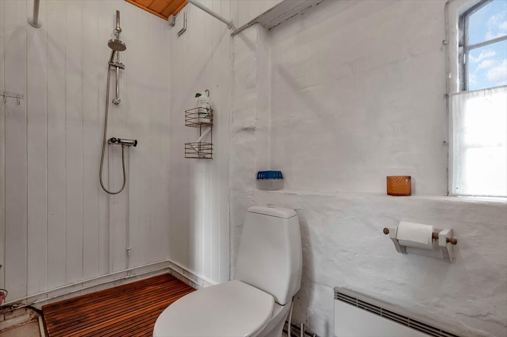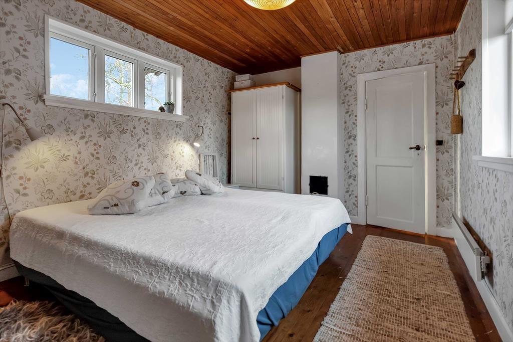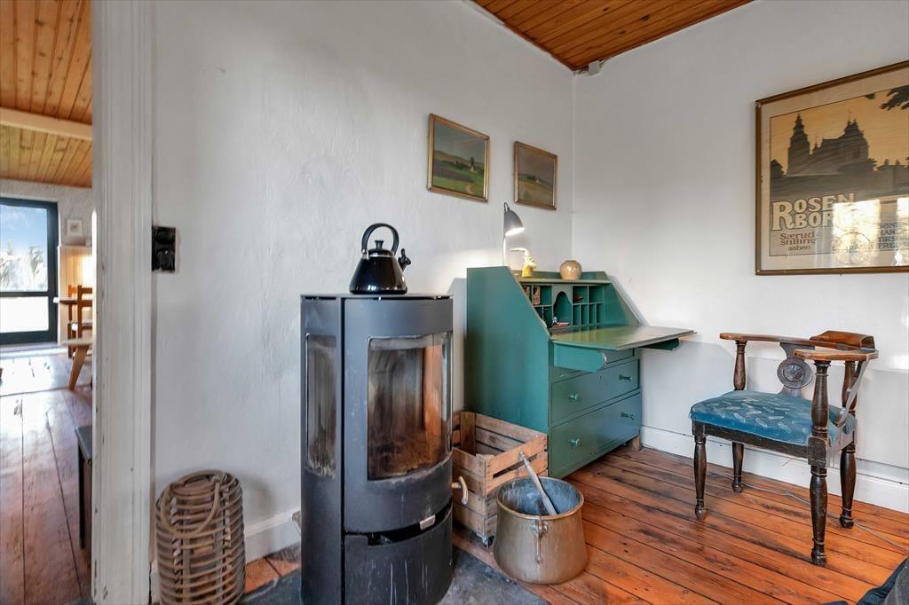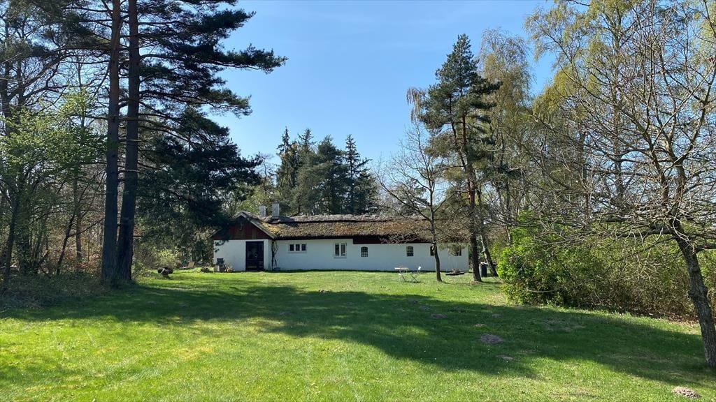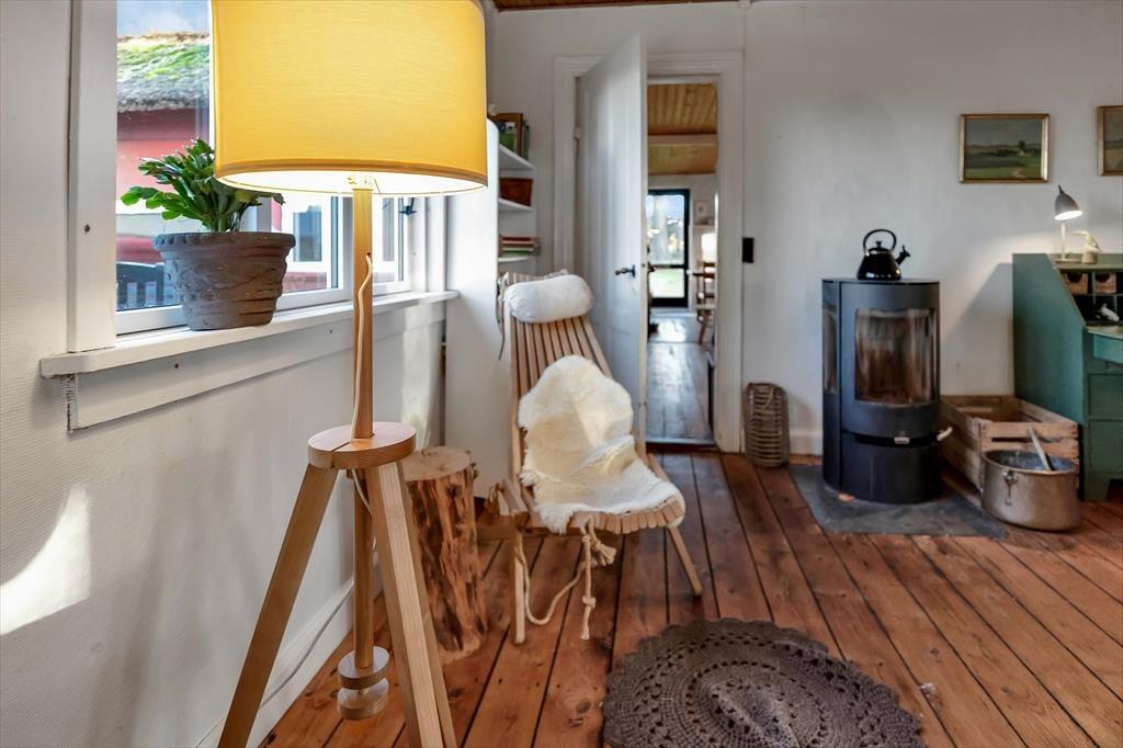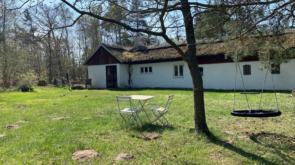 Du træder ind i et hyggeligt,gammelt bondehus, der har været familiens eje i tre generationer. Det oprindelige hus er nænsomt bevaret og står fint sammen med de renoveringer, som er foretaget de sidste 10-15 år. Det stort spisekøkken med masser af plads til tilberedning af måltiderne, og brændeovnen sørger for den dejlige hygge. Herfra kigger du ud i haven, man fristes til at sige parken på den over 5500 m2 store grund- som bare fortsætter med marker og skov så langt øjet rækker. Dagligstuen har også brændeovn og TV, og her kryber man ind, når der skal hygges med et godt glas vin eller kaffe, mens man fordyber sig i en god bog eller tager brætspil frem til fælles hygge. I den nordlige længe er der tre soverum, og man passerer de to, inden man kommer til badeværelset og soveværelset ” stalden ” som oprindeligt var en stald men nu er ombygget til et rigtigt hyggeligt soveværelse med de originale staldvinduer.