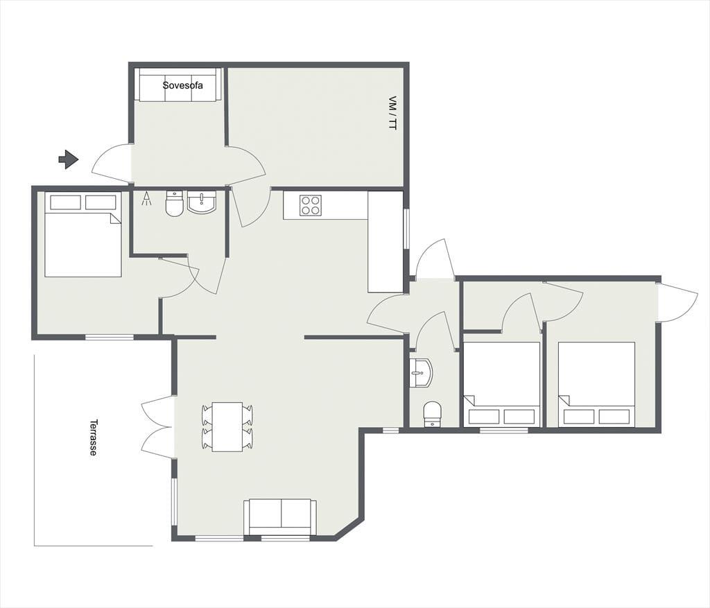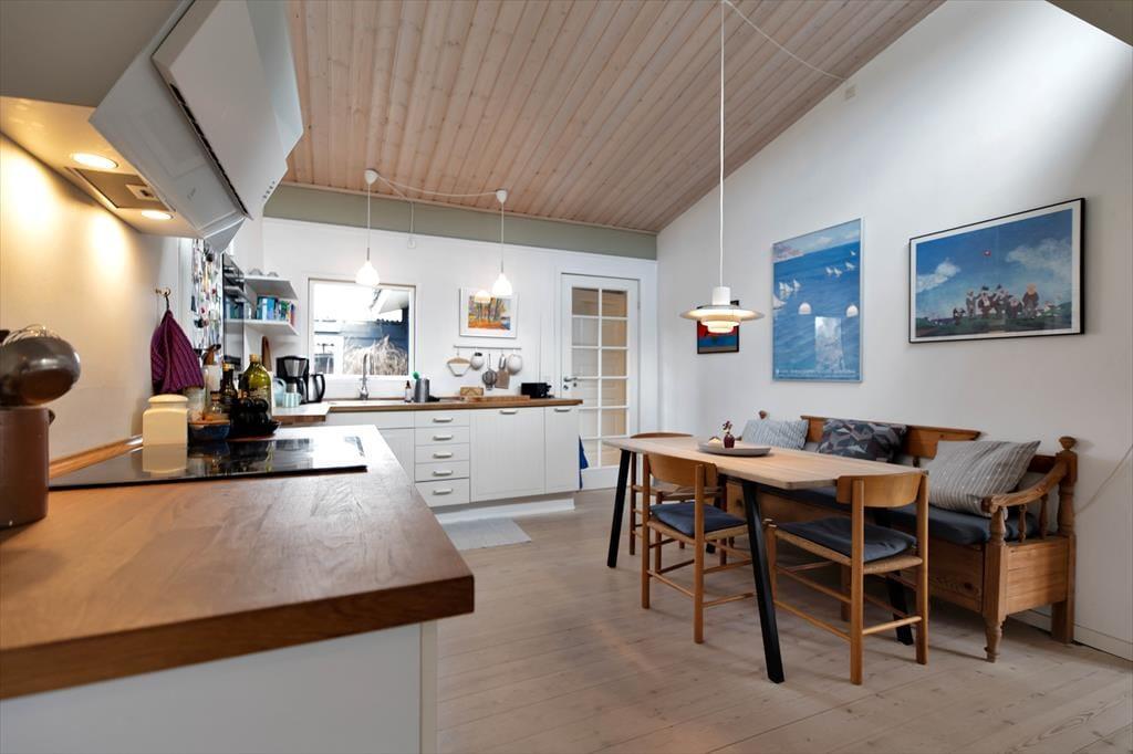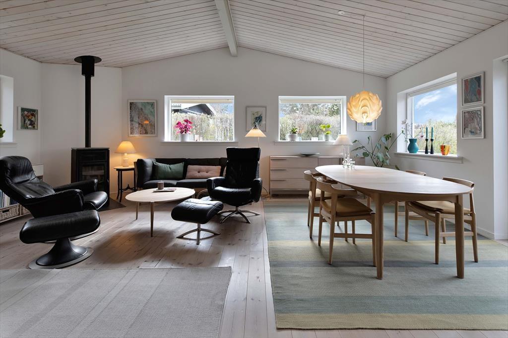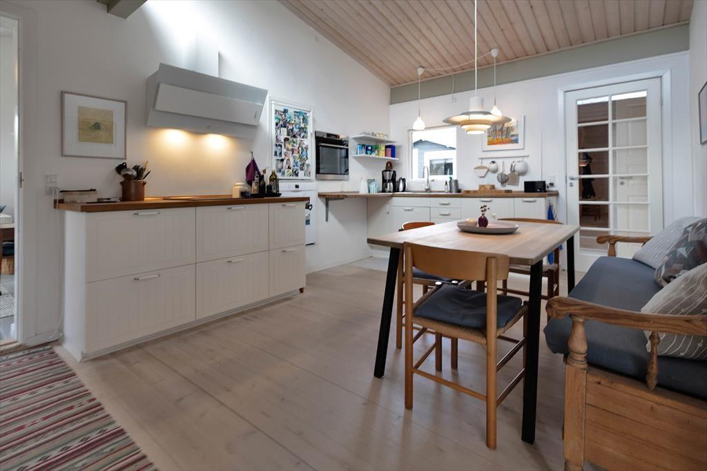 Dette hus har mange hyggelige rum og kroge. Stuen er samlingsstedet med TV og spisebord til mange aktive timer med brætspil eller lignende. Men man kan også slænge sig i sofaen eller lænestolene med en god bog. Mulighederne er mange. Det åbne køkken sammen med stuen gør, at man hygger sig sammen uanset om man står og laver mad, spiller, ser TV eller læser.