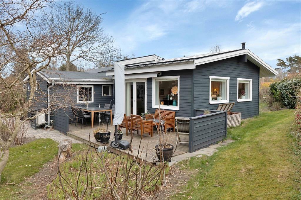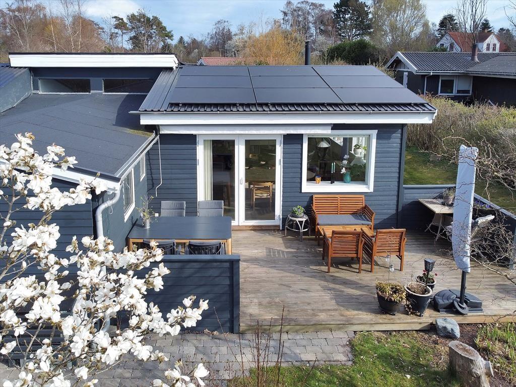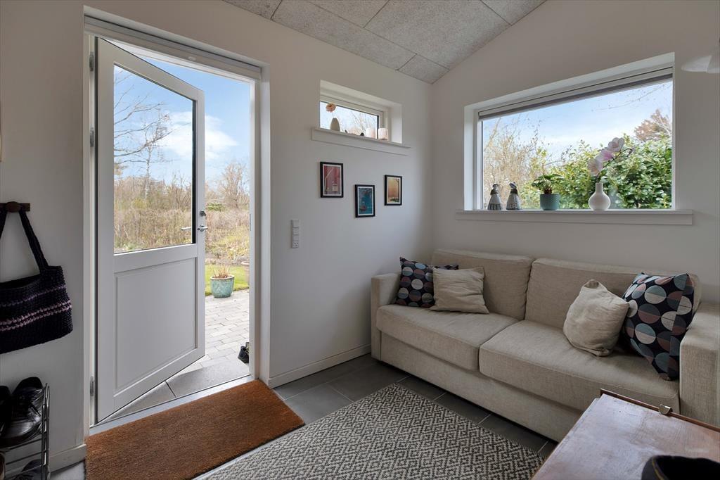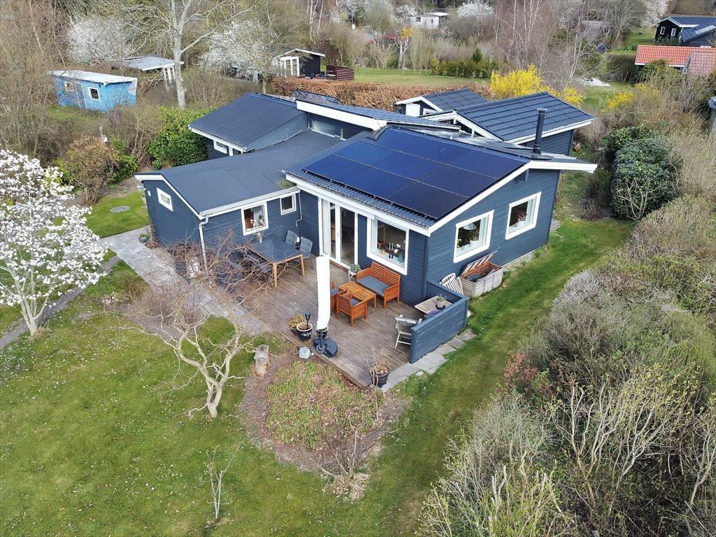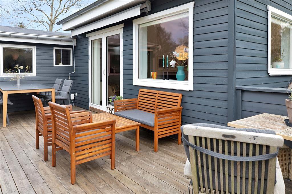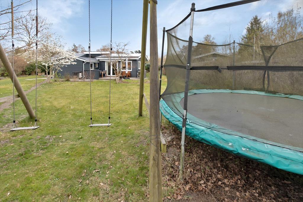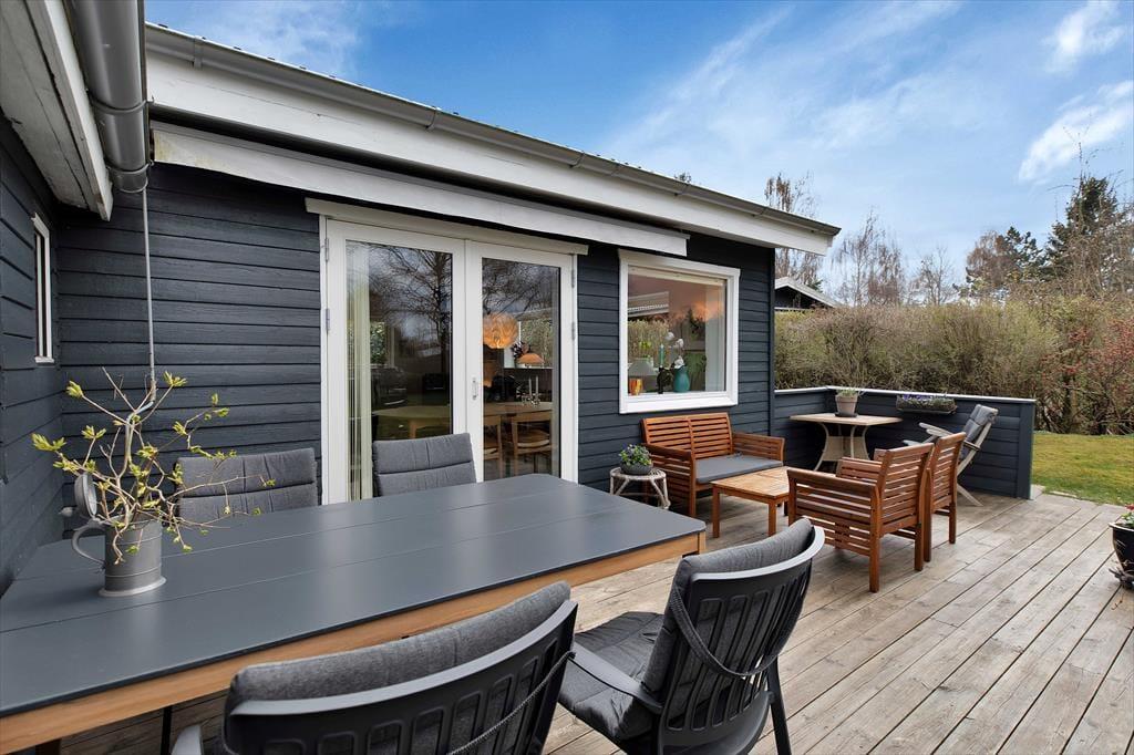 Sommerhuset er beliggende i et meget populært og roligt område. De to terrasser sikrer, at der næsten altid er en lun krog at sidde i, selvom det skulle være lidt blæsende. Terrasserne er selvfølgelig også her, man bare nyder sommeren og måltiderne, tilberedt på grillen, mens børnene boltrer sig i den store have med trampolin, gynge og plads til boldspil.
