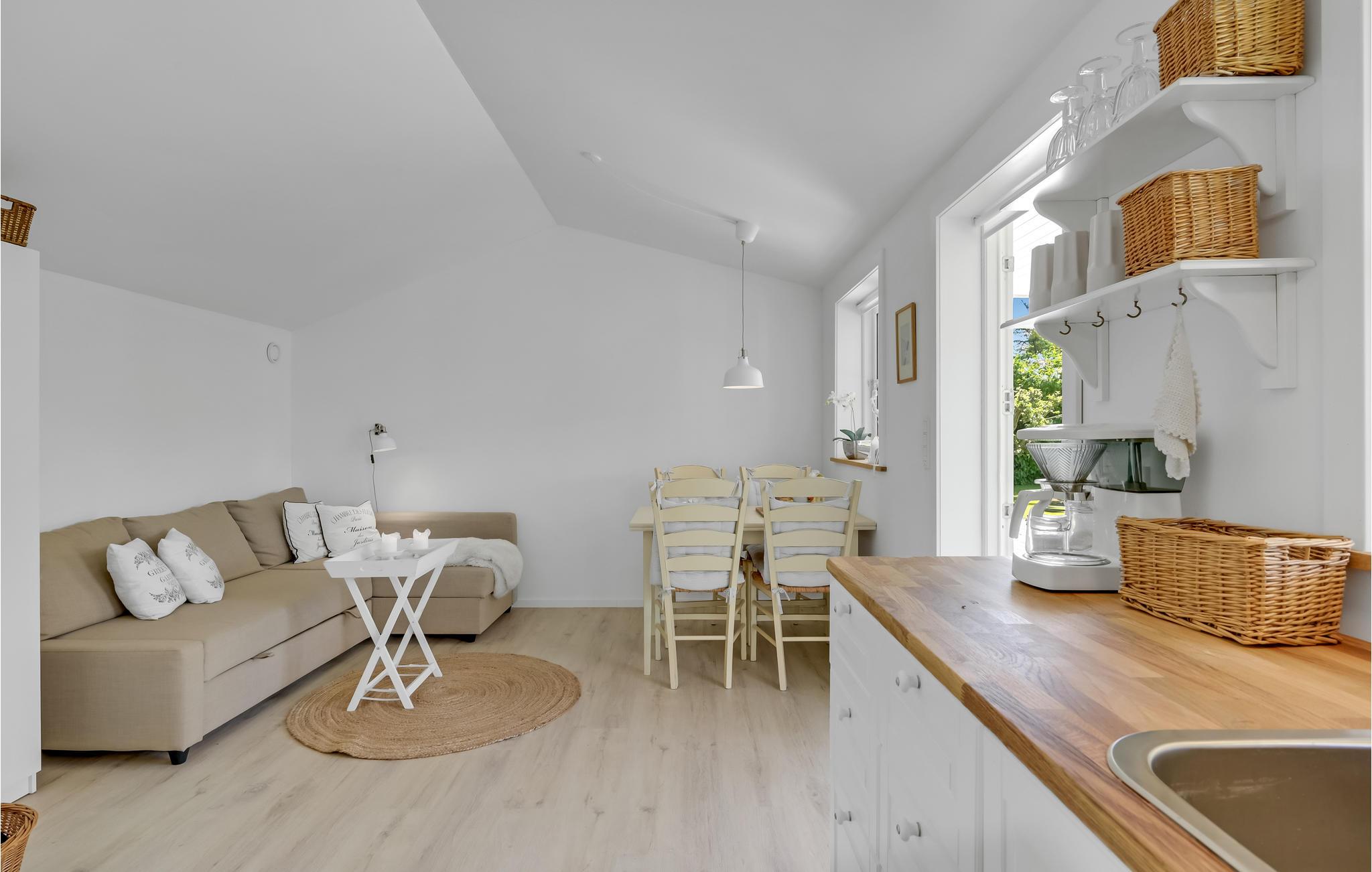 Dette skønne sommerhus tilbyder jer en enkel og sofistikeret indretning, så her kommer I til at føle jer godt tilpas. Læn jer tilbage med en bog i stuen eller nyd jeres morgenmad i solen på den åbne terrasse. Brug grillen eller bålstedet til de milde sommeraftener, hvor I sikkert vil sidde ude til efter mørkets frembrud.