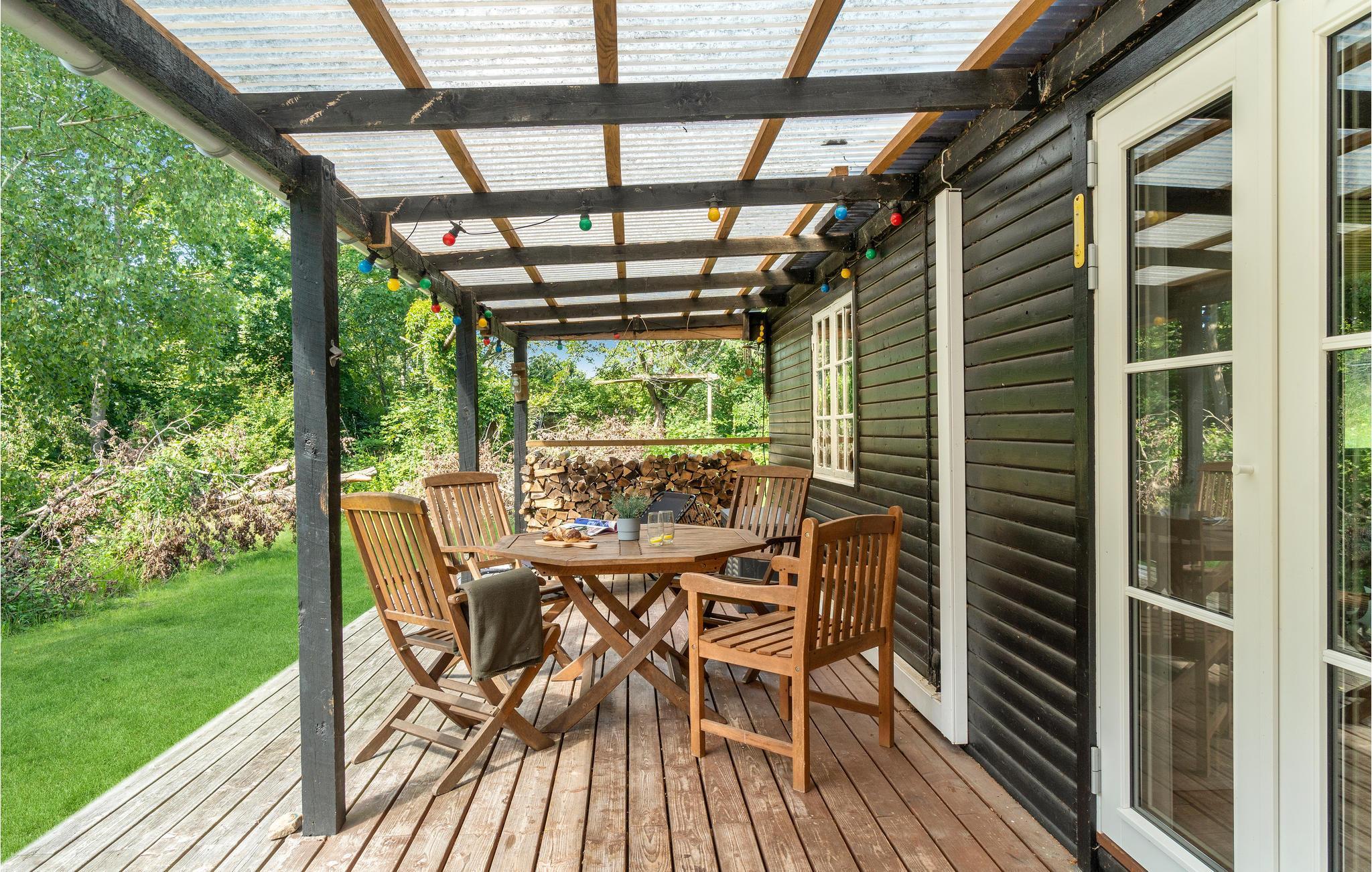 Velkommen til dette skønne sommerhus, hvor I får nogle varme og hjemlige rammer om jeres feriedage. Her kan I læne jer tilbage i den hyggelige stue med ild i brændeovnen og nyde hinandens selskab efter en lang dag på farten. Husets flotte trævægge er bevaret i det meste af boligen, og indretningen er i moderne retrostil. I kan fylde eftermiddagstimerne med hyggelige aktiviter som brætspil eller sætte jer med en god bog på sofabænken ved vinduet, mens andre gør aftensmaden klar i køkkenet. Glæd jer også til lange lyse sommeraftener på den overdækkede terrasse.