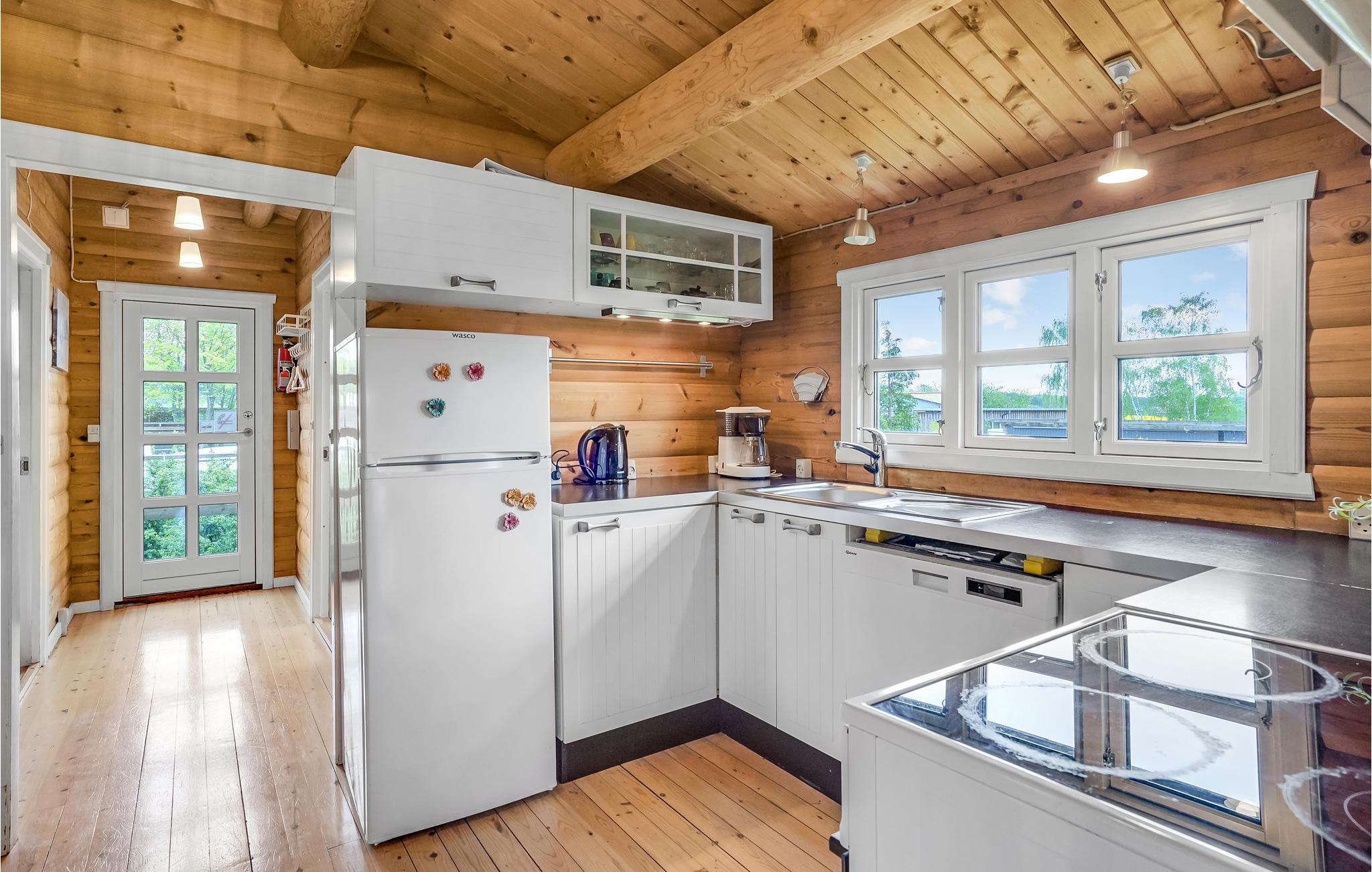 Dette tiltalende sorte bjælkehus med græstag og hyggelige værelser ligger på en stillevej og indbyder til afslapning og sjovt samvær. Husets indre er præget af en varm atmosfære takket være de rustikke bjælker, og her er rigelig plads til den lille børnefamilie. Sæt jer godt til rette i sofaerne, arrangér en sjov filmaften og snak til sent ud på aftenen. Drik en kop kaffe på den dejlige terrasse, mens jeres børn leger lystigt i den store anlagte have. Slå jer løs med et spil stangtennis og rund dagen af med et lækkert måltid fra grillen.