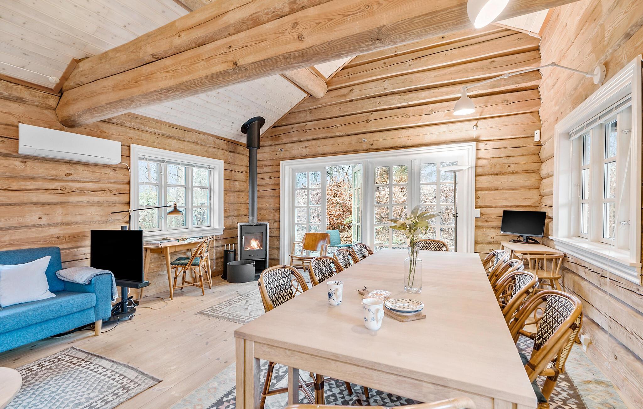 Midt mellem Isefjorden og Roskilde Fjord ligger dette sommerhus, som er det perfekte udgangspunkt for nogle afslappende dage fyldt med spændende oplevelser. Både inde og ude er huset indrettet i en varm, hyggelig træstil, der får tempoet ned hos hele familien. Tilbered jeres livretter i det rummelige køkken og planlæg dagens aktiviteter over morgenmad sammen. Om aftenen slapper hele familien af ??i det hyggelige sofahjørne.