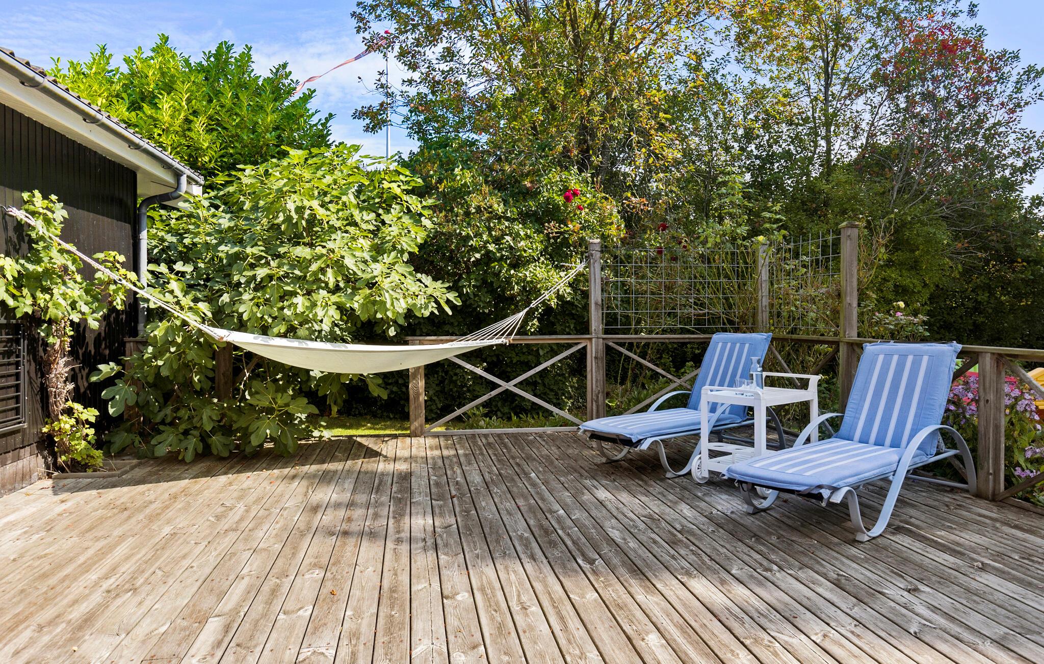 På solrige dage inviterer den charmerende have, med sine mange planter og træer, til afslapning. Uanset om I spiller, slapper af eller spiser sammen på terrassen, kan I her nyde den friske luft og den rolige atmosfære i fulde drag.