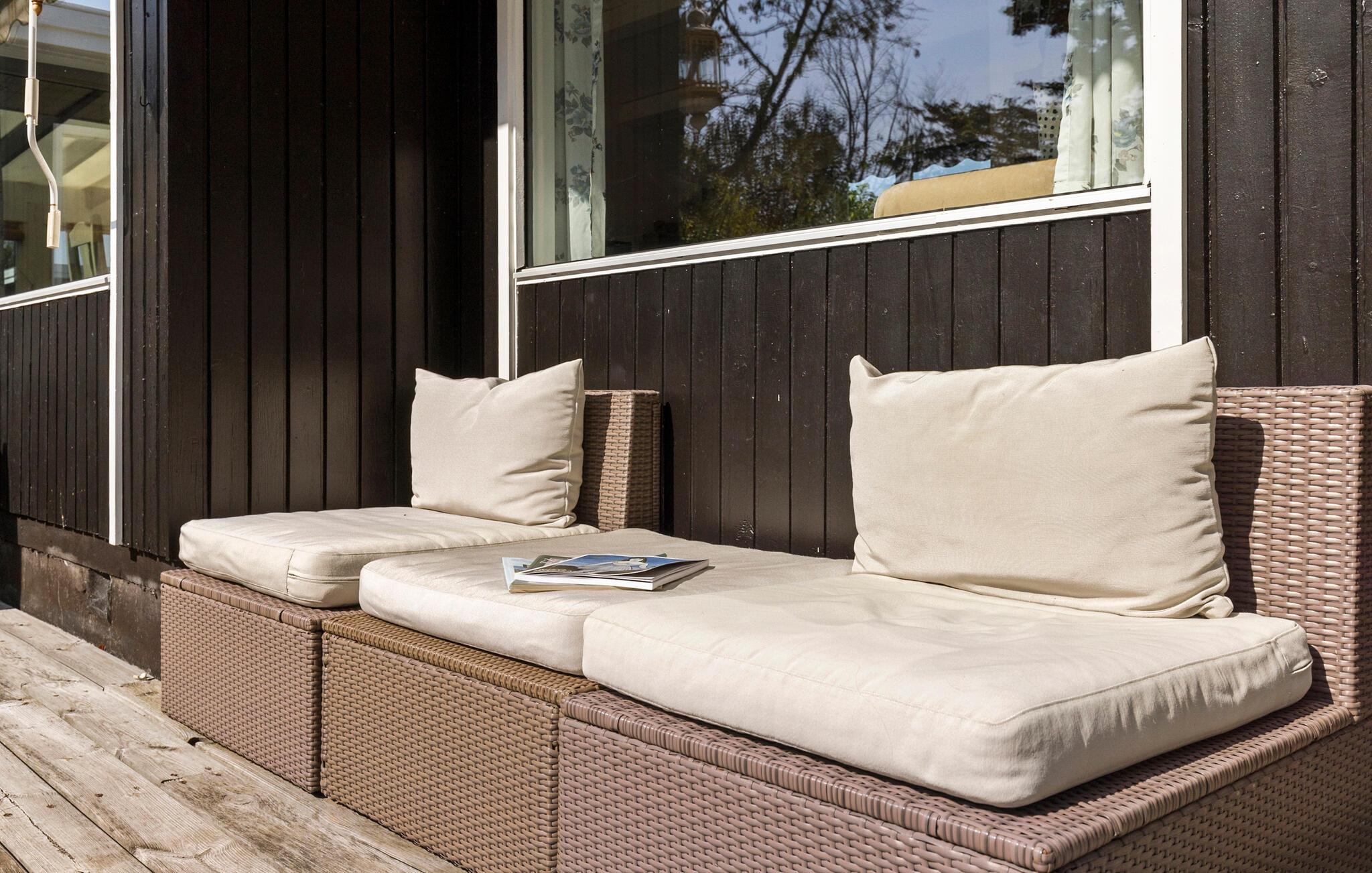 Jeres kompakte feriehus ved Kulhuse Strand byder på en dejlig, åben opholdsstue. I denne indbydende atmosfære vil I føle jer hjemme med det samme. Begynd dagene med en hyggelig morgenmad i den lyse spisestue eller i den skønne udestue, hvor I efterfølgende kan slappe af i de bløde møbler. Mens I spiser, kan I nyde udsigten til den grønne have gennem vinduerne.