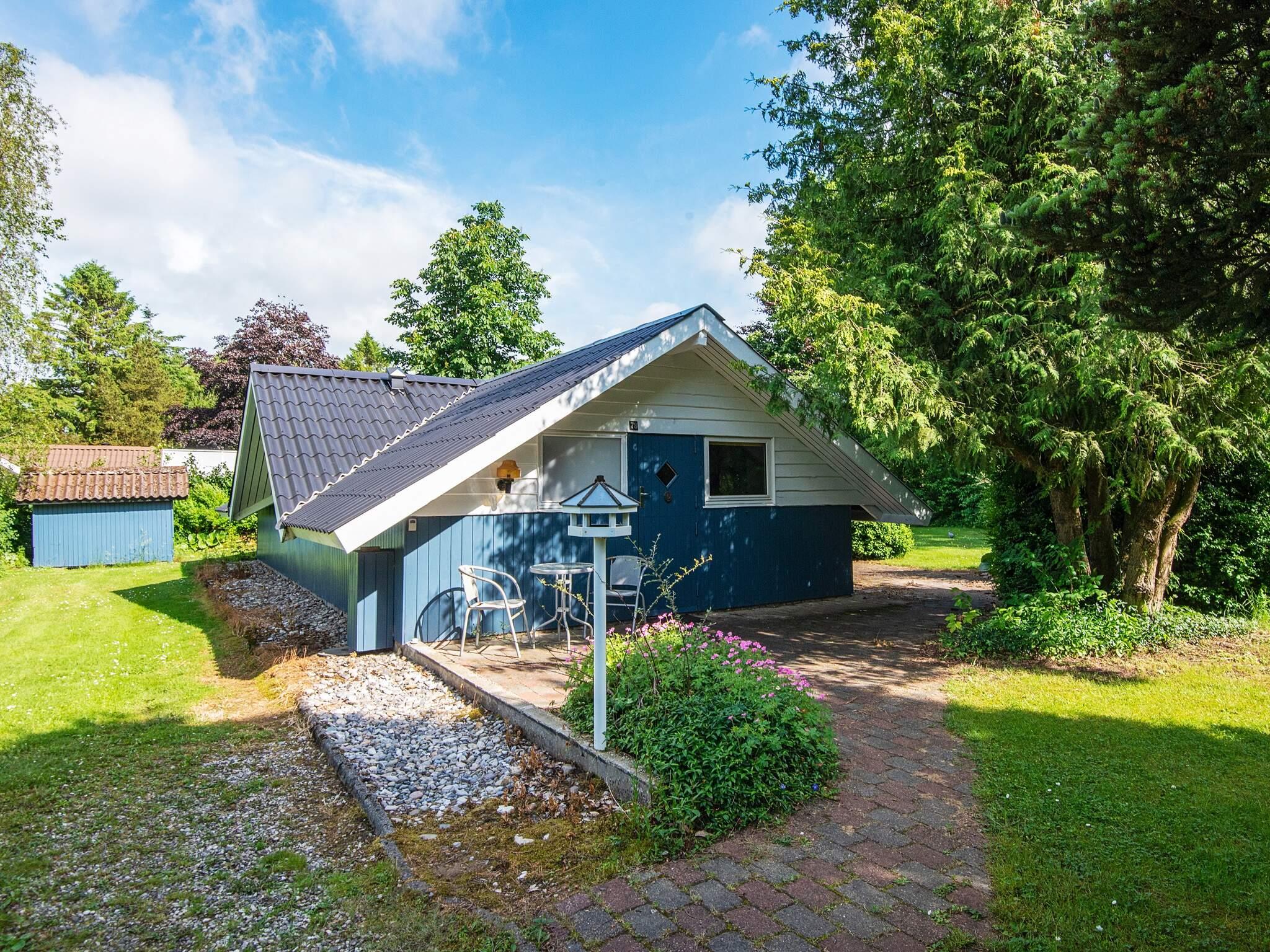 Sommerhus beliggende på en stor og ugeneret grund med anlagt have midt i sommerhusområdet ved Kvie Sø.