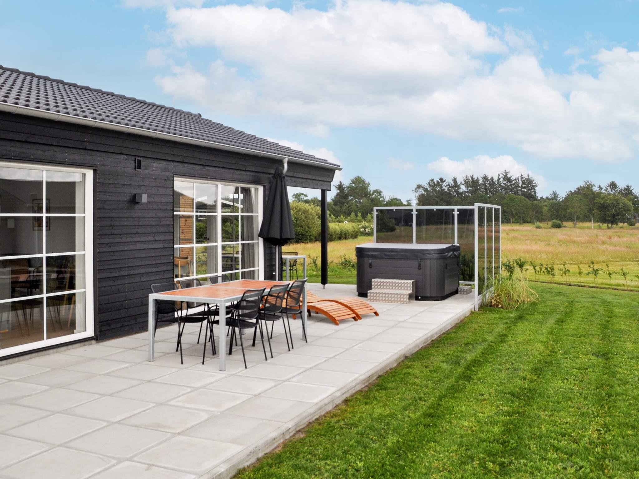 Ved Kvie Sø finder I dette aktivitetshus sommerhus med udendørs spabad og god plads til 10 personer + 2 personer på hemsen. I huset er der lagt vægt på energirigtige løsninger med luft/luft varmepumper som også kan anvendes som aircondition. Køkkenet er indrettet med alle moderne hjælpemidler og i stuen giver det store vinduesparti en storslået naturudsigt. Der er højstol tilgængelig. Stort, lækkert udendørs spabad til 5 personer og indendørs spabad til hygge og afslapning i alt slags vejr samt udendørs bruser. Sommerhuset har alt til den perfekte sommerhusferie med aktiviteter både ude og inde. I aktivitetsrummet er der mulighed for at spille billard, bordtennis eller udfordre hinanden i et spil på spillekonsollen. Der er flisebelagt rundt om hele huse og i haven er der indrettet med stor trampolin, kraftigt gyngestativ til 3 personer, spille fodboldkamp mod et mål, spille stigegolf, ophold/sove i shelter som er lukket med skydedør, som foran er indrettet med udendørsbålplads og mulighed for at grille på stålriste. Nyd terrassen i de gode havemøbler og udendørskøkken med gasgrille. Det udendørskøkken kan anvendes som renseplads til fiskernes fangst. Fra huset er der kun ca. 300 m til Kvie Sø hvor I også finder ”pandekagehuset” og den skønne natur rundt om søen. Der er mulighed for opladning af el-bil. Udlejes ikke til ungdomsgrupper. Husdyr ikke tilladt, gælder for såvel i huset som på matriklen udenfor huset også selvom husdyret er i et køretøj. Gratis adgang til 6 idrætscentre og svømmehaller, som tilbyder badning/svømning, Bowling, Tennis, Badminton, Bordtennis og Minigolf. Mod ekstra betaling tilbydes Fitness og Padeltennis.