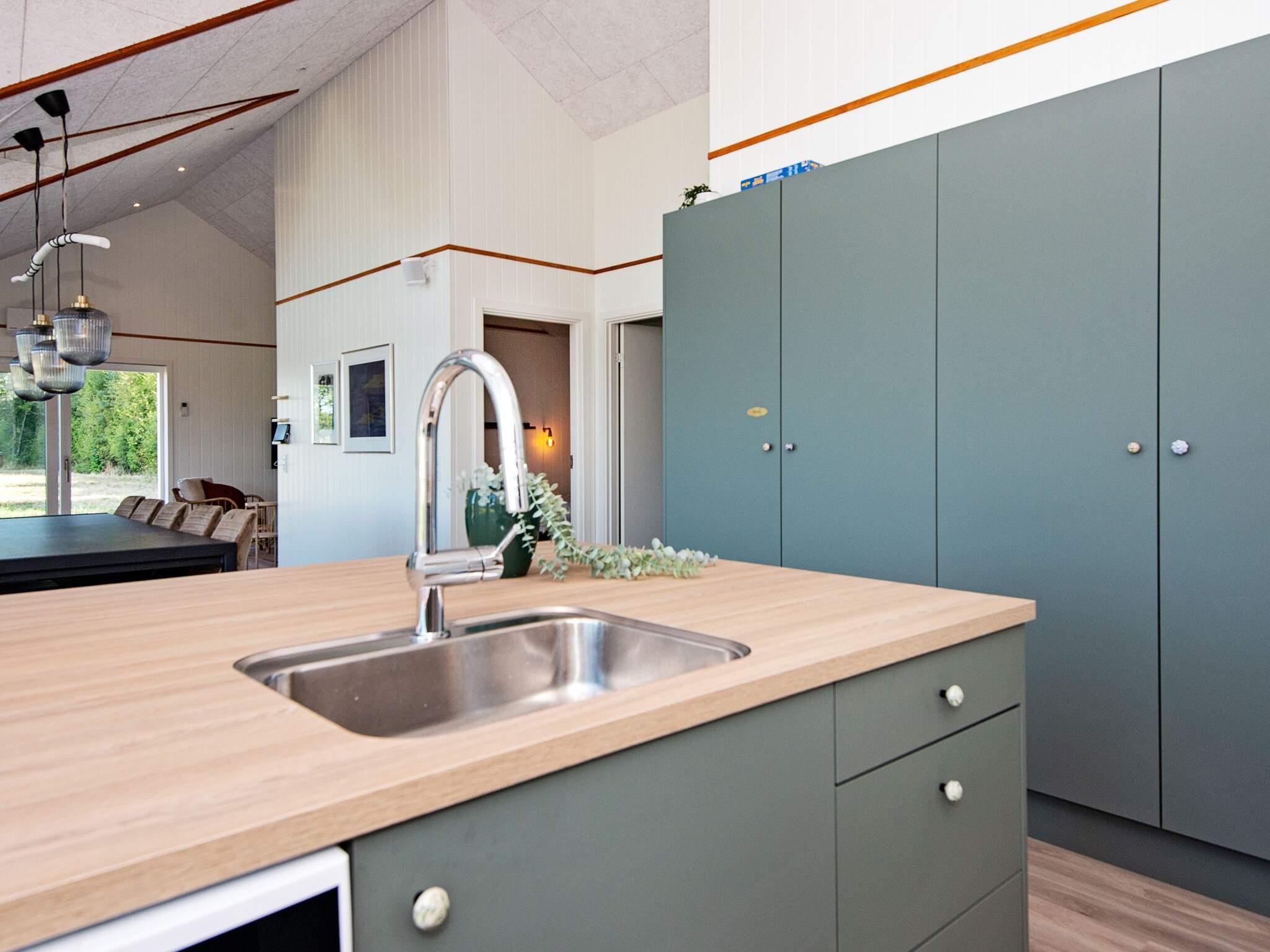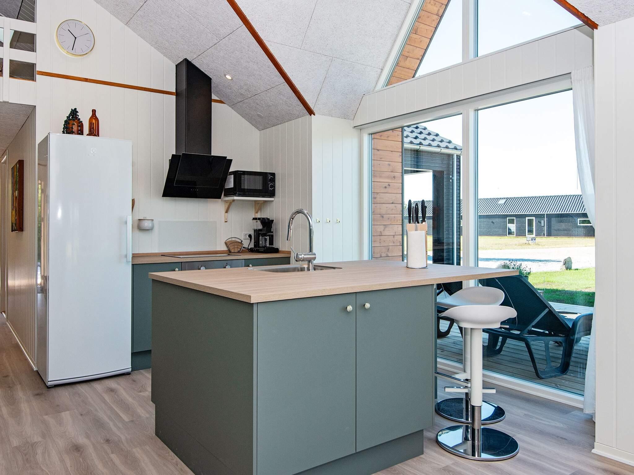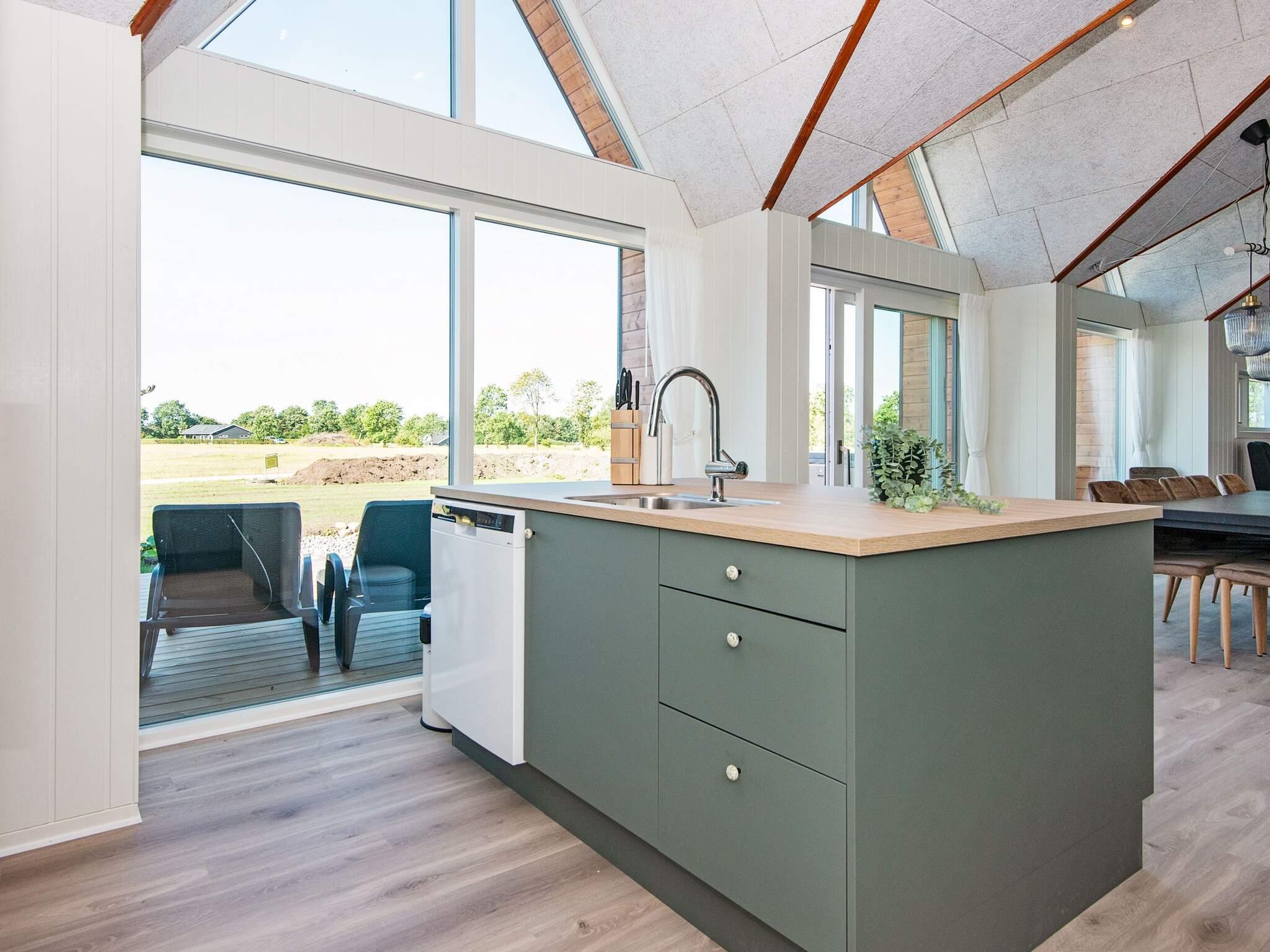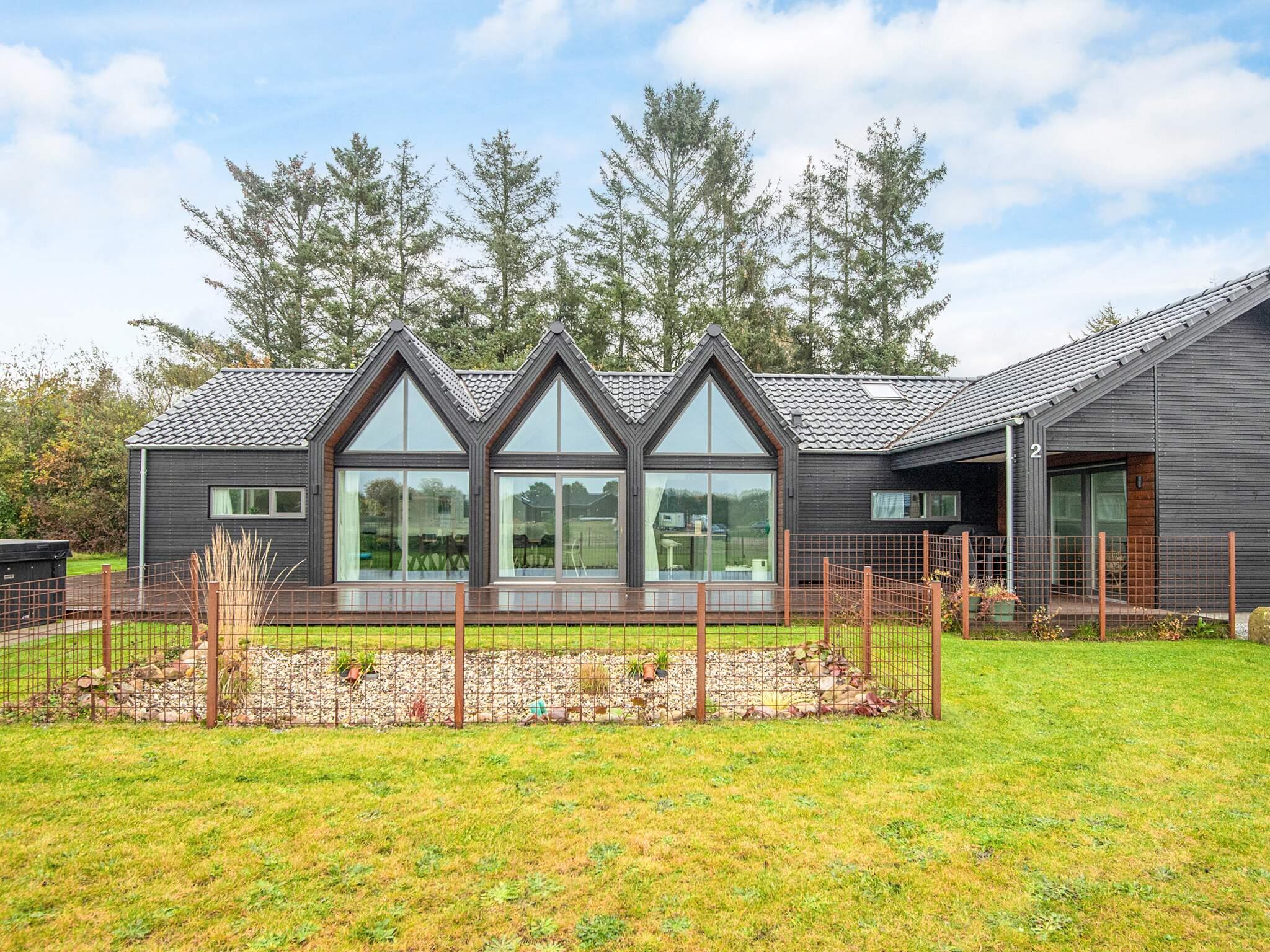 Ikke langt fra bredden af ??Kvie Sø finder I dette moderne feriehus bygget i 2022 i typisk skandinavisk stil, som kan rumme op til 12 personer. Til afslapning er der et udendørs spabad for op til seks personer. Feriehuset byder på de perfekte rammer for hyggeligt samvær, afslapning eller aktive ferier. Husets midtpunkt er absolut det store, lyse køkken med glasfacade mod vest. Stuen er hyggeligt indrettet med plads til alle. I det 25 m² store separate aktivitetsrum er der forskellige fritidsaktiviteter og spil at vælge imellem til sjov og leg med både store og små.