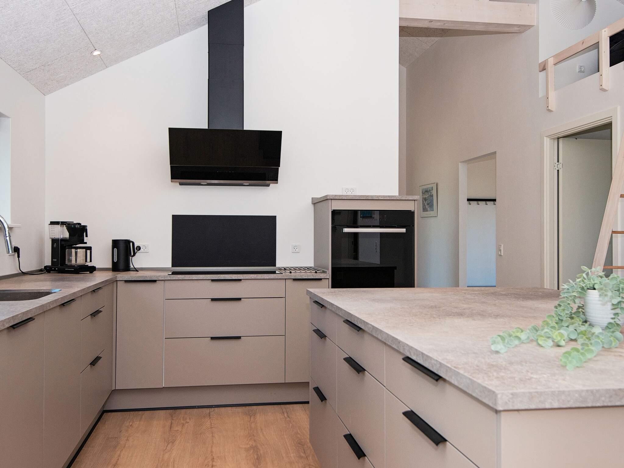 Køkkenafd.: Høj stol, el-komfur, køleskab m/frostboks, mikroovn, emhætte, kaffemaskine, opvaskemask.