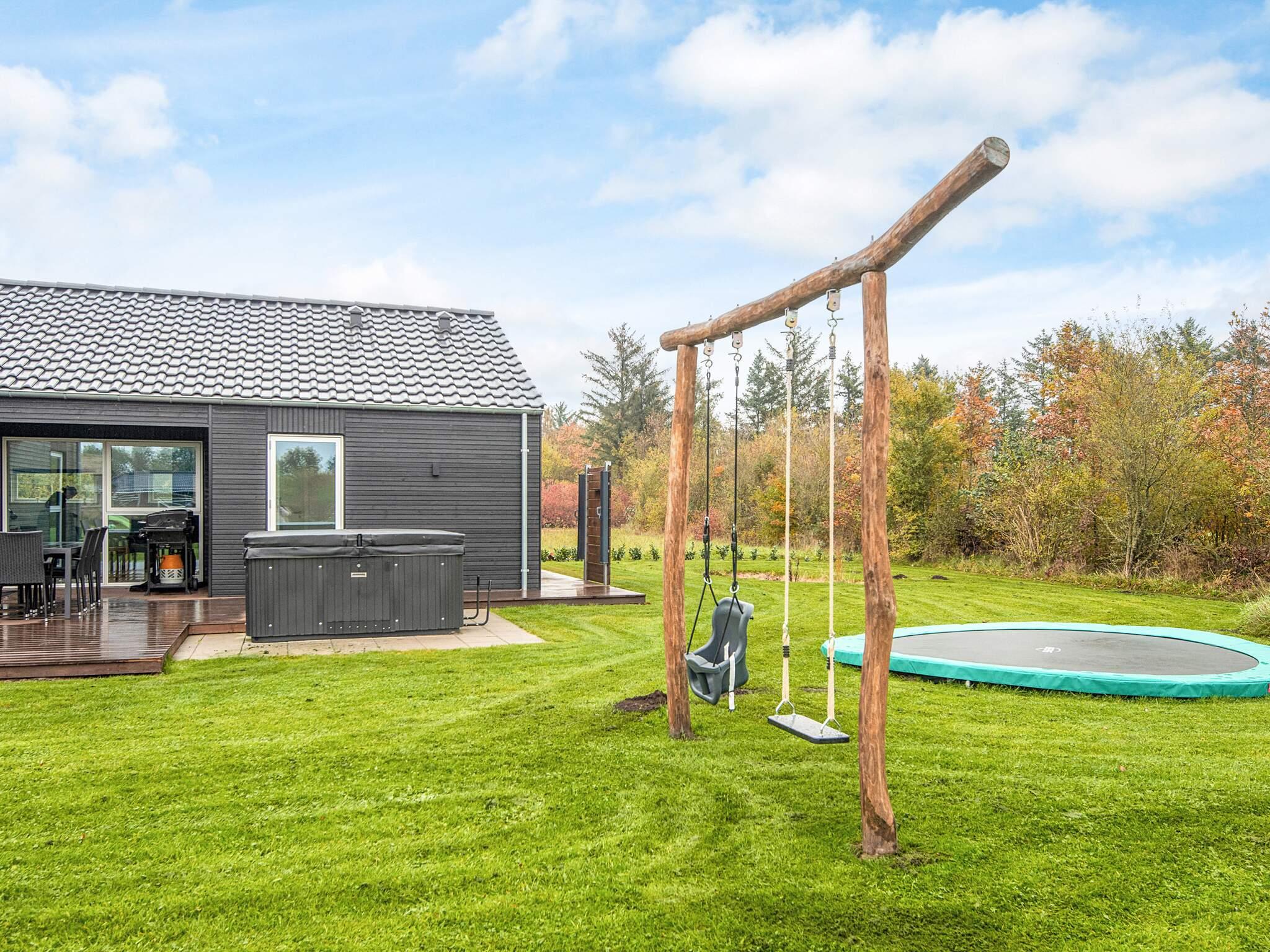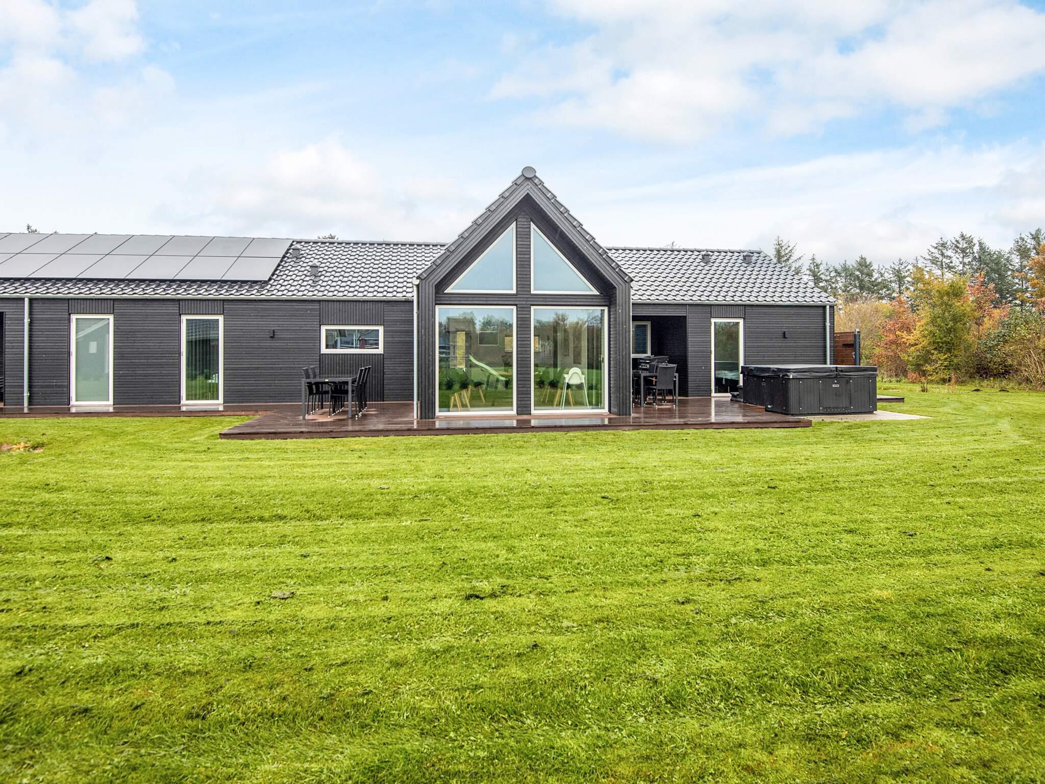 Ved Kvie Sø finder I dette arkitekttegnede sommerhus med udendørs spabad og god plads til 10 personer + 2 personer på hemsen. I huset er der lagt vægt på energirigtige løsninger med solceller og 2 stk. luft/luft varmepumper som også kan anvendes som aircondition. Der er barneseng i huset. Stort, lækkert udendørs spabad til 6 personer til hygge og afslapning i alt slags vejr samt udendørs bruser. Sommerhuset har alt til den perfekte sommerhusferie med aktiviteter både ude og inde. I aktivitetsrummet er der mulighed for at spille billard, bordtennis, bordfodbold eller udfordre hinanden i et spil på spillekonsollen(PS4). Der er træterrasse/gangbro rundt om hele huset og på græsplænen er der mulighed for at hoppe i trampolin og spille fodboldkamp mod et mål. Der er gratis adgang til Varde Svømmehal og til dels også bowling. Fra huset er der kun ca. 300 m til Kvie Sø hvor I også finder ”pandekagehuset” og den skønne natur rundt om søen. Huset er udstyret med solceller som betyder, at elforbruget som der skal afregnes for reduceres væsentligt. Der er mulighed for opladning af el-bil type CEE-kontakt IEC-60309: 5- polet med 16A . Udlejes ikke til ungdomsgrupper. Husdyr ikke tilladt. Gratis adgang til Svøm & Leg samt 1 times gratis bowling pr. dag i Sportium i Varde.
