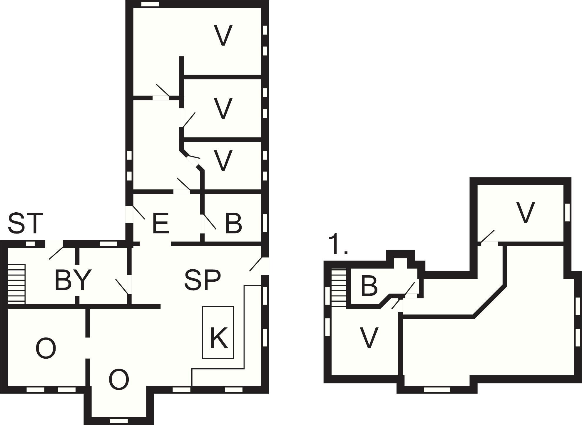 4 Soveværelser: (2DS)+(2S)+(2S)+(1DS)