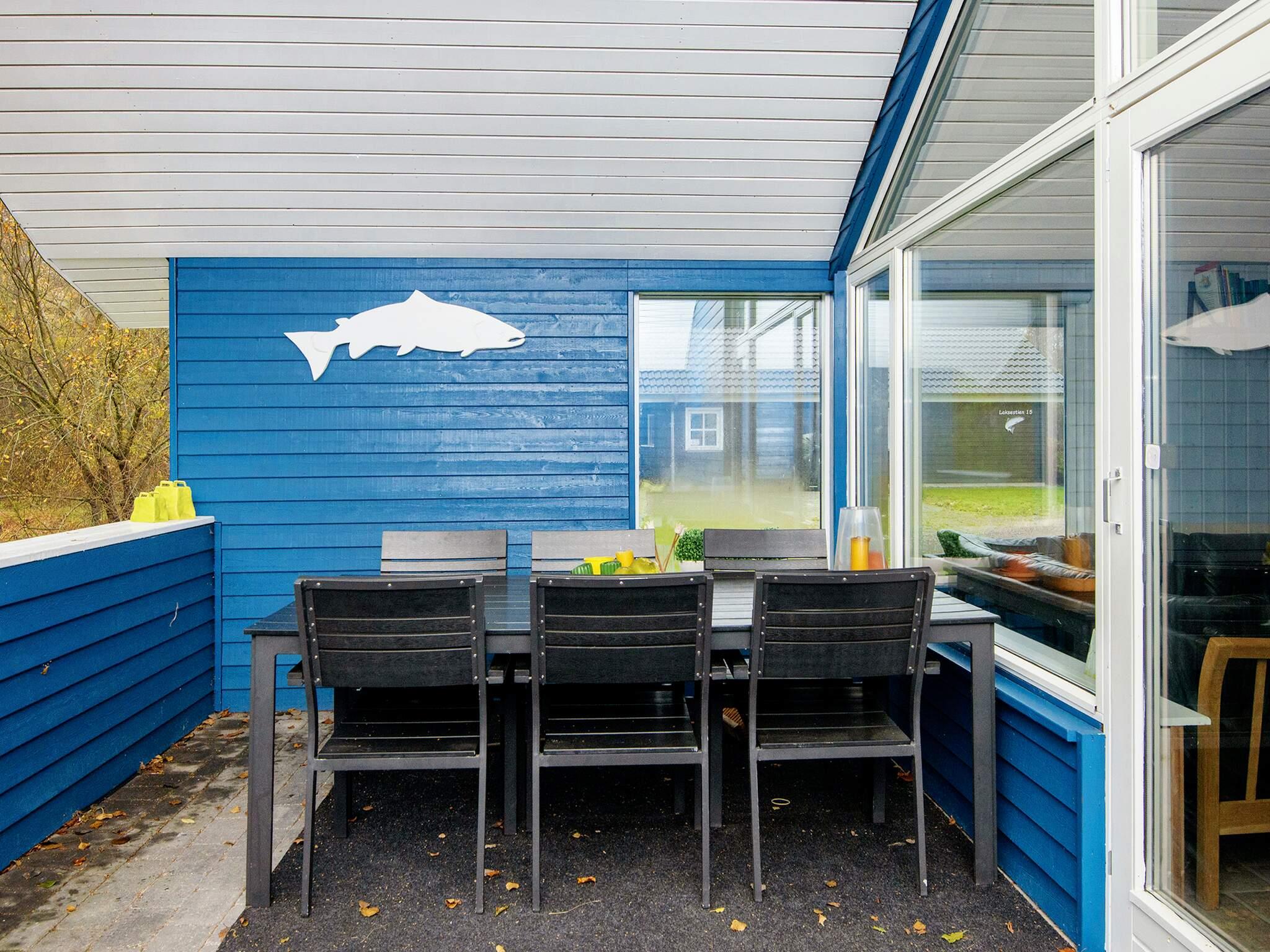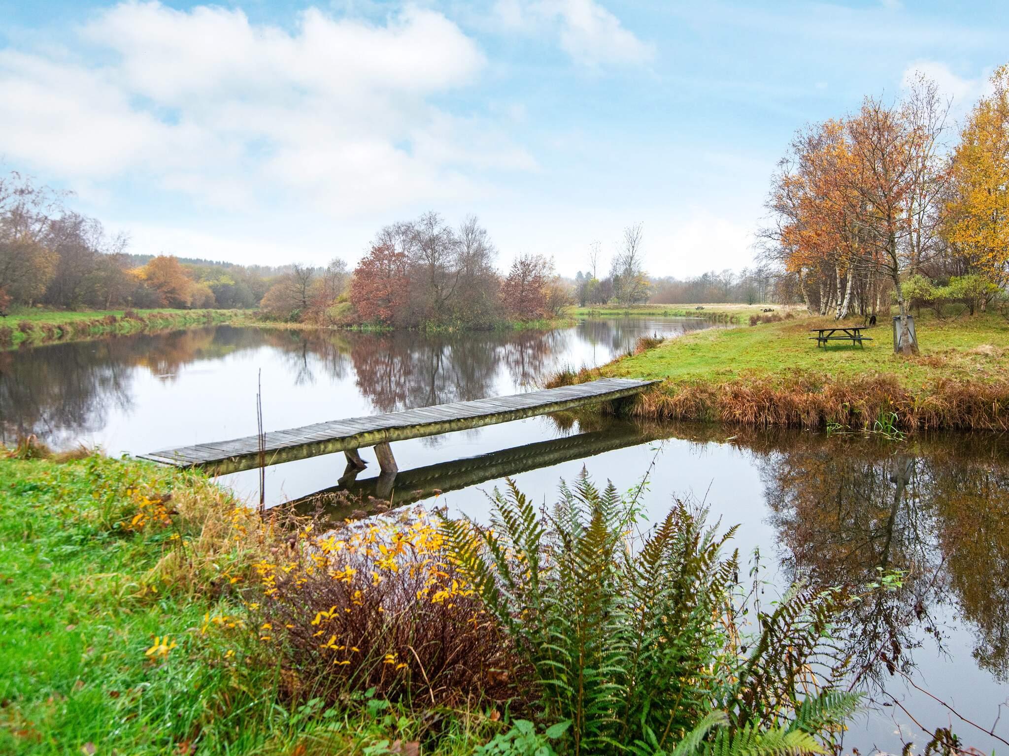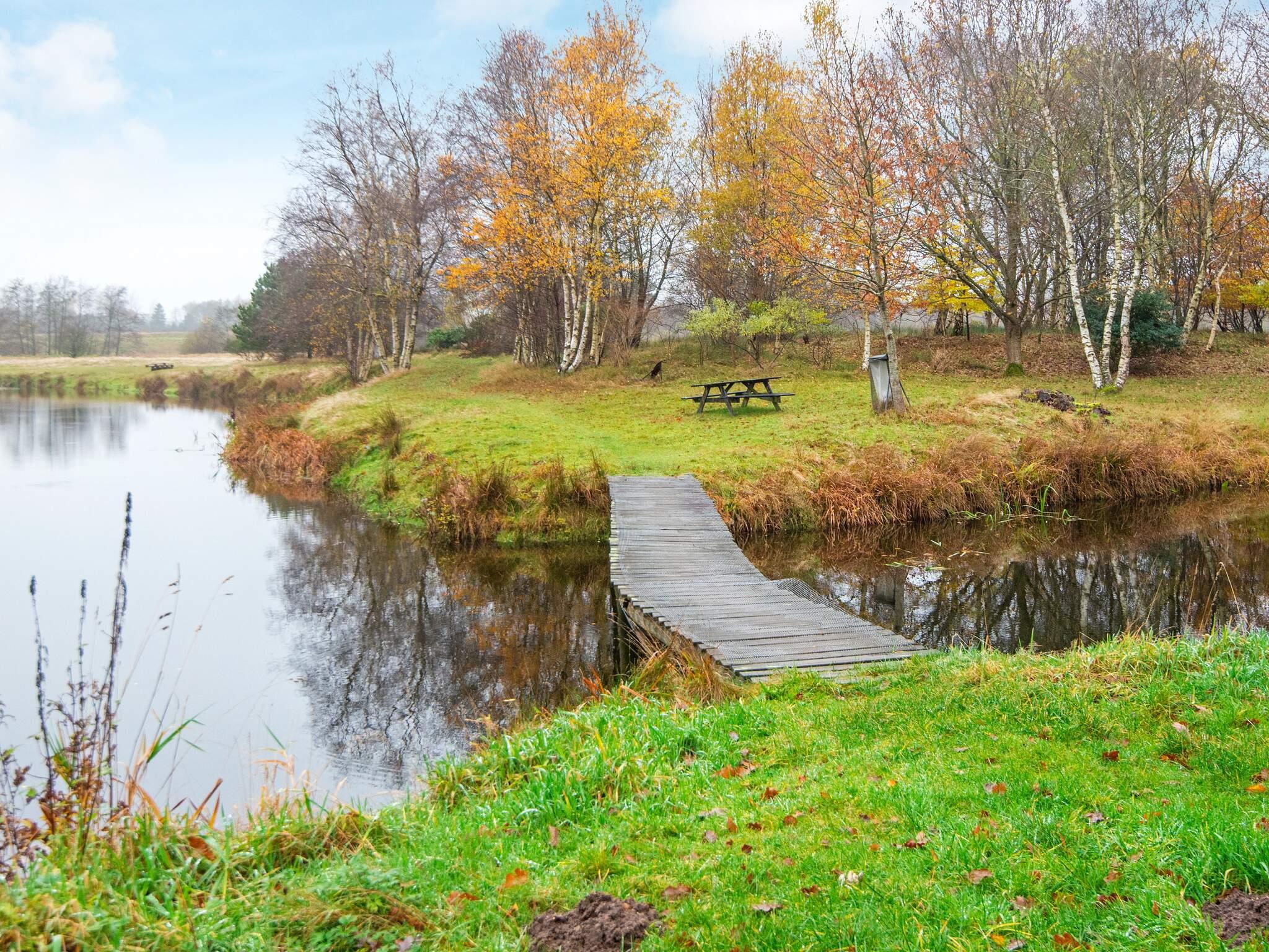 Udenfor ligger den overdækkede terrasse tæt på en søbred, hvilket giver et fredeligt sted for udendørs nydelse. Gæsterne har desuden adgang til fire fiskekort til cirka 750 meter af Skjern Å-bredden, gældende fra 16. april til 15. oktober. Mod betaling er der også mulighed for at fiske i en nærliggende dam kun 75 meter fra huset.
