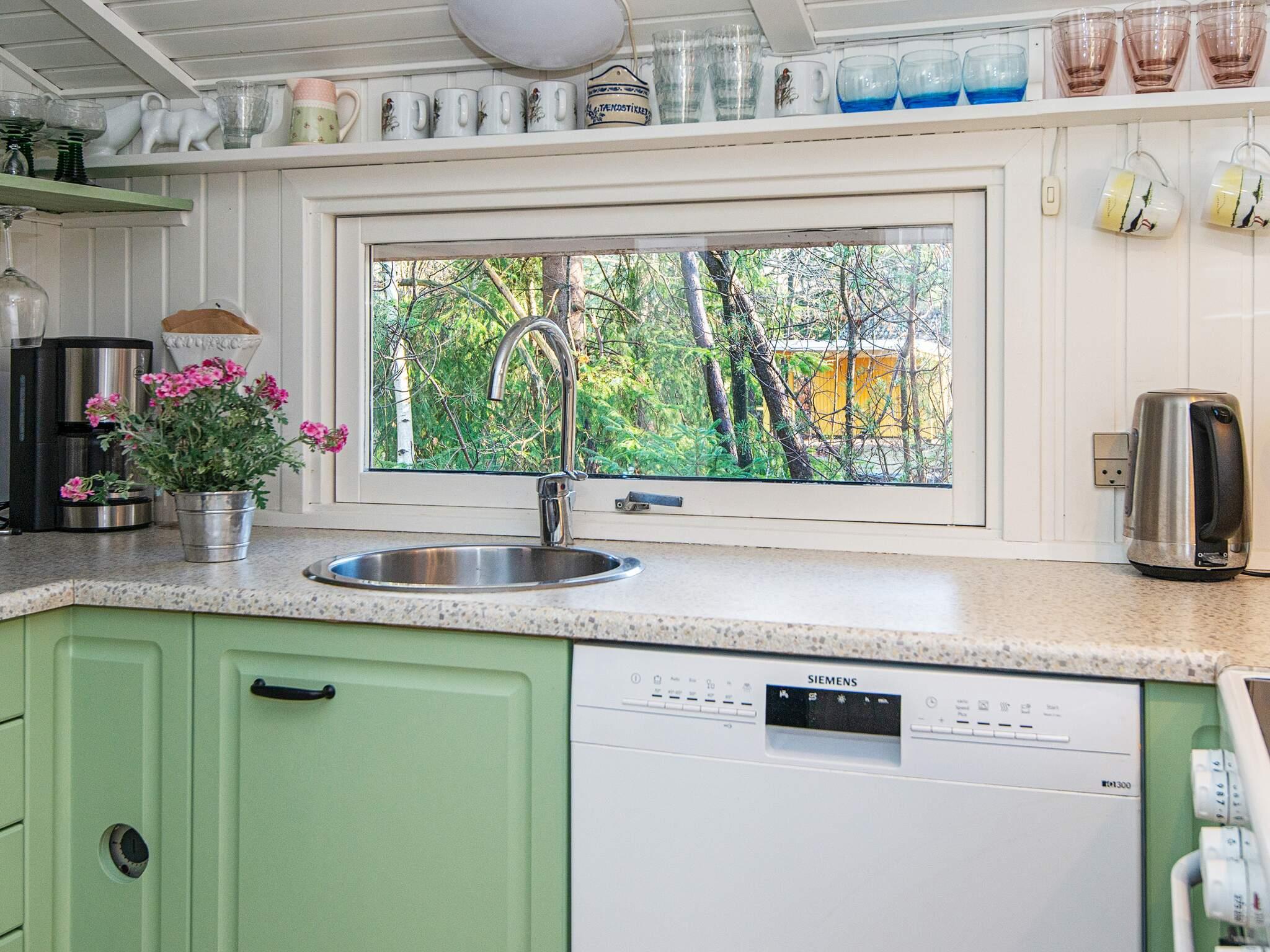 Beliggende for enden af lukket vej finder I dette veludstyrede sommerhus kun ca. 75 meter fra Kvie Sø med sandstrand. Sommerhuset er udstyret med energivenlig varmepumpe, brændeovn, vaskemaskine, tørretumbler, gratis trådløst internet og tv med danske og tyske kanaler. Huset er indrettet med opholds- og spisestue i åben forbindelse med køkkenet. Foruden badeværelset er der to soveværelser, hvoraf det ene er udstyret med en dobbeltseng, mens det andet er udstyret med en enkeltseng og en køjeseng. Fra stuen er der udgang til sommerhusets delvist overdækkede terrasse. I forbindelse med terrassen finder I en indhegning for mindre hunde, så de har mulighed for selv at rende lidt rundt på sommerhusets grundstykke. Udlejes ikke til ungdomsgrupper.