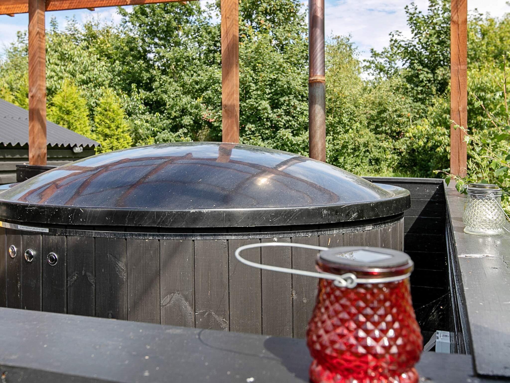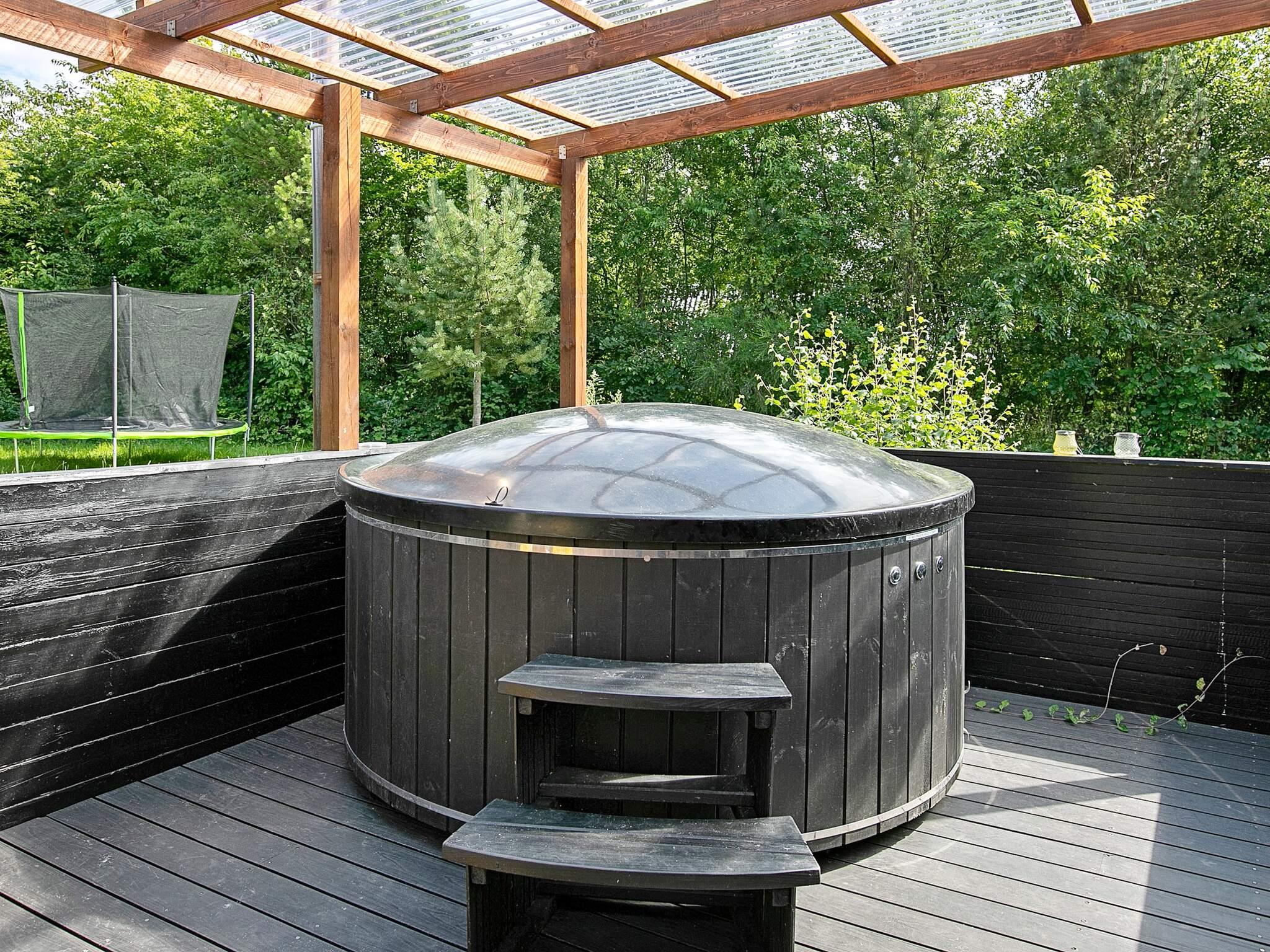 Sommerhus, funktionelt indrettet, beliggende på lukket naturgrund. I stuen er der tv, brændeovn og et energivenligt klimaanlæg, som sikrer en behagelig temperatur på alle årstider. Der er anneks med plads til et par overnattende gæster. Fra stuen er der direkte adgang til terrassen, hvor der er en gasvarmer (medbring selv gas)hvor naturen kan nydes i havemøblerne. Til opvarmning af ude spa skal der enten medbringes træ eller i kan købe det i nærområdet. Det skønne område ved Kvie Sø med sandstrand er kendt for roen og den uspolerede natur. Der er flere naturstier i området og det kan varmt anbefales at medbringe cykler. Fra den lille hyggelige, lokale restaurant, der ligger helt ned til søen, kan I nyde udsigten over søen. Der må ikke fiskes i selve Kvie Sø, men i de nærliggende søer og åer er der meget fine fiskemuligheder. Ansager by samt flere seværdigheder og attraktioner ligger meget tæt på området, bl.a. Legoland og Givskud Zoo. kæledyr er tilladt