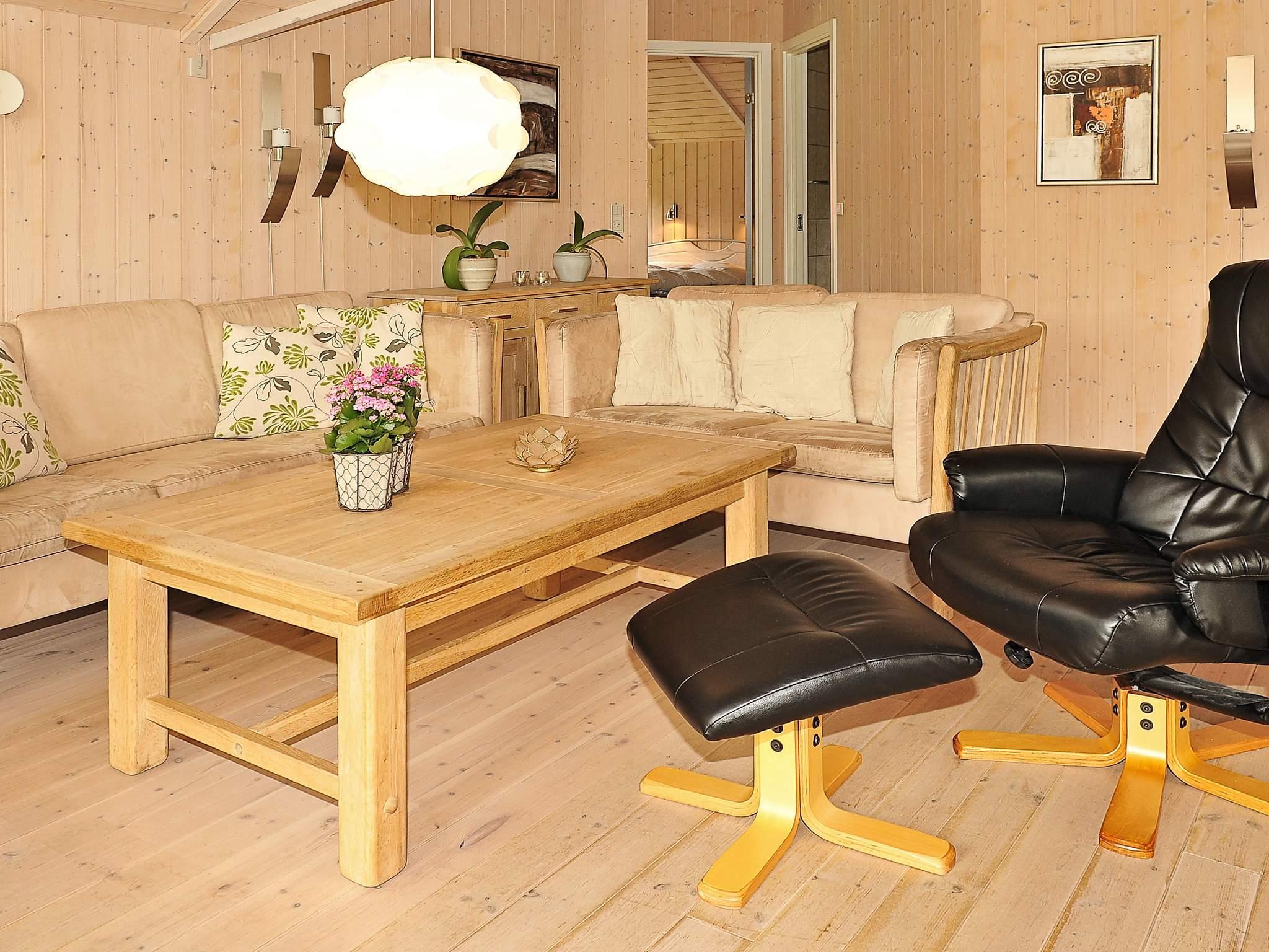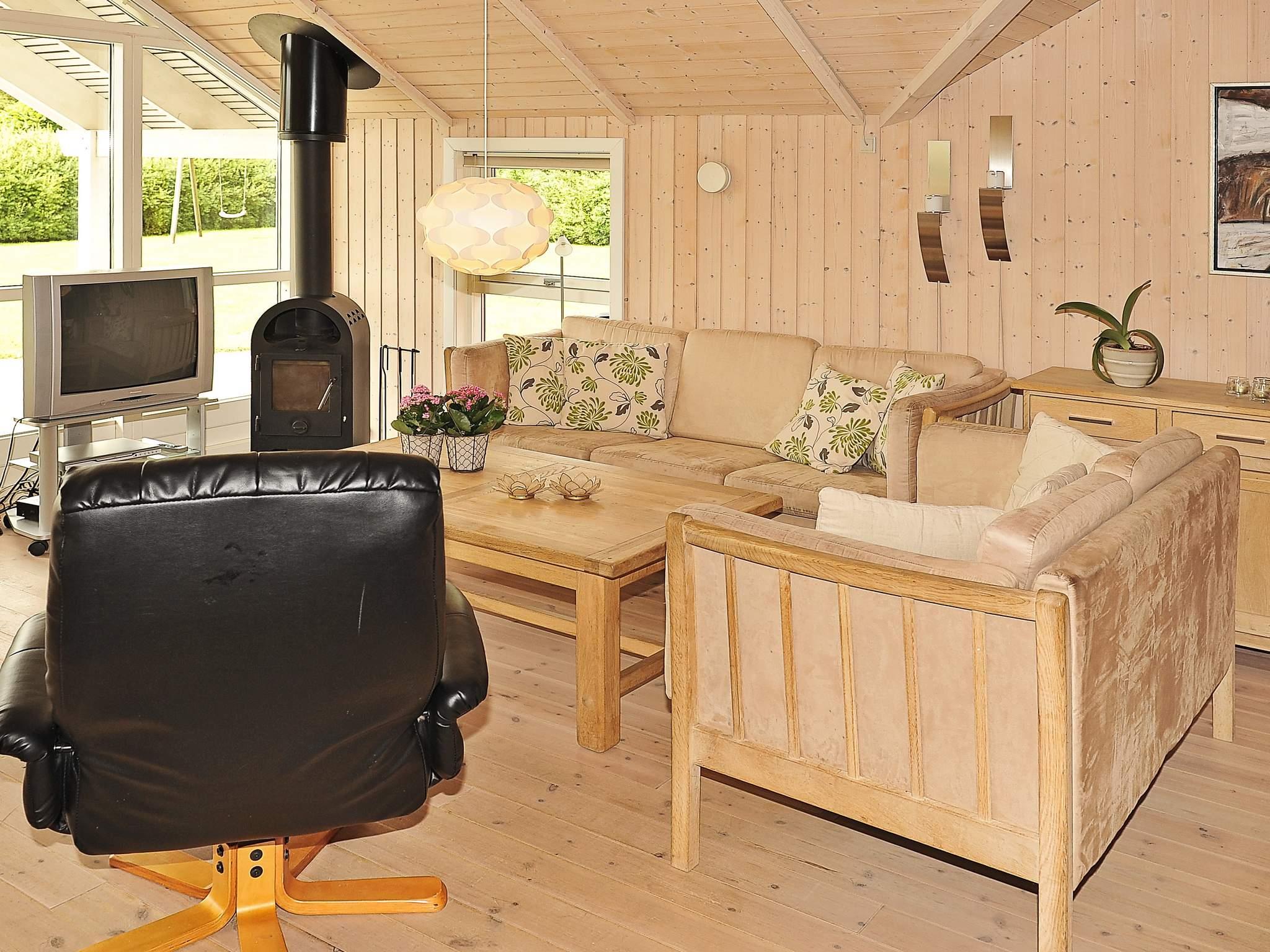Velholdt og veludstyret sommerhus på læfyldt grund. Huset er indrettet med entre, badeværelse med spabad og sauna og et ekstra toilet. Der er 3 soverum. Huset er indrettet med et stort køkken, som ligger i åben forbindelse med spisepladsen og opholdsstuen, hvor I også finder brændeovnen til de kølige aftener. Fra opholdstuen er der direkte udgang til den delvist overdækkede terrasse, hvorfra I bl.a. kan nyde børnenes leg i sandkassen, gyngerne eller den tilhørende trampolin (benyttes på eget ansvar/forsikring).