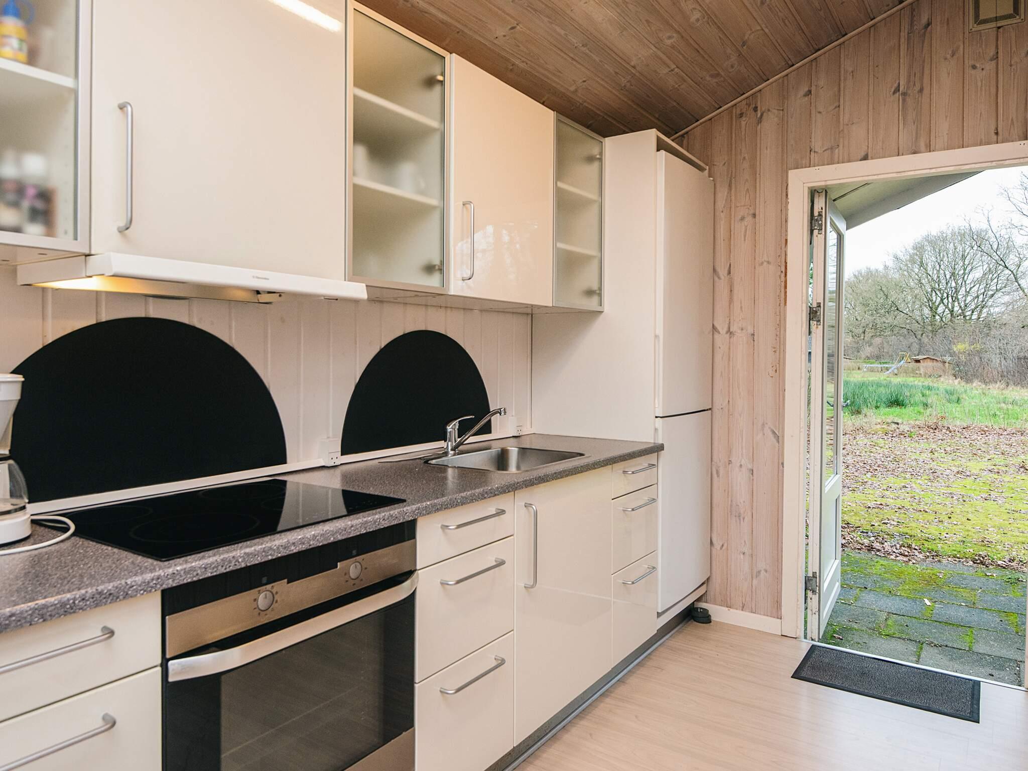 Velholdt sommerhus beliggende ca. 200 m fra Kvie Sø. Sommerhuset er udstyret med en fiskerenseplads, legetårn med rutsjebane (benyttes på eget ansvar) og et anneks med eget wc og en dobbeltseng. Huset er komfortabelt møbleret og indrettet med 2 soverum, hvoraf det ene er med en dobbeltseng og det andet med en køjeseng til 2 personer. Badeværelset er udstyret med vaskemaskine, tørretumbler. Køkkenet, som ligger i åben forbindelse med spisepladsen og stuen, har bl.a. opvaskemaskine. Fra stuen, som er udstyret med brændeovn og energibesparende varmepumpe, er der udgang til den store, overdækkede terrasse.