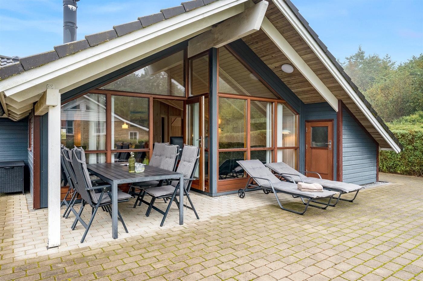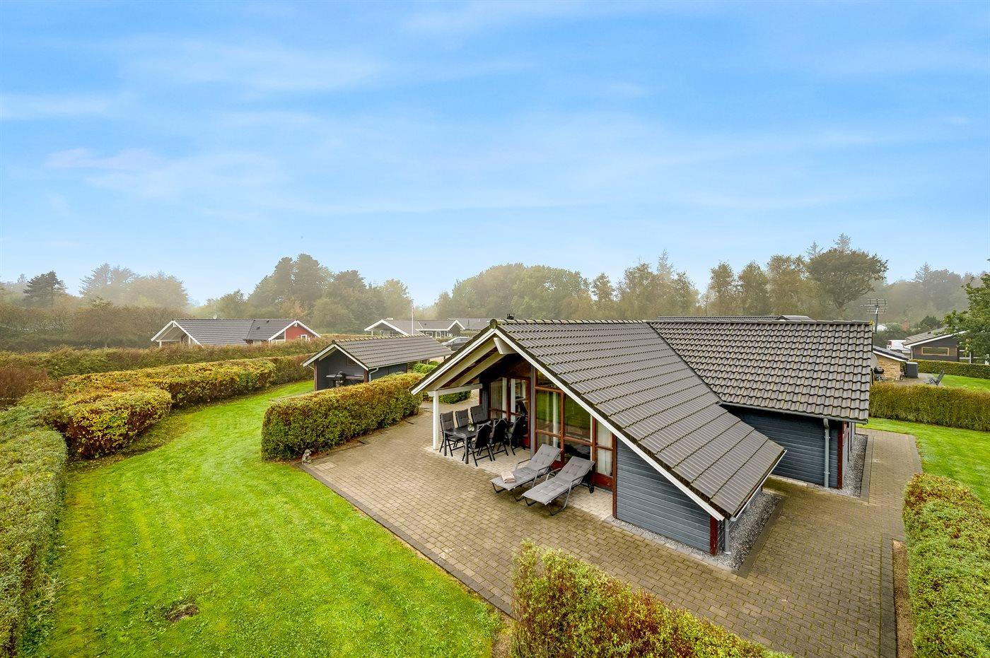 Ferieboligen er beliggende på en 980 m² stor naturgrund. Der er en sø i en afstand af 300 m. Nærmeste forretning er beliggende i en afstand af 3400 m. Til ferieboligen hører åbent terrasseareal. Desuden er der overdækket terrasse. Gynge. Legetårn. Grill til rådighed. Der er carport til rådighed. Parkering ved ferieboligen.