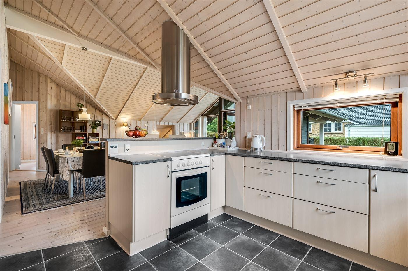 Køkkenet er udstyret med 1 køleskab. Der er 4 keramiske kogeplader, varmluftovn, mikrobølgeovn samt opvaskemaskine.