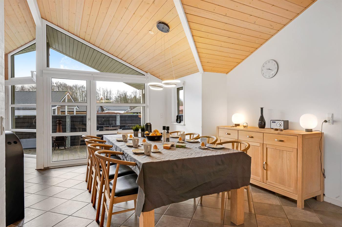 Sommerhuset egner sig til 6 personer. Ferieboligen er på 93 m² og er bygget i 2009. Det er ikke tilladt at medbringe husdyr. Ferieboligen er udstyret med energibesparende luft til luft varmepumpe. Der er gulvvarme i alle klinkegulve. Frysekapacitet på 35 liter. Til de små er der 1 stk. barnestol. Puslebord.