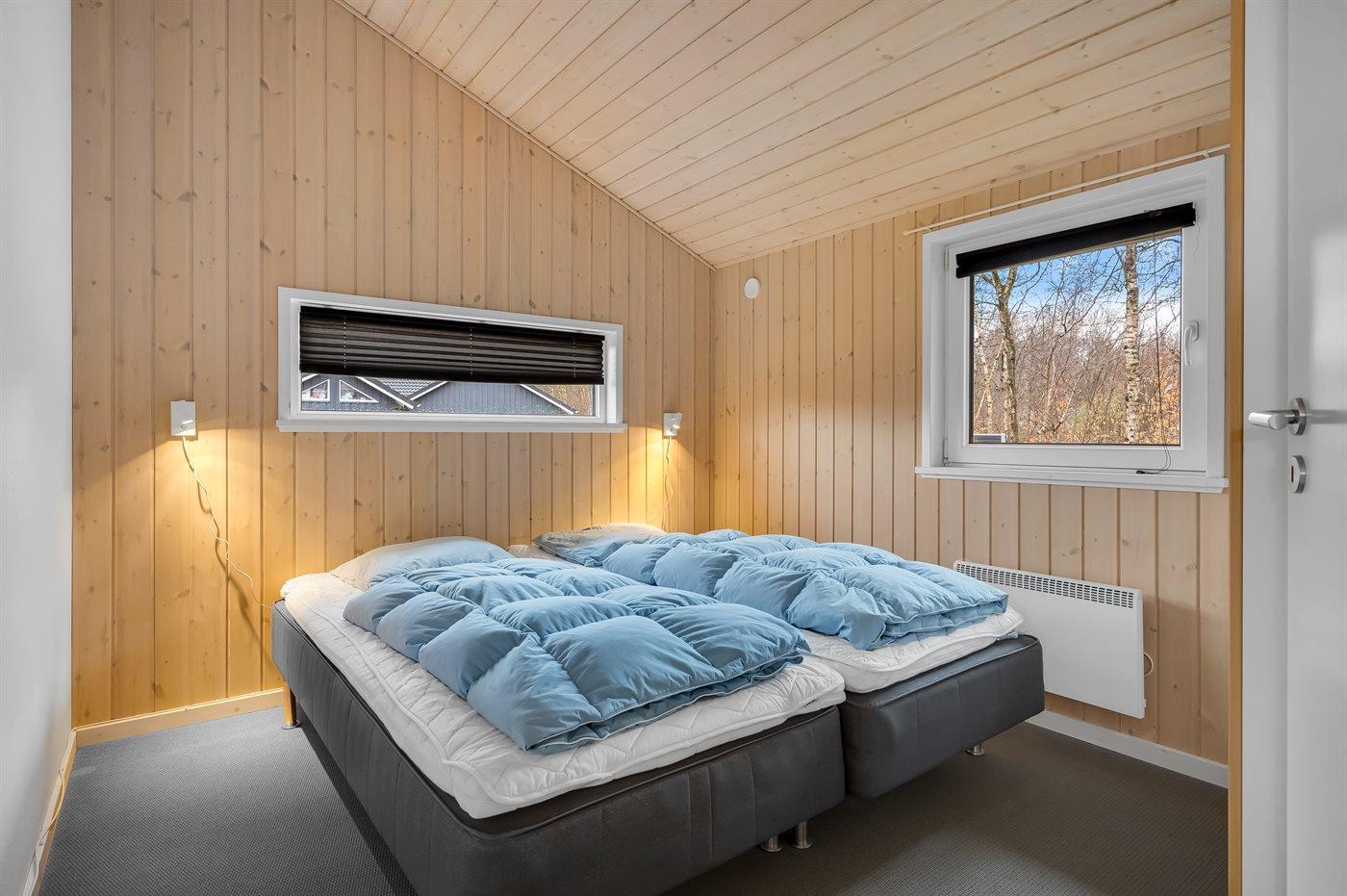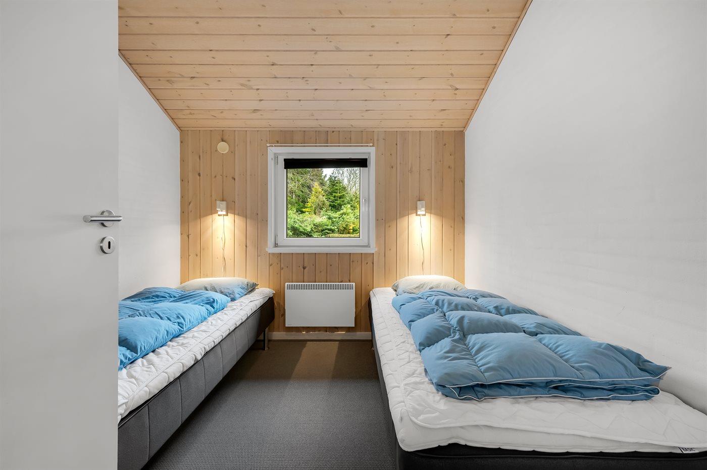 Der er i alt 3 soveværelser. Sovepladserne fordeler sig på: 4 sovepladser i dobbeltsenge. 2 sovepladser i enkeltsenge.
