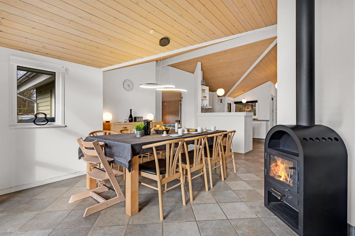 Dette sommerhus ligger fredeligt og ugeneret i det naturskønne område ved Kvie Sø. Huset er praktisk indrettet og byder på moderne komfort. Det er udstyret med en luft-til-vand-varmepumpe, og entréen har gulvvarme. Efter en dag i naturen kan I forkæle jer selv i husets store spabad.