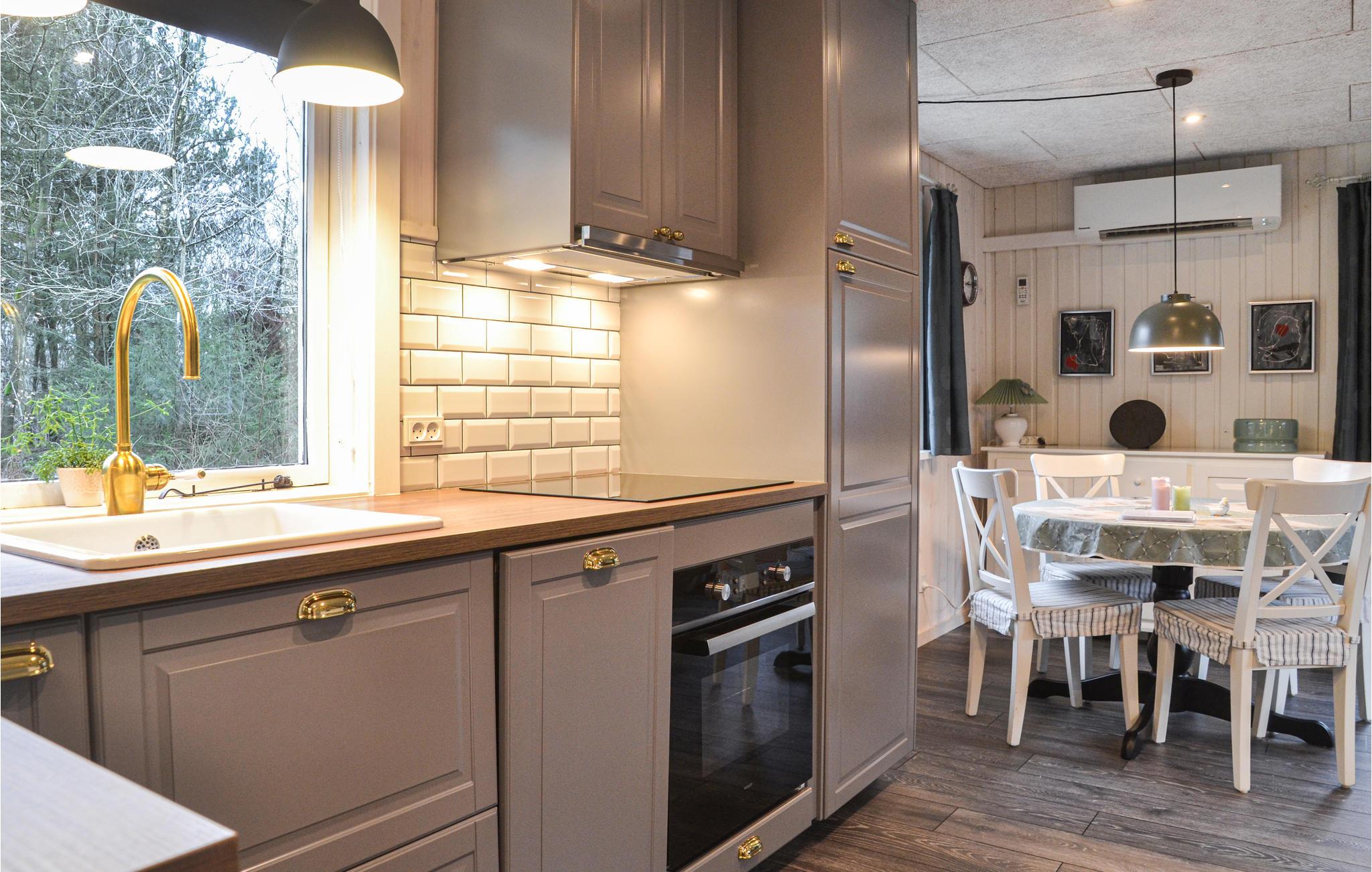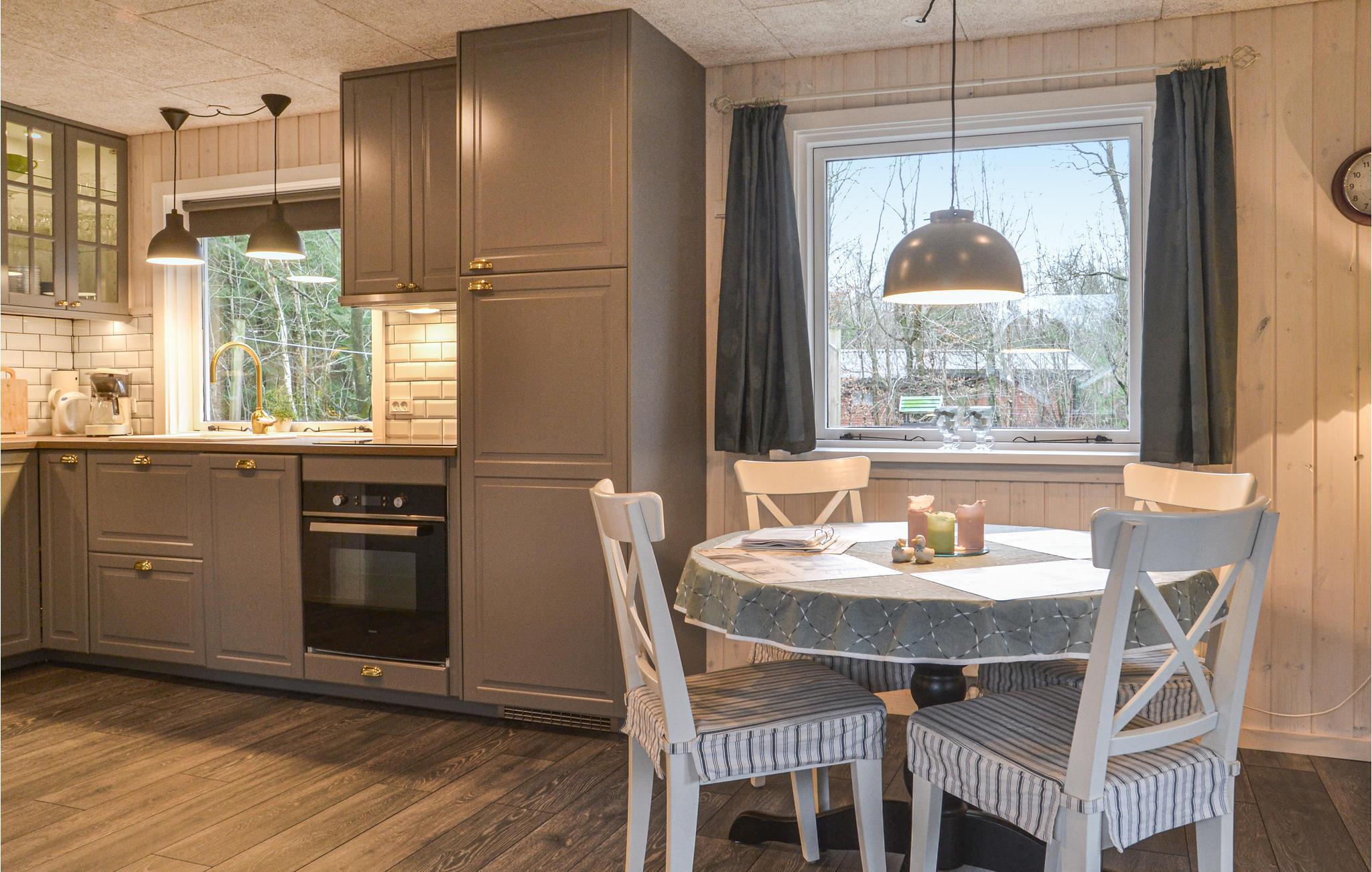 Der er mindre end 5 minutters gang til søen fra feriehuset. Feriehuset er godt indrettet med et godt og lyst indrettet køkken/alrum, hvorfra der er udgang til en delvis overdækket samt flere åbne terrasser. På grunden finder I både vildmarksbad, hvor I kan slappe af i det varme vand og et shelter, der egner sig godt til udendørs overnatning på de lune sommernætter. På ydersiden af huset finder I et stik til opladning af el-biler.