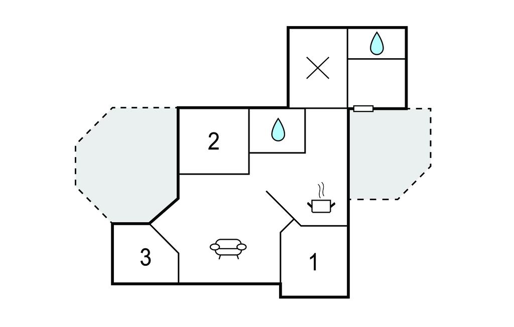 Glæd jer til en uforglemmelig ferie med venner og familie i dette smukke feriehus, som kan rumme seks personer i de tre soveværelser. Der er også et køkken-alrum, et badeværelse og et separat toilet.