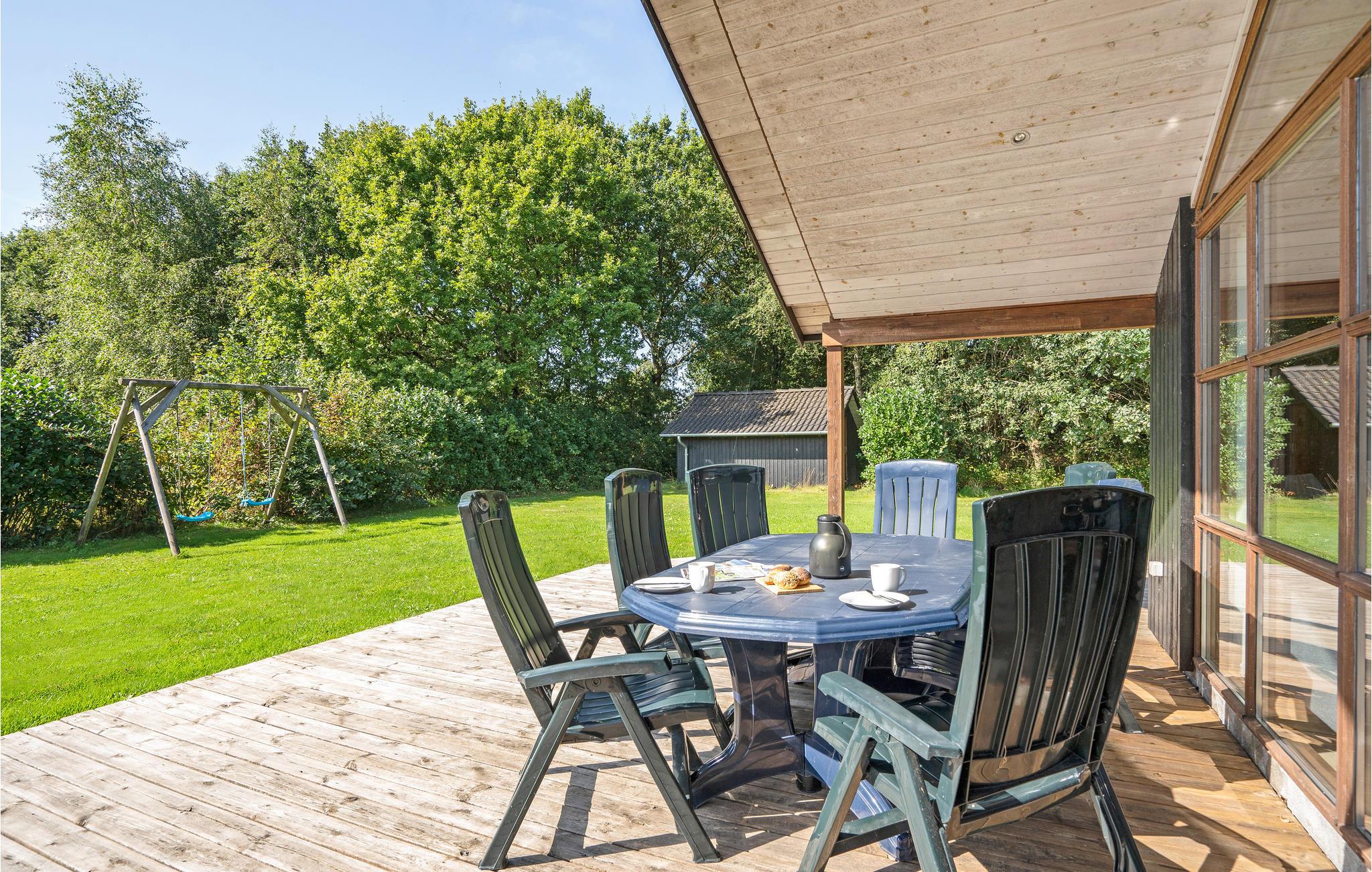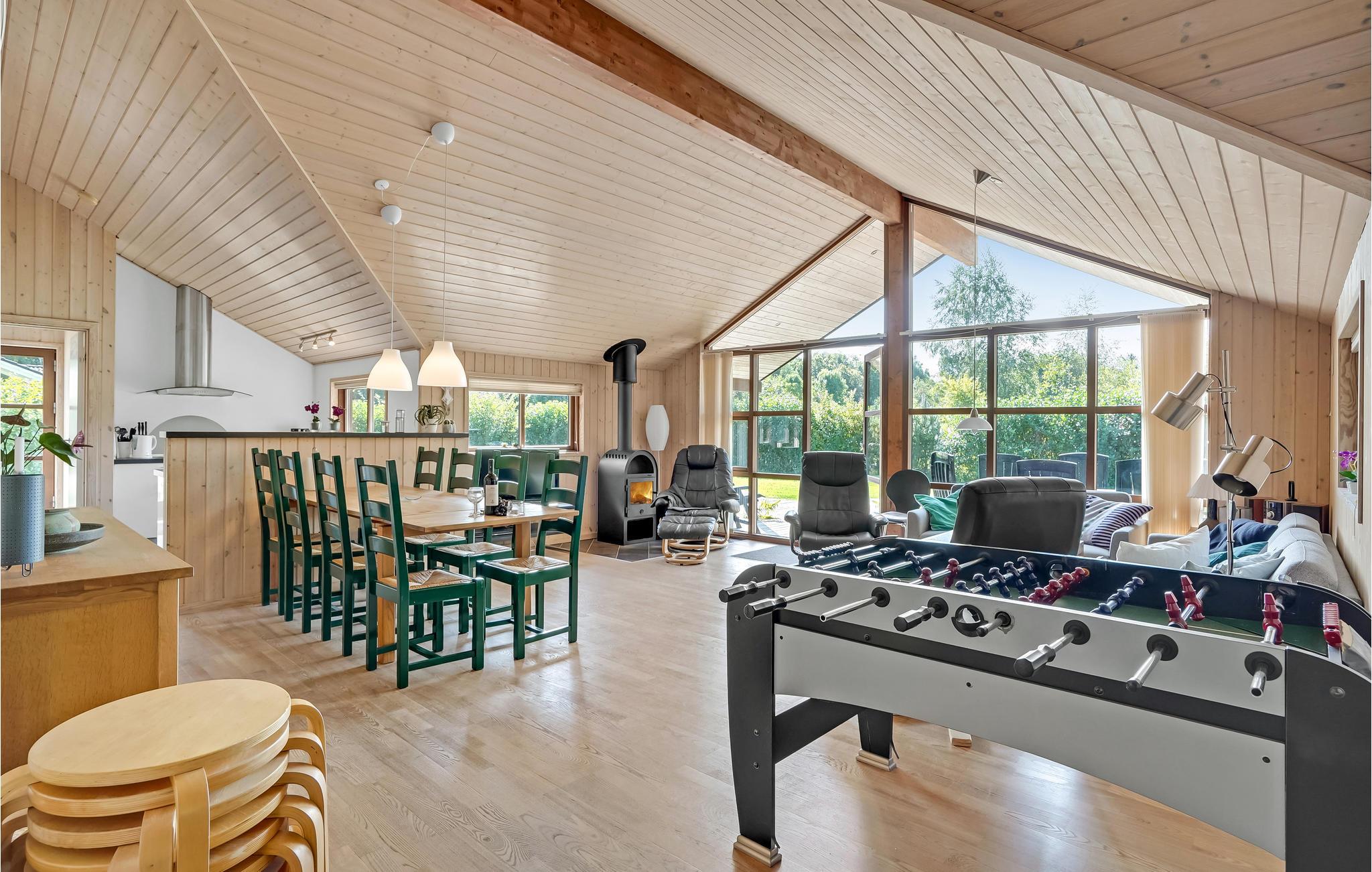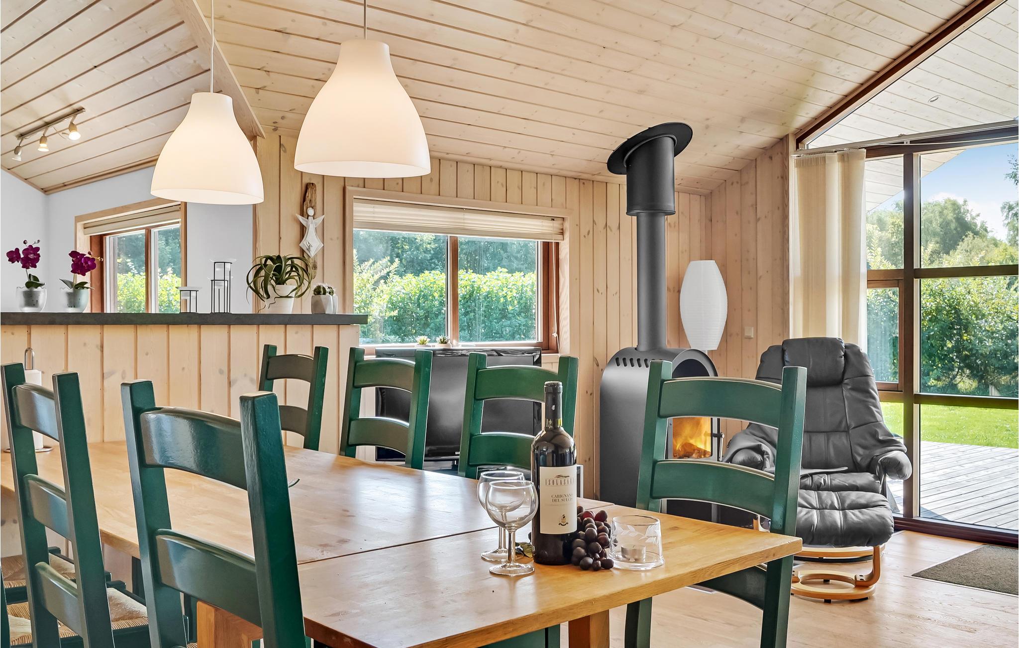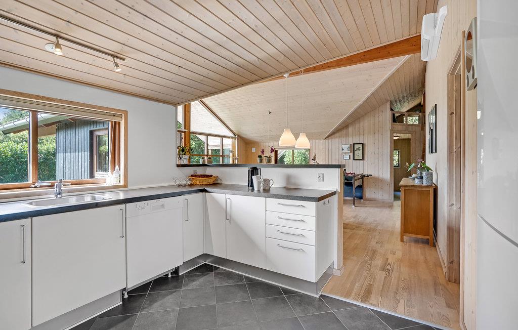 På en rigtig dejlig uforstyrret grund med randbeplantning ligger dette pragtfulde, store og veludstyrede hus. Her er god plads til to familier og i det rummelige køkken/alrum findes en hyggelig brændeovn samt et klimaanlæg. Huset er dejligt børnevenligt, både inden- og udendørs, med gynge og sandkasse. Fra huset er der ikke langt til et stisystem, hvor I kan komme en tur rundt om søen. Kvie Sø er et hyggeligt ferieområde, hvor alt er bygget op omkring søen og hvor en natursti fører op til Pandekagehuset, hvor I spiser rigtig godt. Der er gode fiskemuligheder i området, og hvis I får bid, kan I lave lækker aftensmad på grillen. Omkring Kvie Sø ligger bl.a. Legoland, Lalandia samt Løveparken Givskud Zoo.