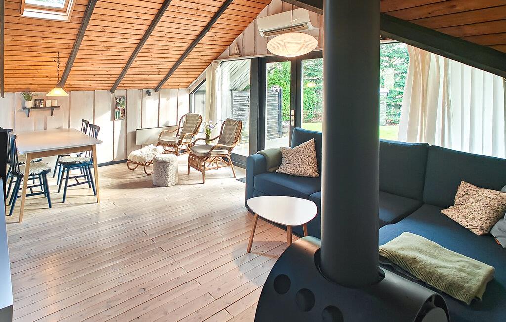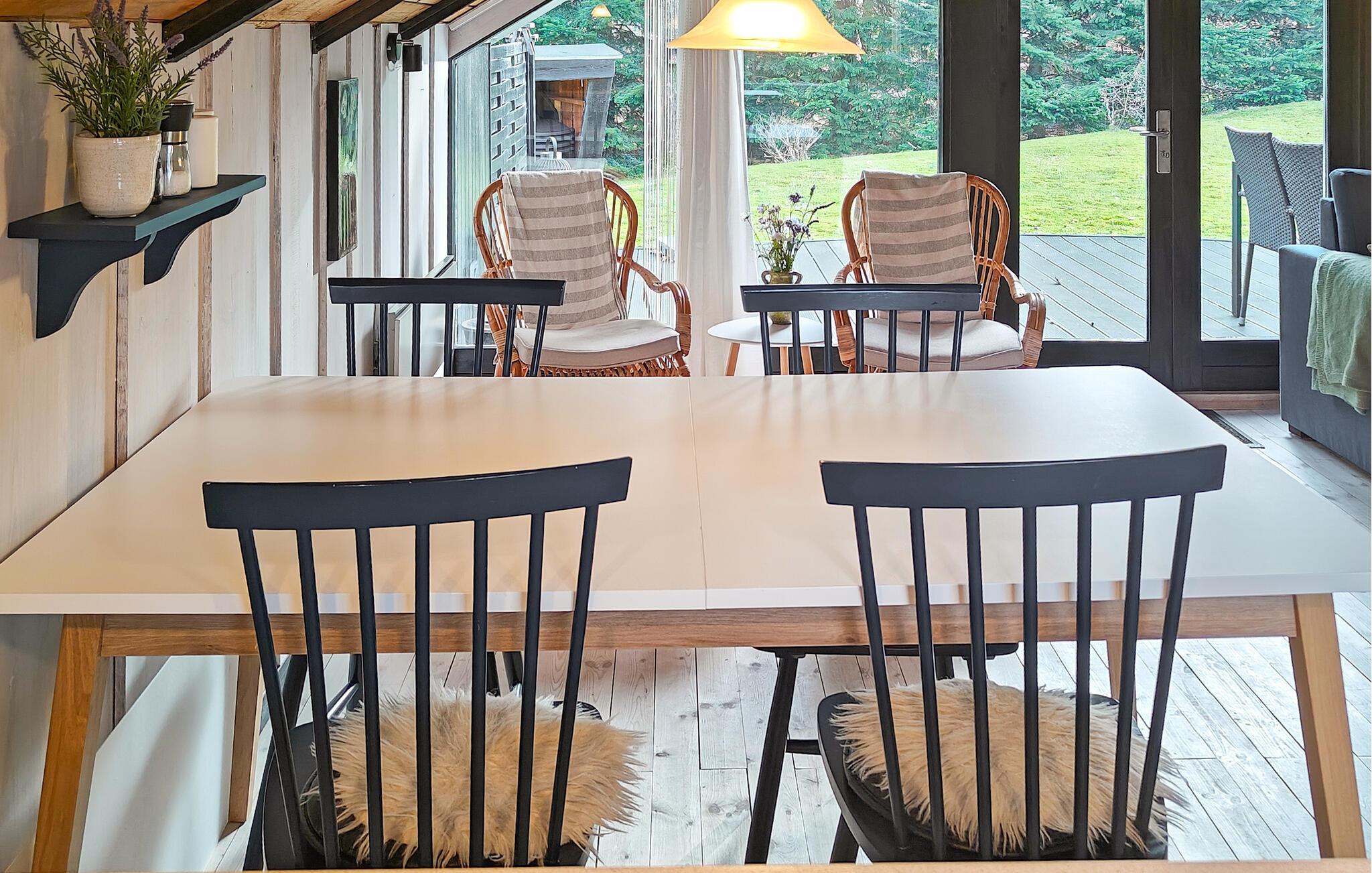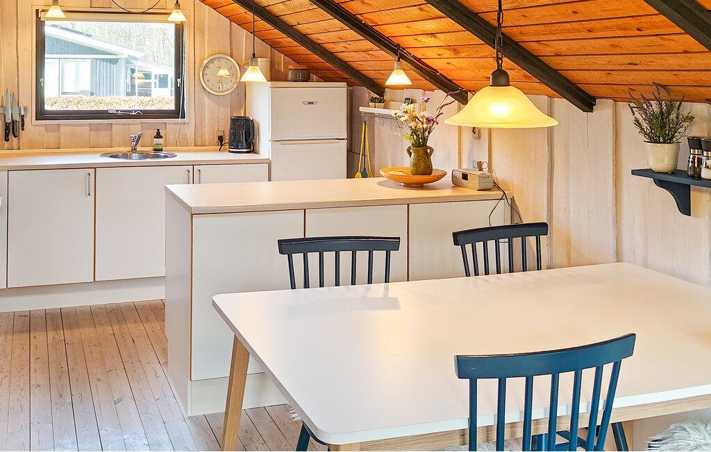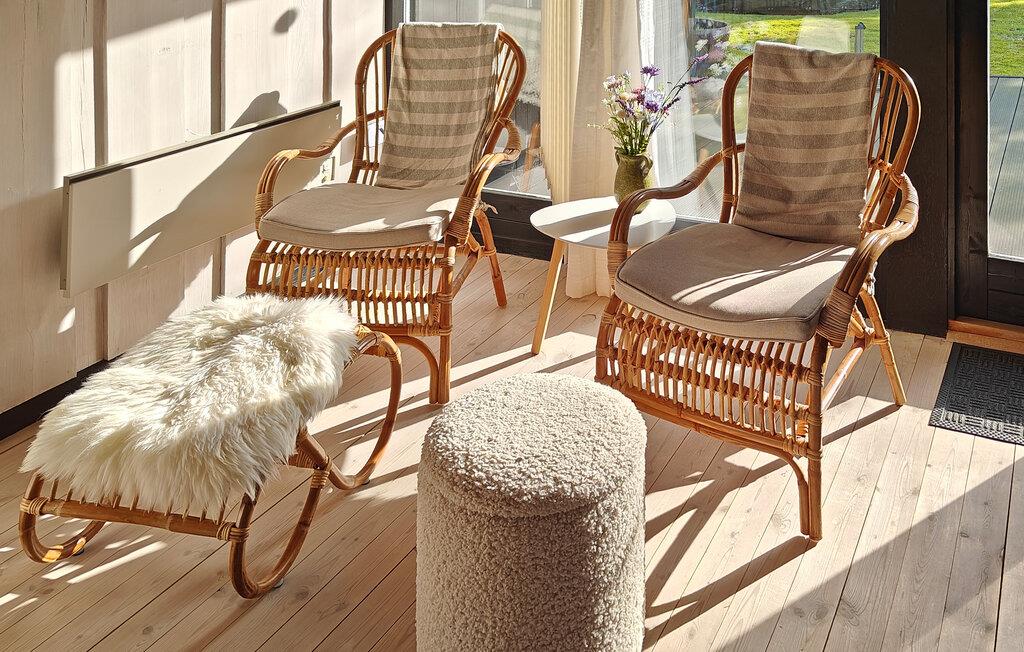 Dette hyggelige hus er perfekt til en afslappende pause fra hverdagen. En åben stue med smukke træpaneler lægger op til afslappende timer med at snakke, lytte til musik eller nyde en sjov eftermiddag med spil. I køkkenet kan I lave mad sammen og nyde jeres måltider med udsigt til husets grønne rammer.
