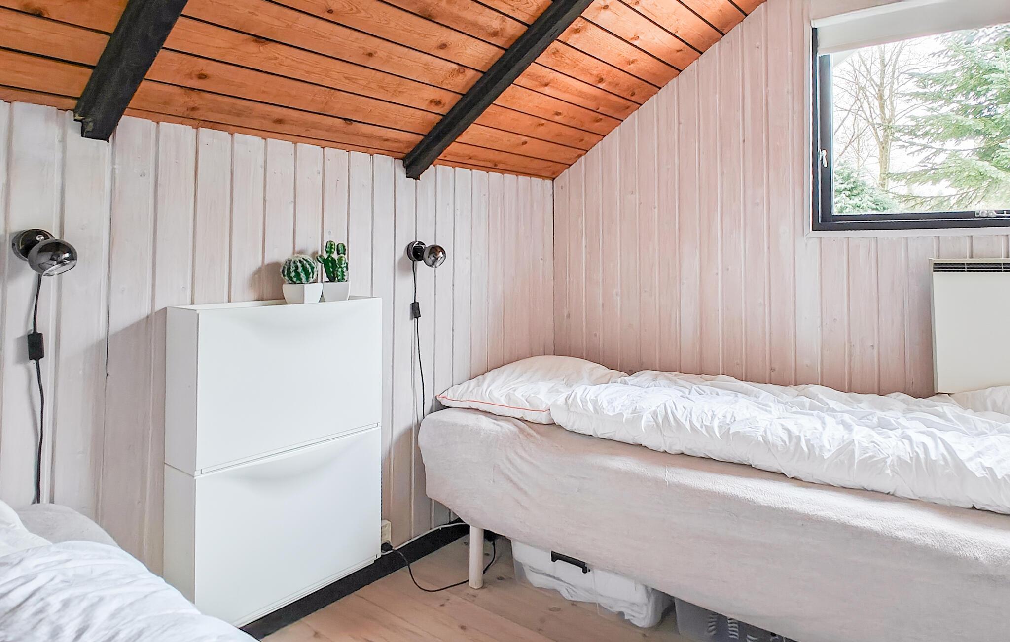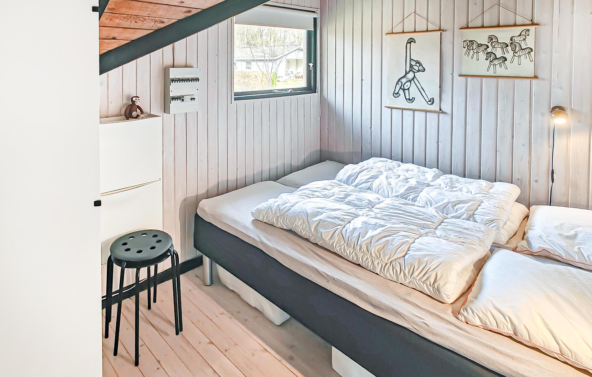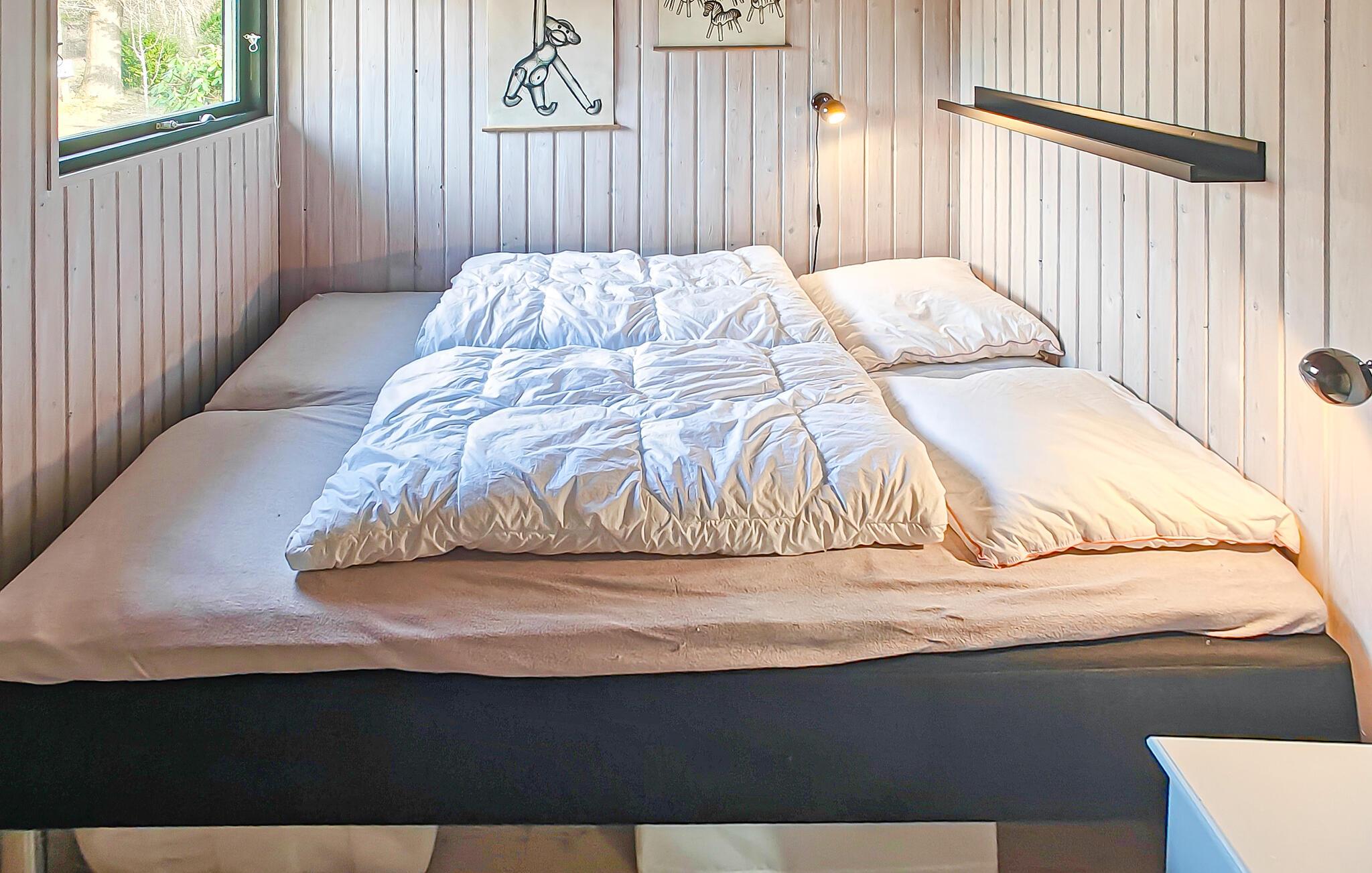 Dette hyggelige hus er perfekt til en afslappende pause fra hverdagen. En åben stue med smukke træpaneler lægger op til afslappende timer med at snakke, lytte til musik eller nyde en sjov eftermiddag med spil. I køkkenet kan I lave mad sammen og nyde jeres måltider med udsigt til husets grønne rammer.