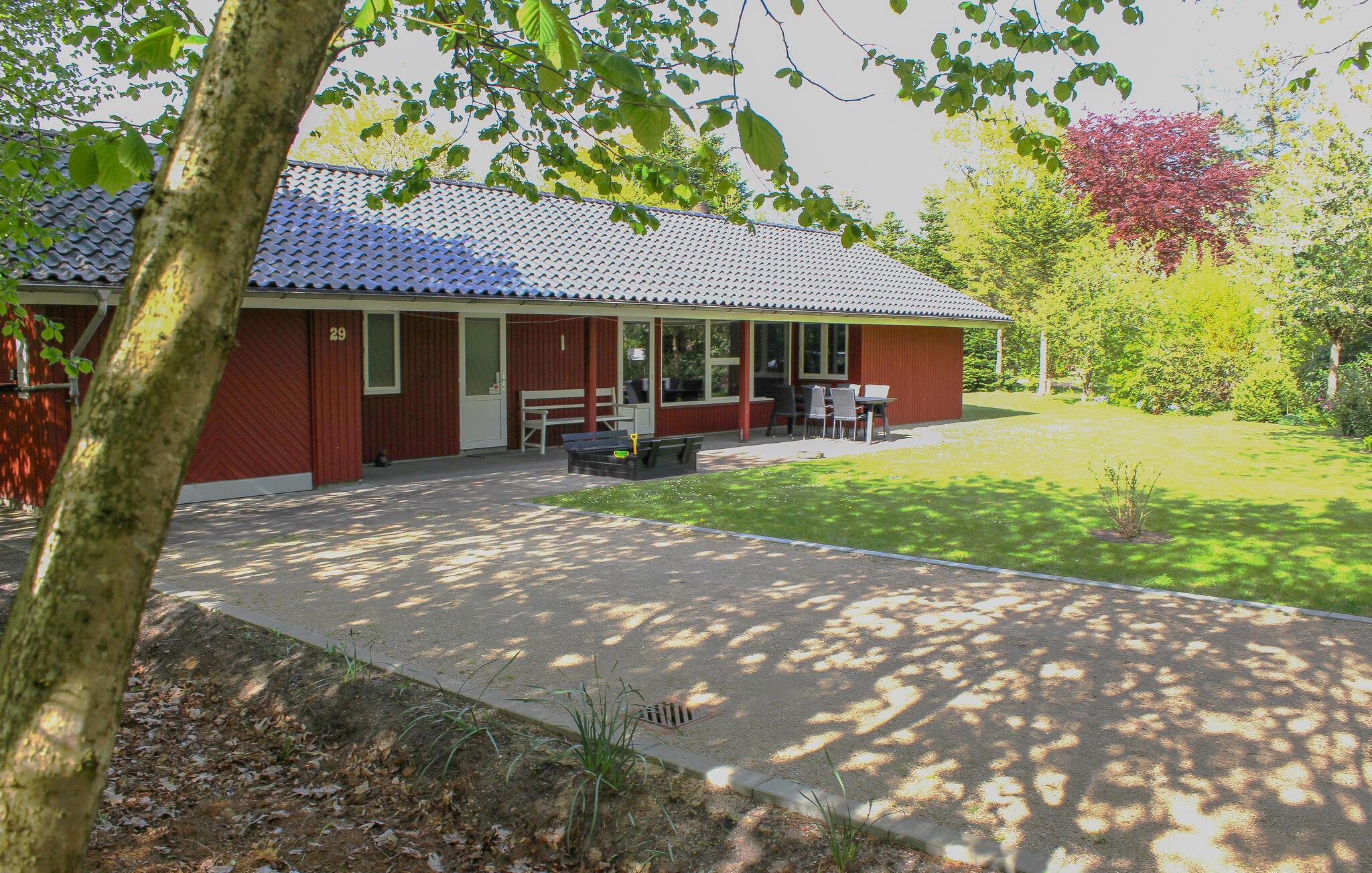 Hyggeligt moderne feriehus ved Kvie Sø med stor terrasse og naturskøn beliggenhed, perfekt til familieferie.