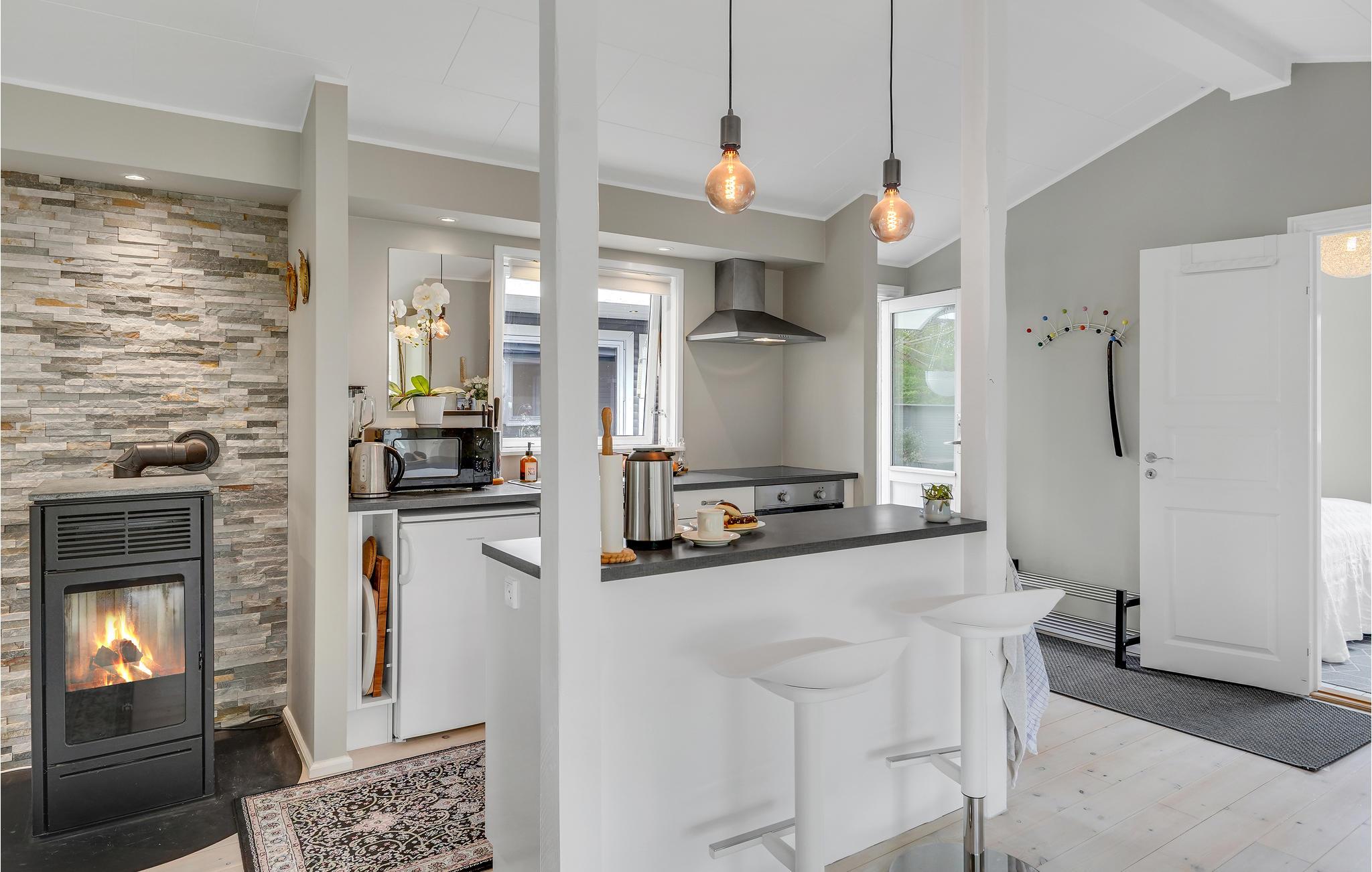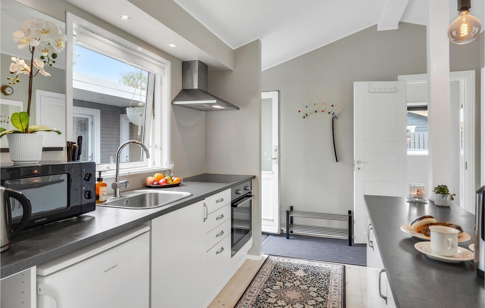 Moderne sommerhus med pilleovn og have, 600 m fra fjorden i roligt kvarter.