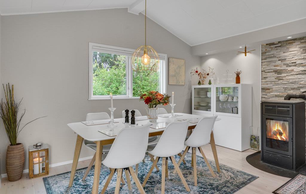 Lyst, moderne sommerhus med pilleovn og egen have, kun 600 meter fra fjorden.