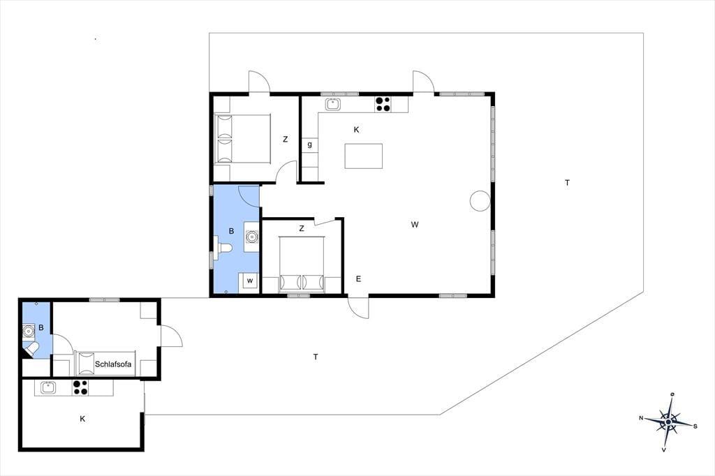 Huset fire soverum har alle gode kvalitetssenge og skabe til opbevaring af bagage. To af disse soverum er i hvert sit anneks, hvor det ene soverum har eget badeværelse med toilet og bruser.