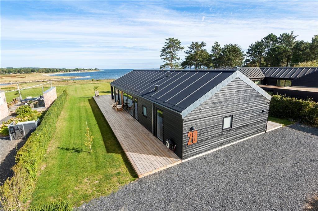 De omhyggeligt udvalgte kvalitetsmaterialer, der udgør dette sommerhus, fortæller historien om håndværk og elegance. Fra de flotte linjer i trægulvet til de subtile detaljer i indretningen er hvert element nøje udvalgt for at skabe en atmosfære af luksus og komfort.