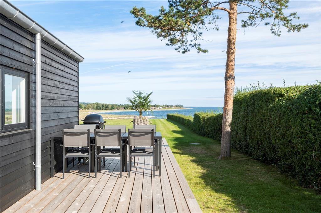 Træterrassen, der omgiver dette smukke sommerhus, udvider dit opholdsområde ud i det fri og giver dig mulighed for at fordybe dig i naturens skønhed. Med panoramaudsigt over fjorden og Aarhus Bugten kan du lade dig fortrylle af den betagende udsigt, mens du nyder en stille stund eller deler uforglemmelige øjeblikke med venner og familie.