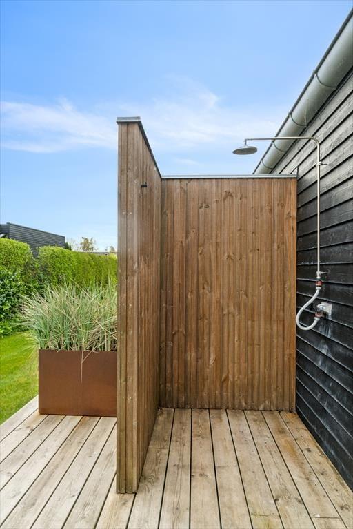 Udendørs bruserSkøn udendørs bruser, hvor man har den skønneste udsigt mod vandet.